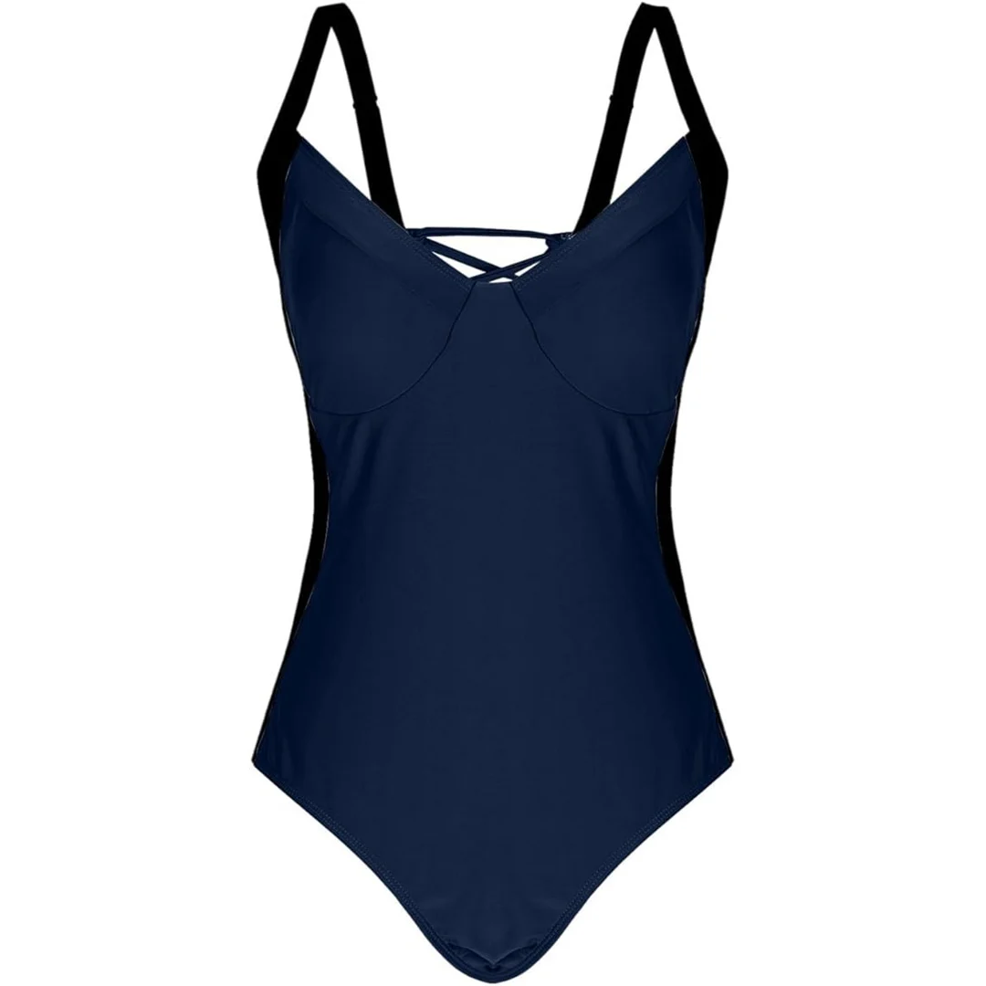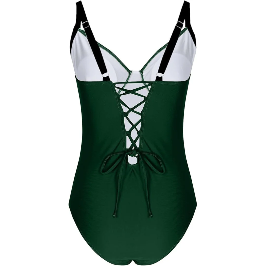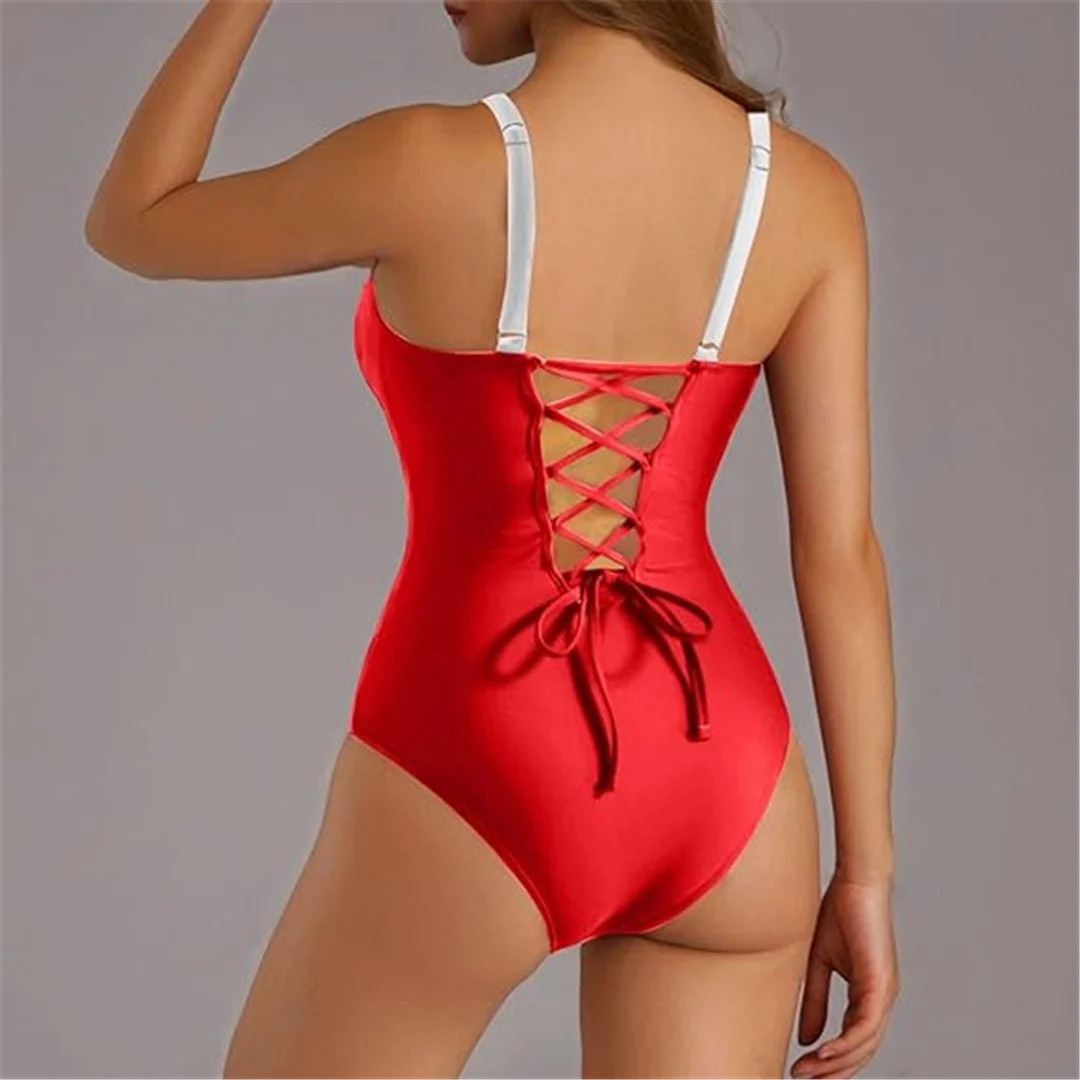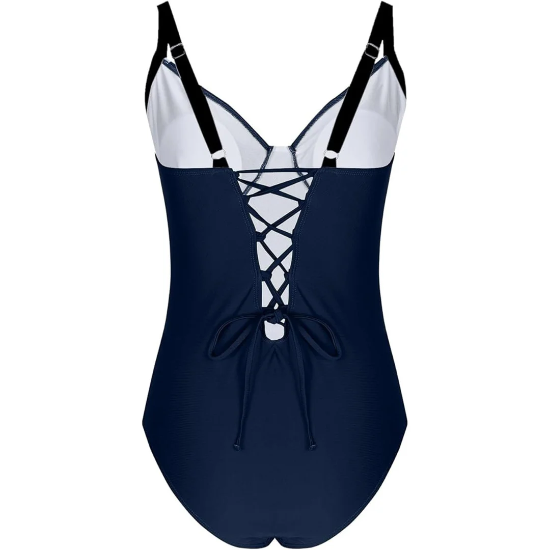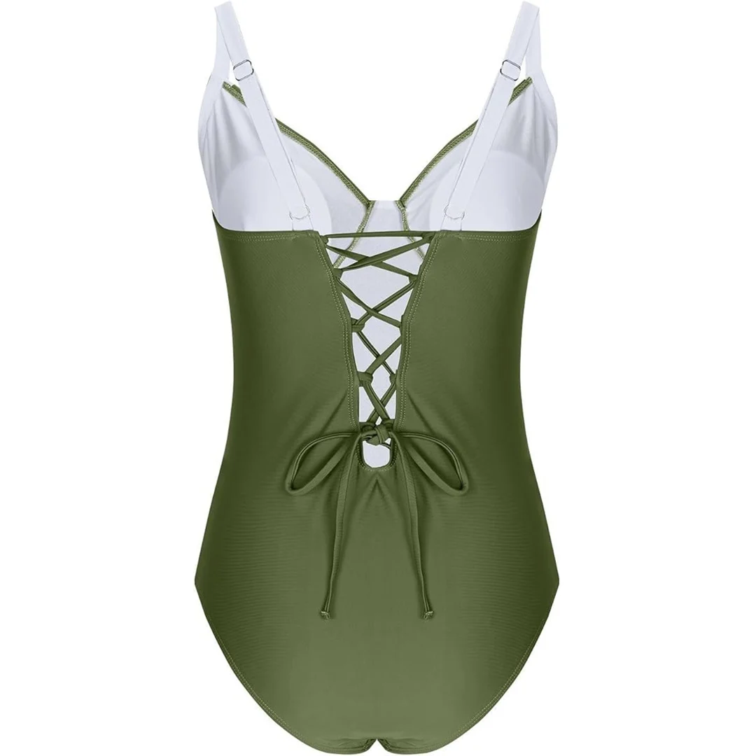 S – XL Splicing Lace Up High Cut Leg Women Swimwear One Piece Swimsuit Female Padded Monokini Bather Bathing Suit Swim V6952B