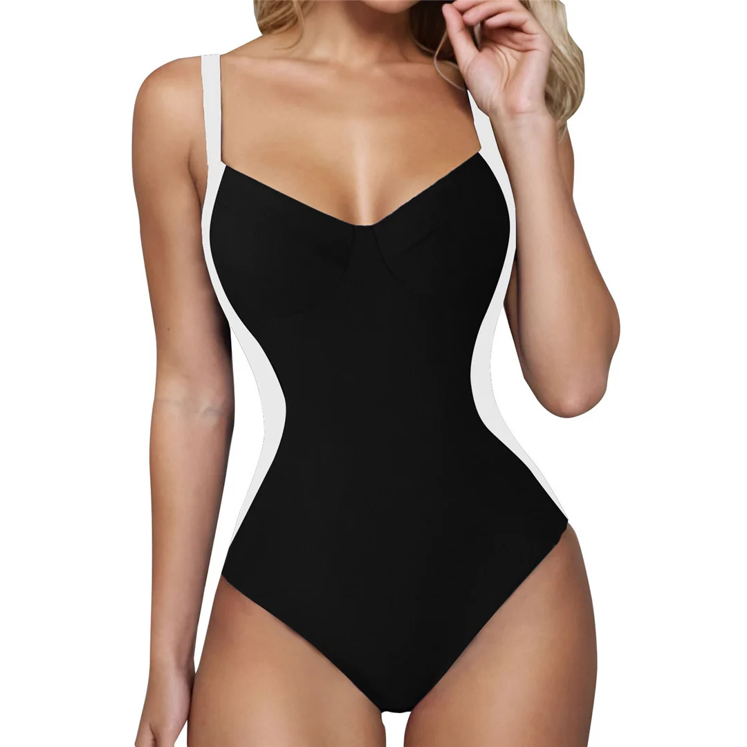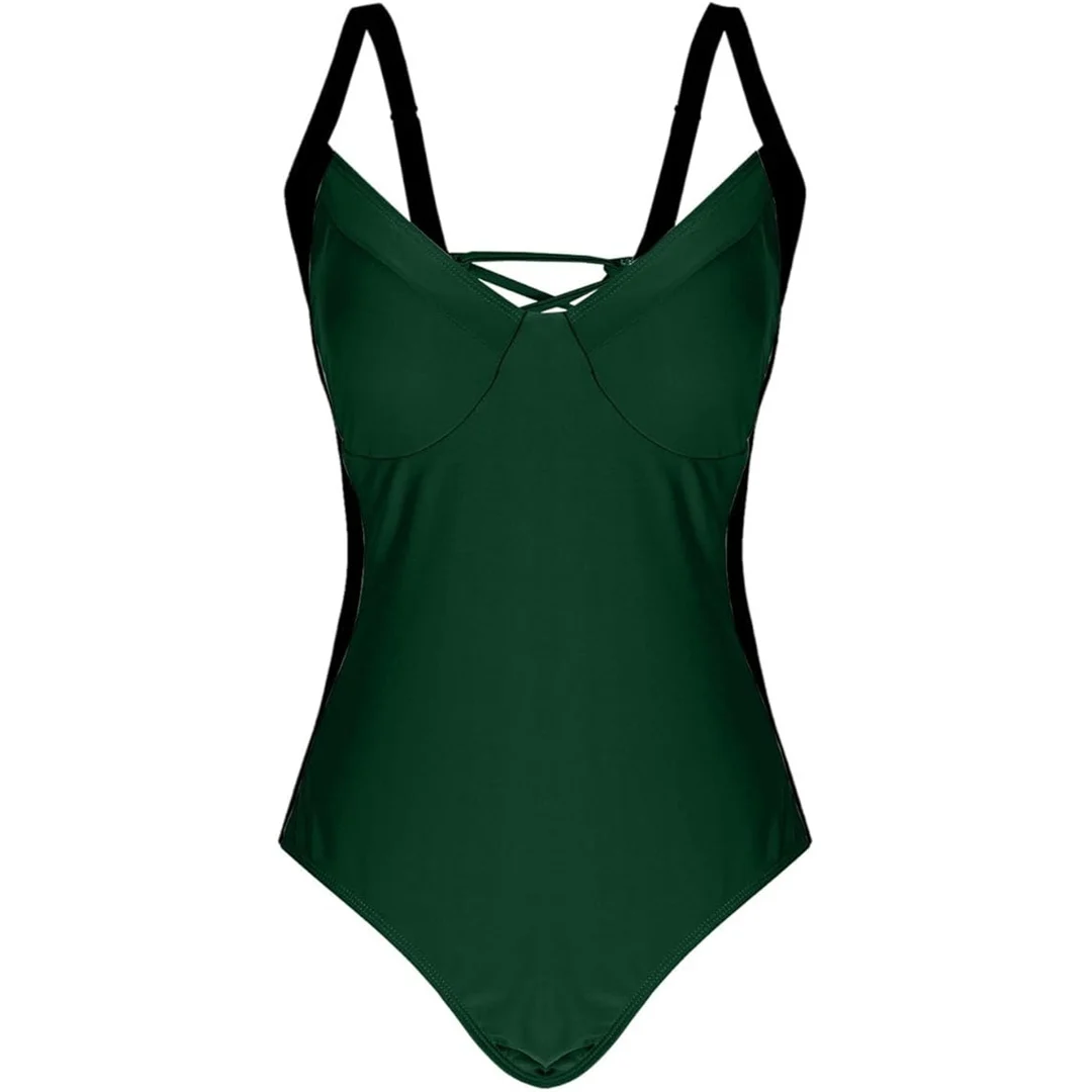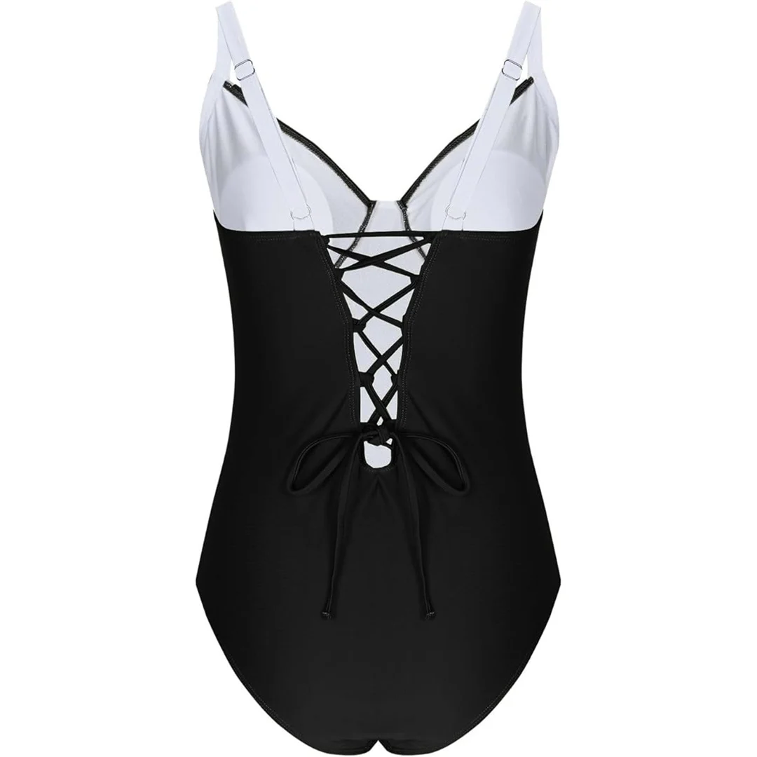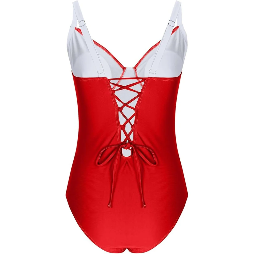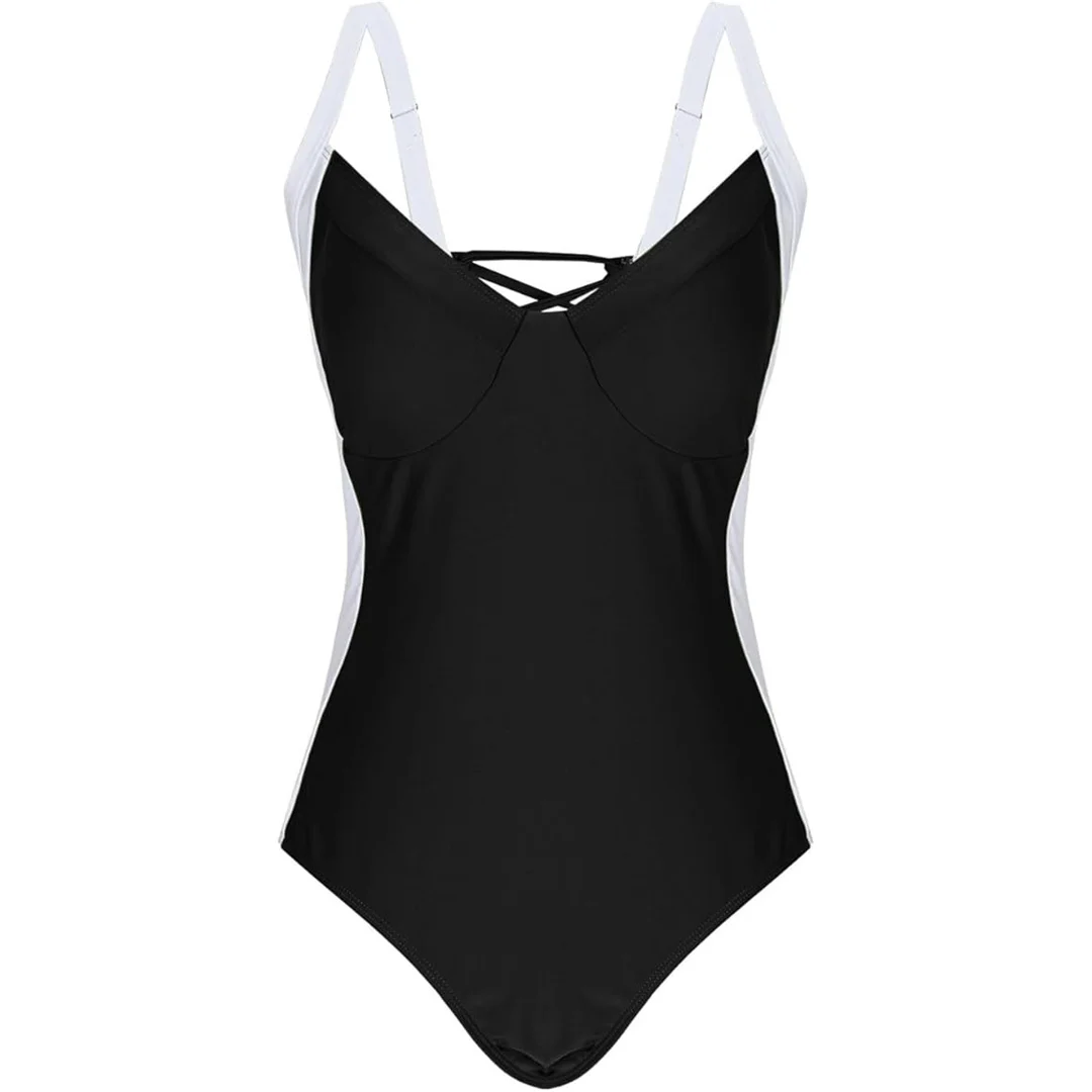 S – XL Splicing Lace Up High Cut Leg Women Swimwear One Piece Swimsuit Female Padded Monokini Bather Bathing Suit Swim V6952B