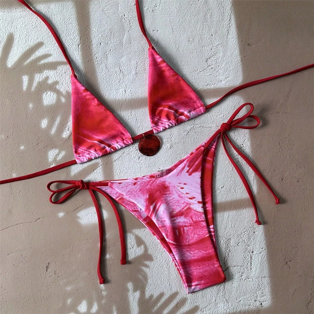 S – XL Tie Dye Halter High Leg Cut Bikini Women Swimwear Female Swimsuit Two-pieces Bikini set Bather Bathing Suit Swim V7054