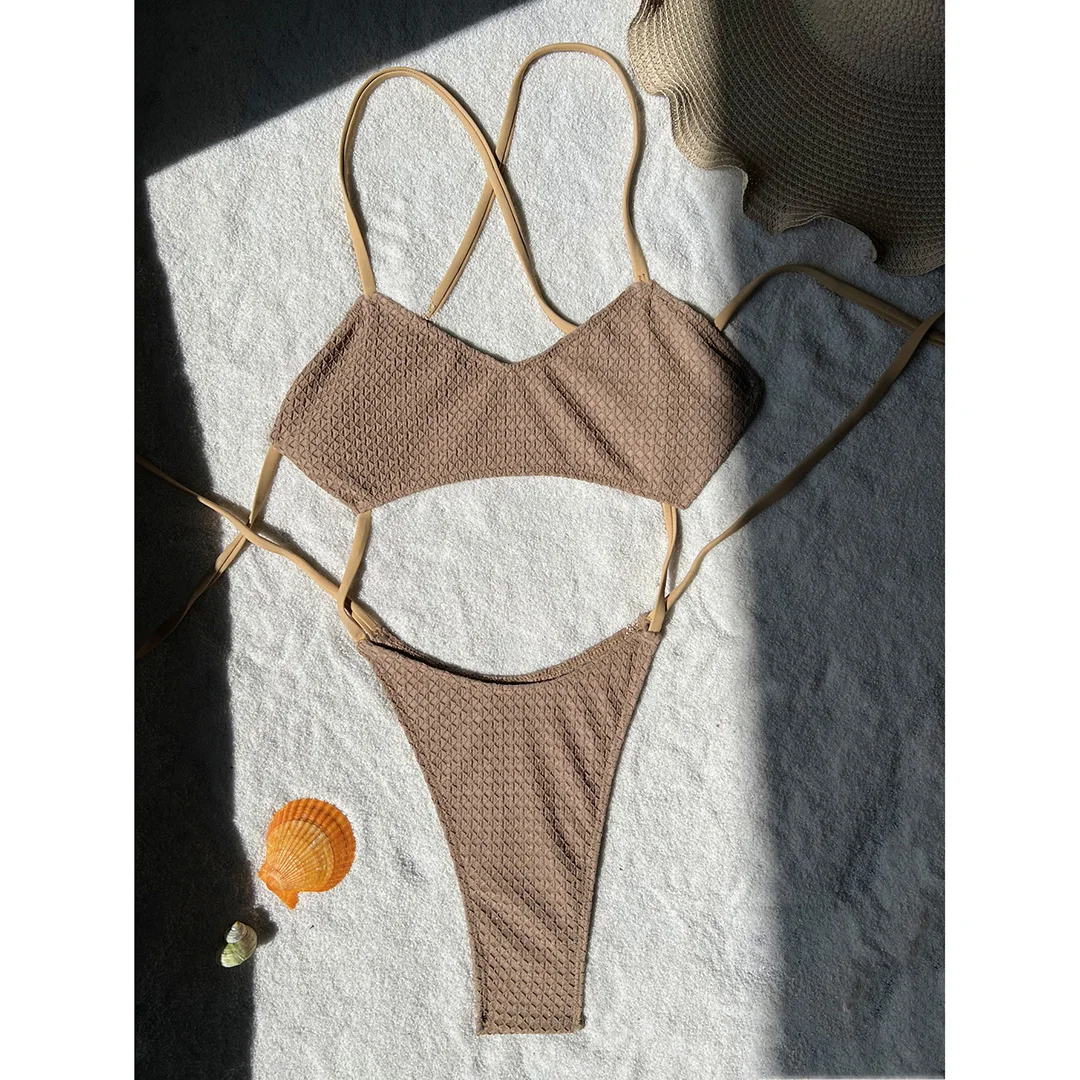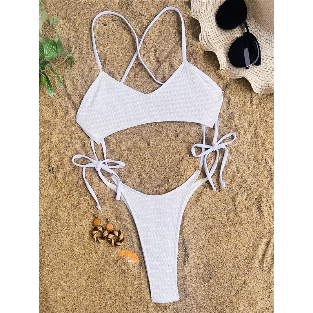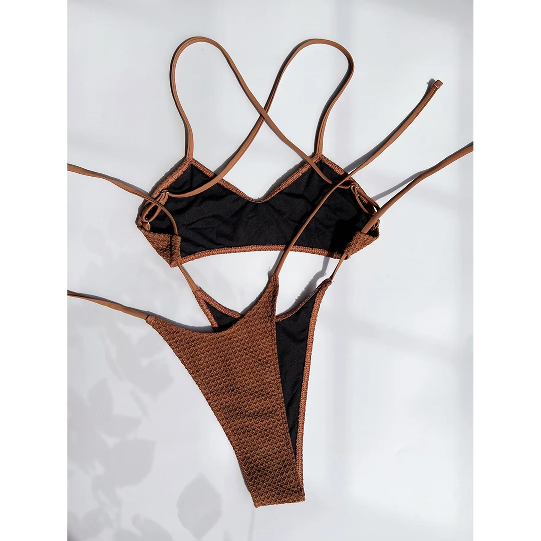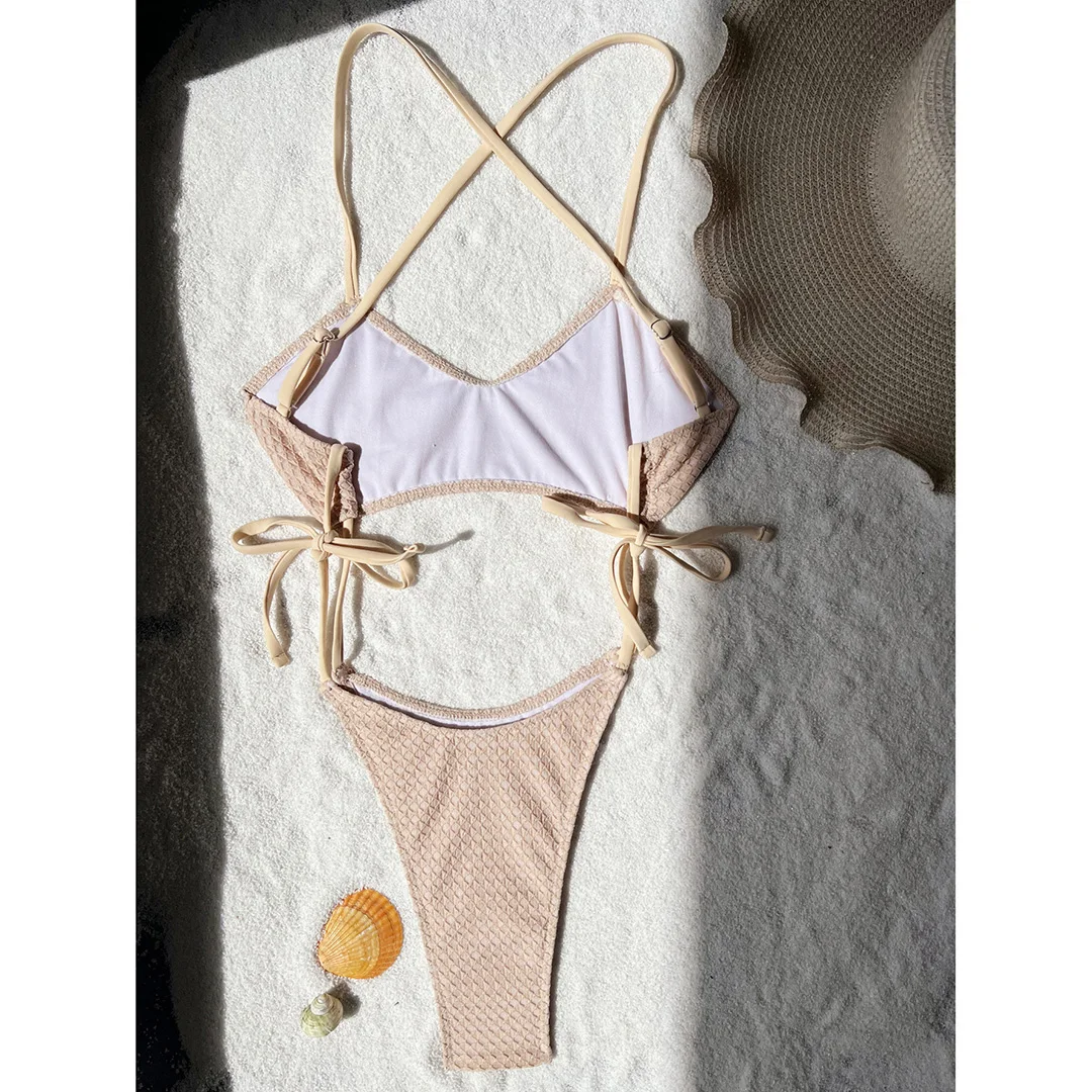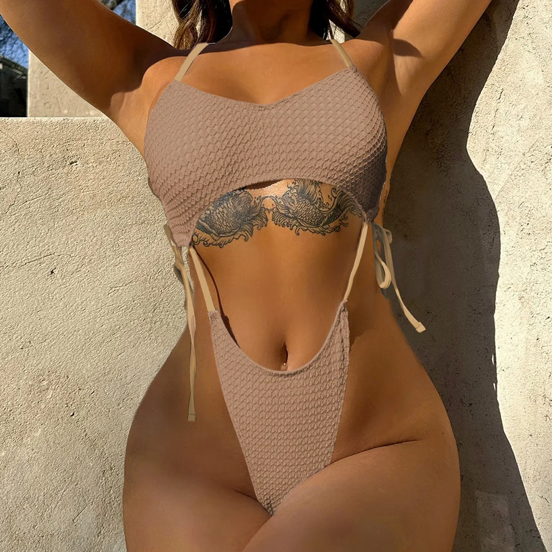 S – XL Tummy Cut Out Wrinkled One Piece Swimsuit Women Swimwear Female Cross Back High Leg Cut Bather Bathing Suit Swim V4912