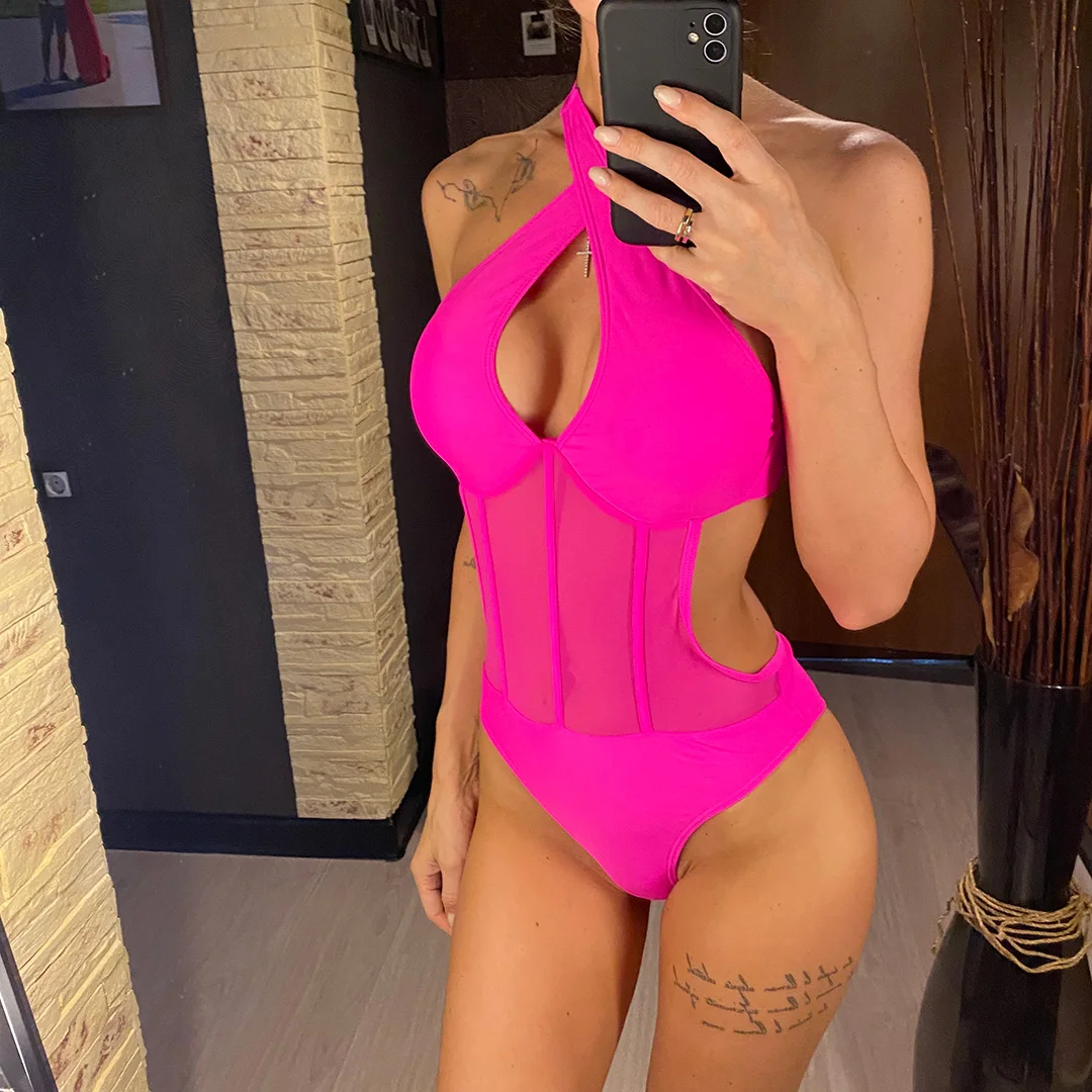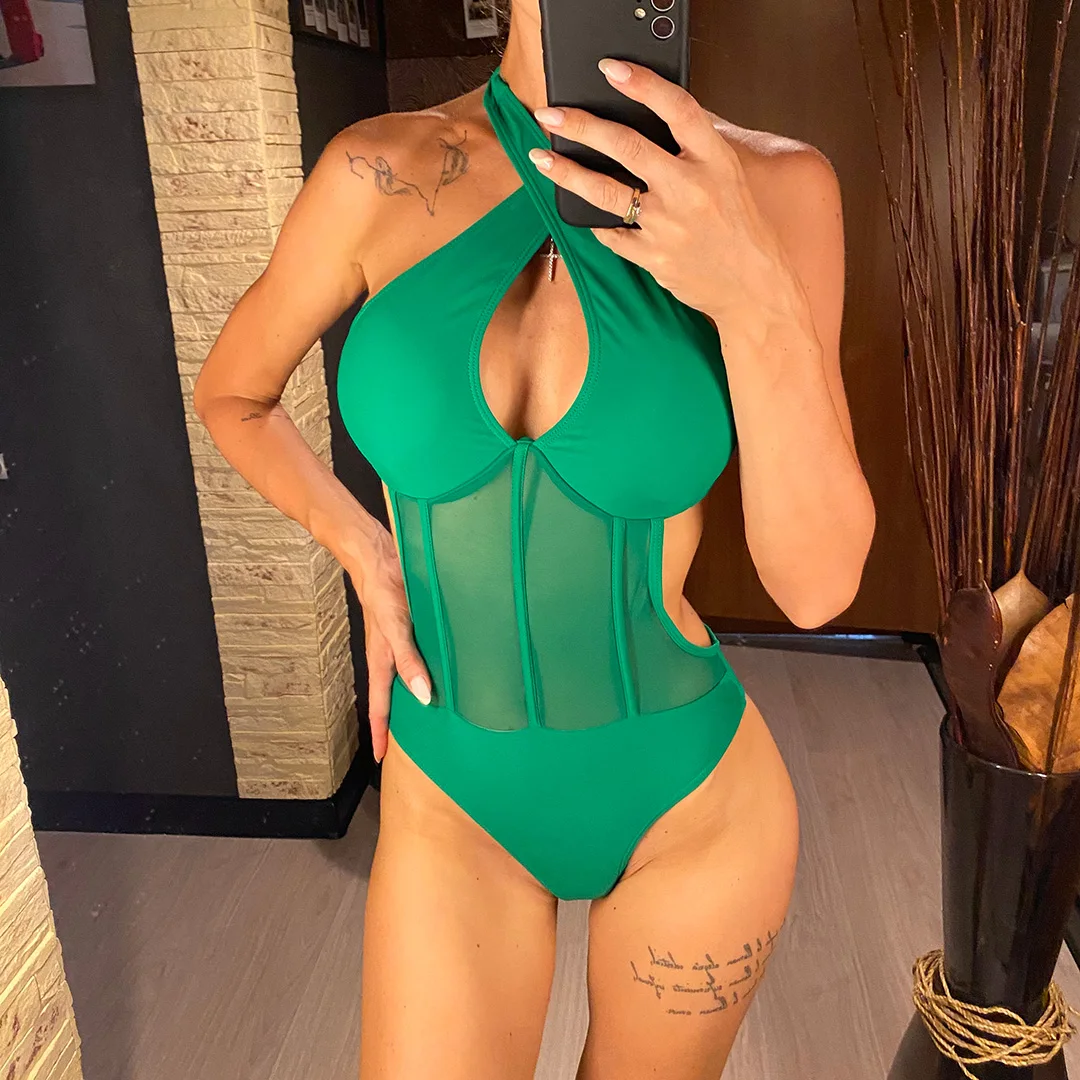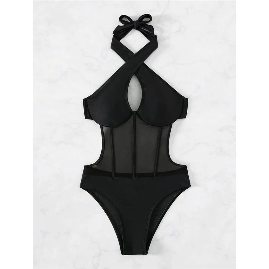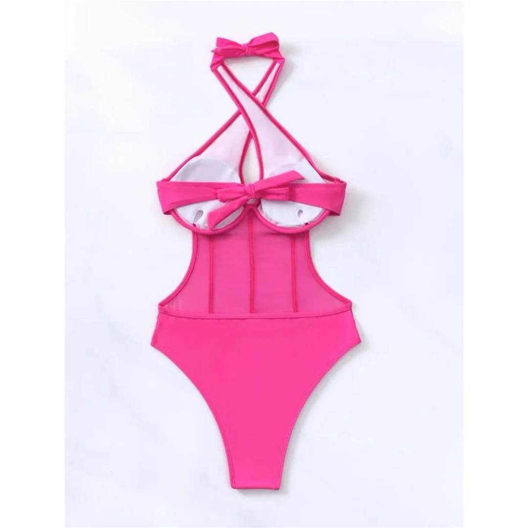 S – XL Underwired Cut Out Halter Women Swimwear One Piece Swimsuit Female Monokini High Cut Bather Bathing Suit Swim Lady V4418
