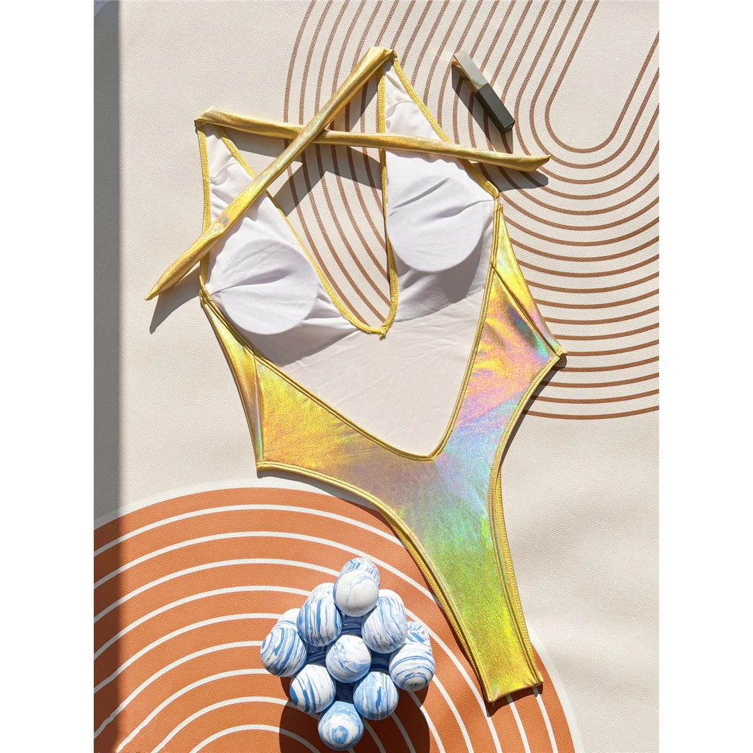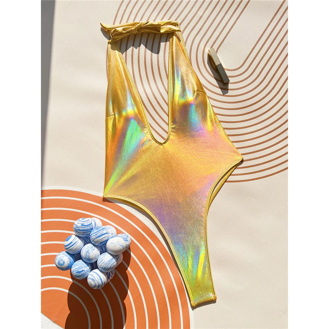 S – XL V Neck Halter High Leg Cut Women Swimwear One Piece Swimsuit Female Backless Mini Thong Bather Bathing Suit Swim V6062