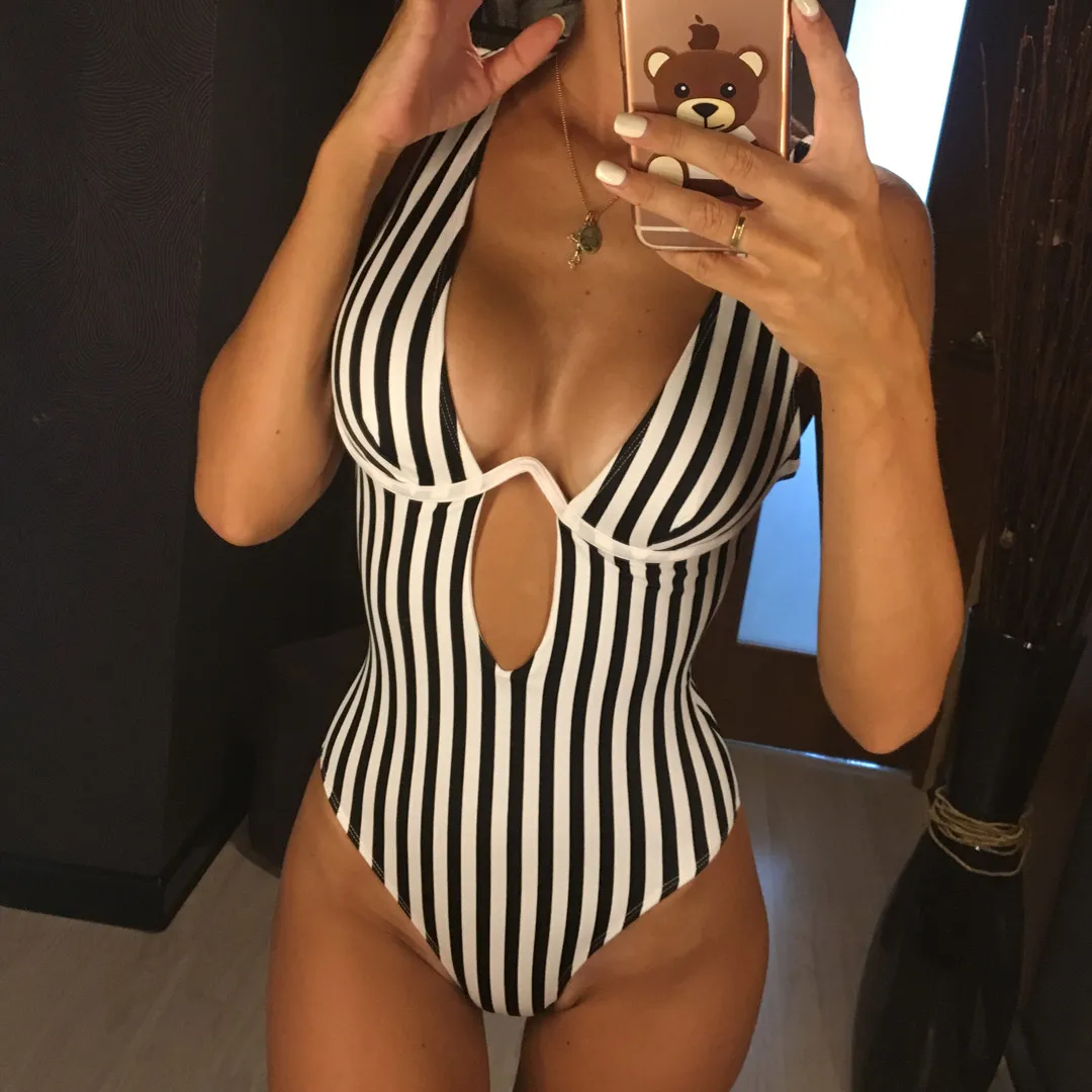 S – XL V shape Wire Striped Women Swimwear One Piece Swimsuit Female V-bar Underwired Bather Bathing Suit Swim Monokini V472