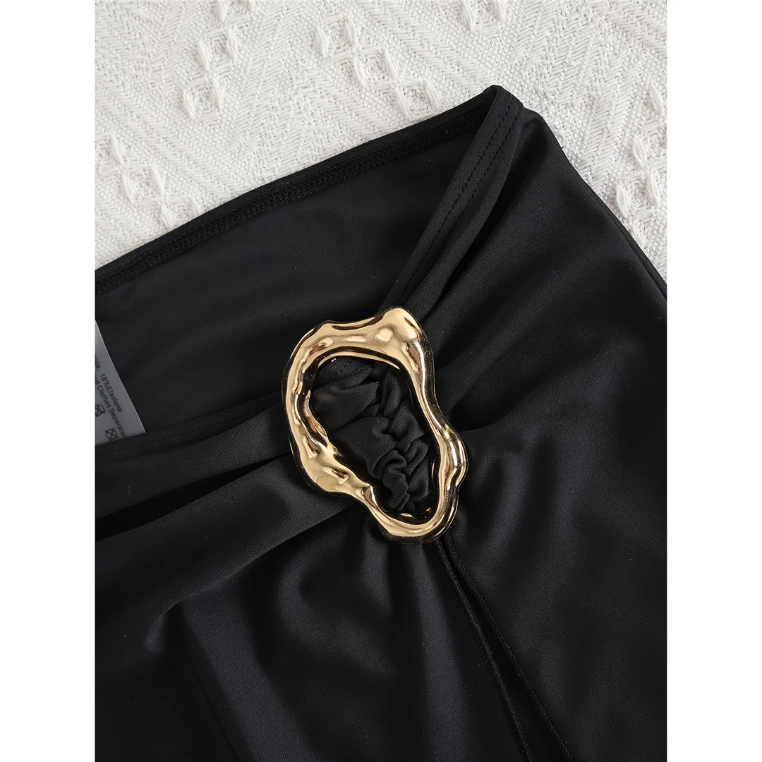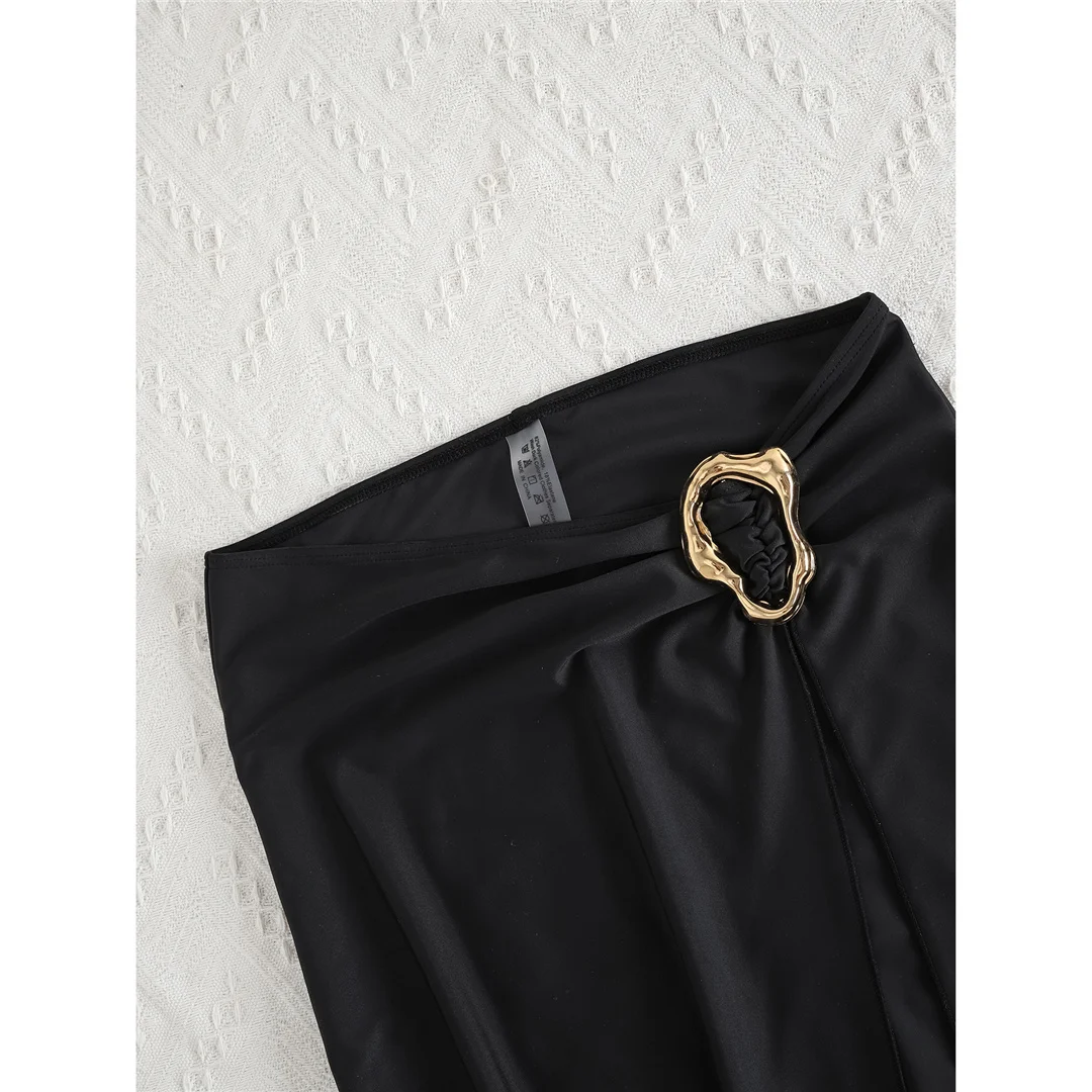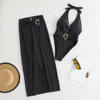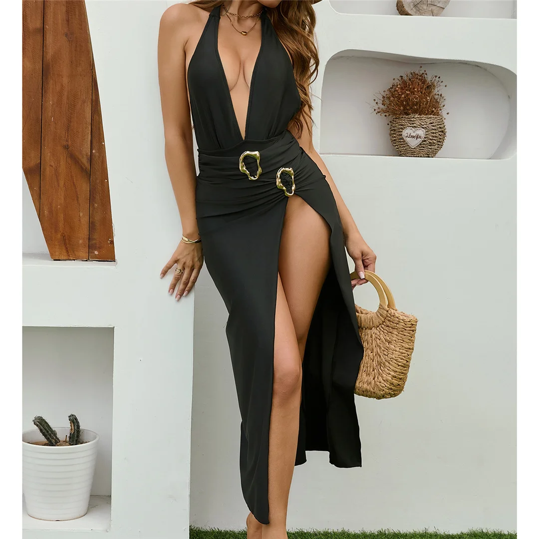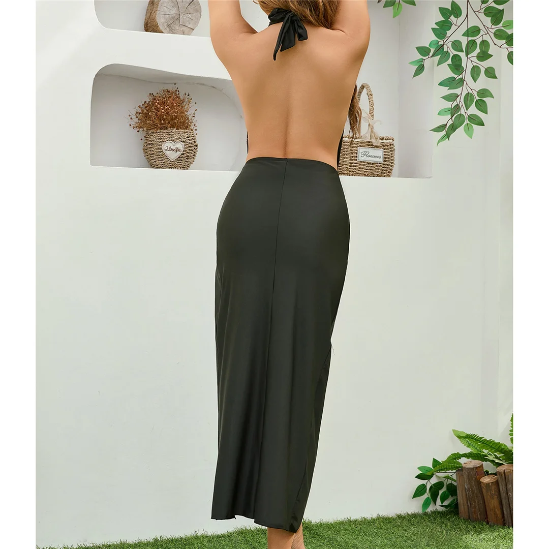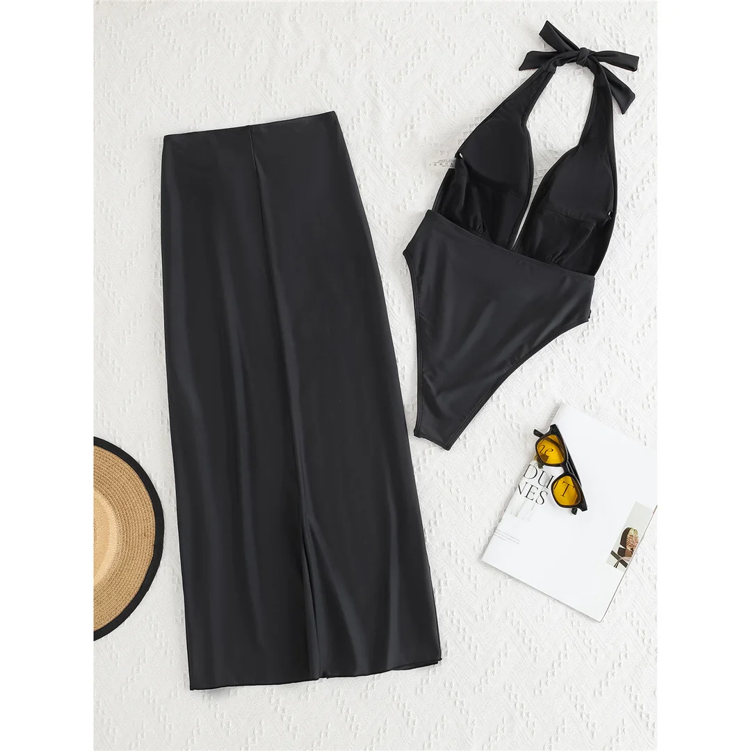 S – XL With Skirt Deep V Neck Halter One Piece Swimsuit Women Swimwear Female Monokini Backless Bather Bathing Suit Swim V6556
