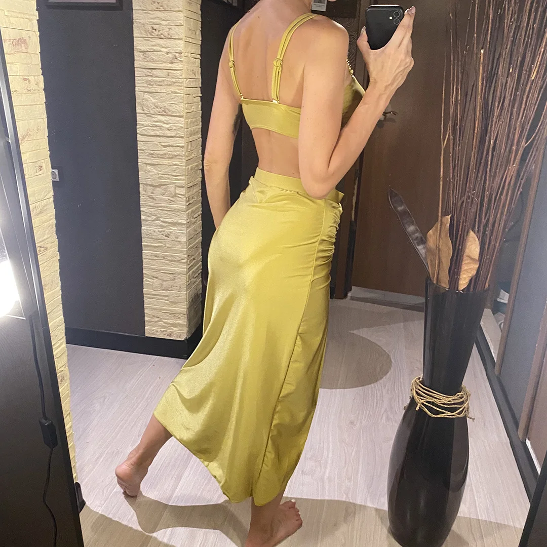 S – XL With Skirt Female Swimsuit High Waist Bikini Women Swimwear Three-pieces Bikini set Padded Bather Bathing Suit Swim V6355