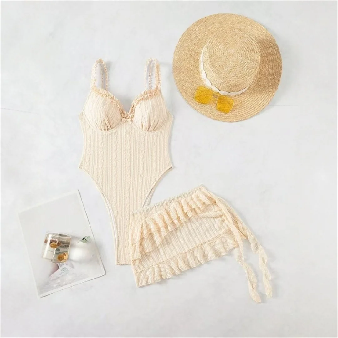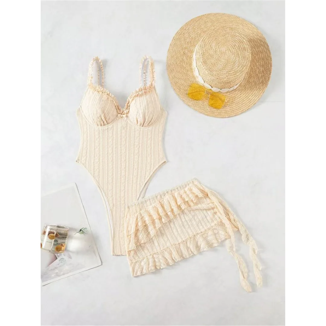 S – XL With Skirt Frilled Underwired One Piece Swimsuit Women Swimwear Female Mini Micro Thong Bather Bathing Suit Swim V7326