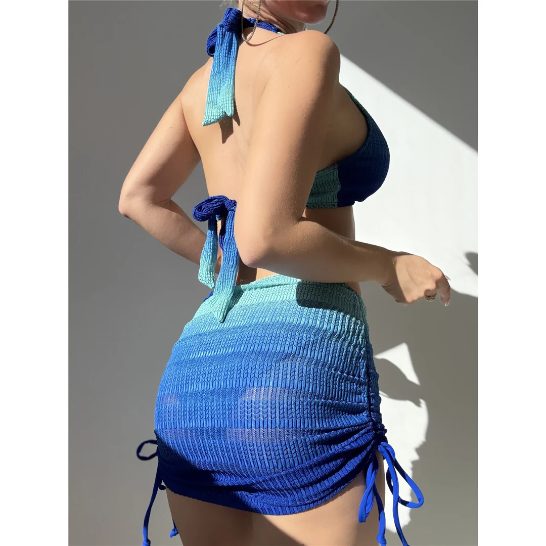 S – XL With Skirt Gradient Halter Bikini Women Swimwear Female Swimsuit Three-pieces Bikini set Bather Bathing Suit Swim V7445