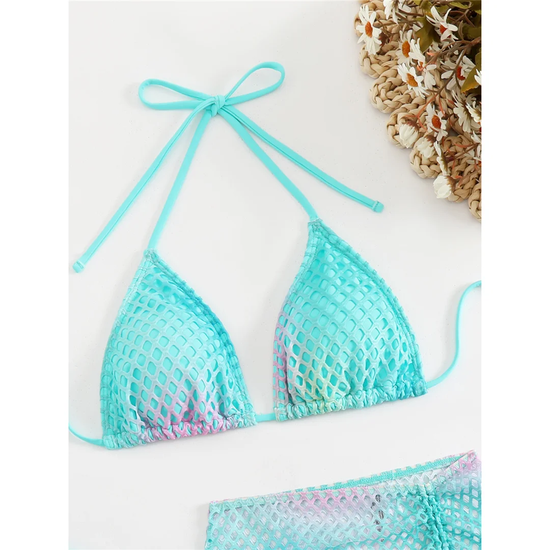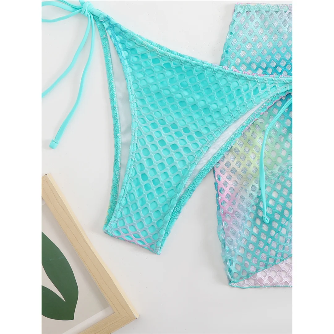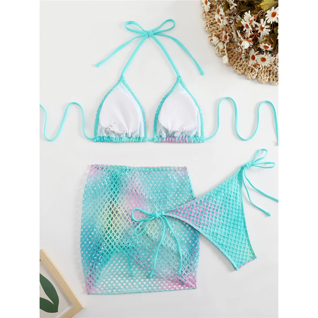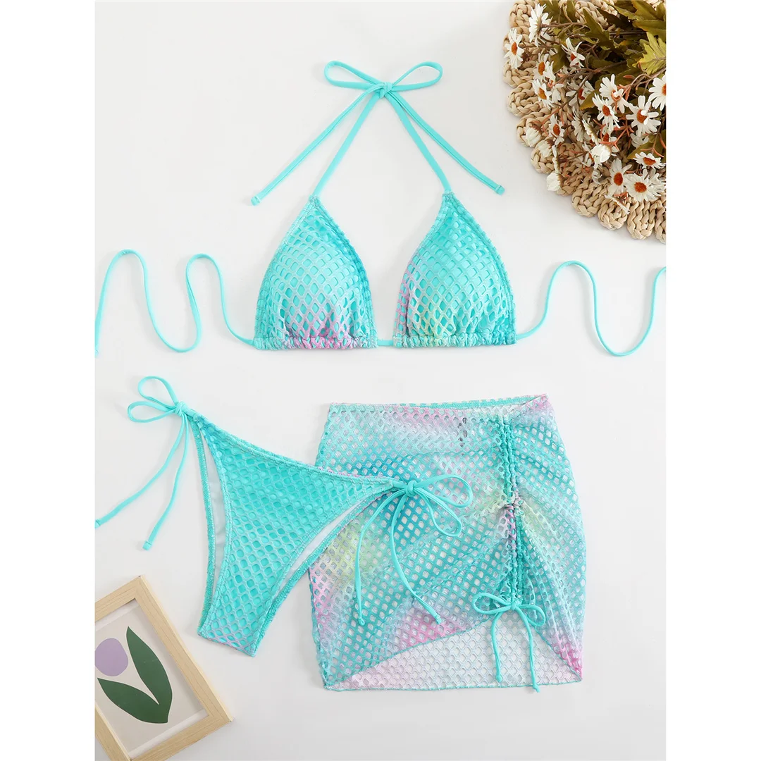 S – XL With Skirt Halter Bikini Female Swimsuit Women Swimwear Three-pieces Bikini set Hollow Out Bather Bathing Suit Swim V7388