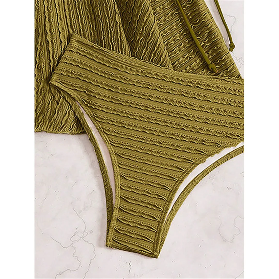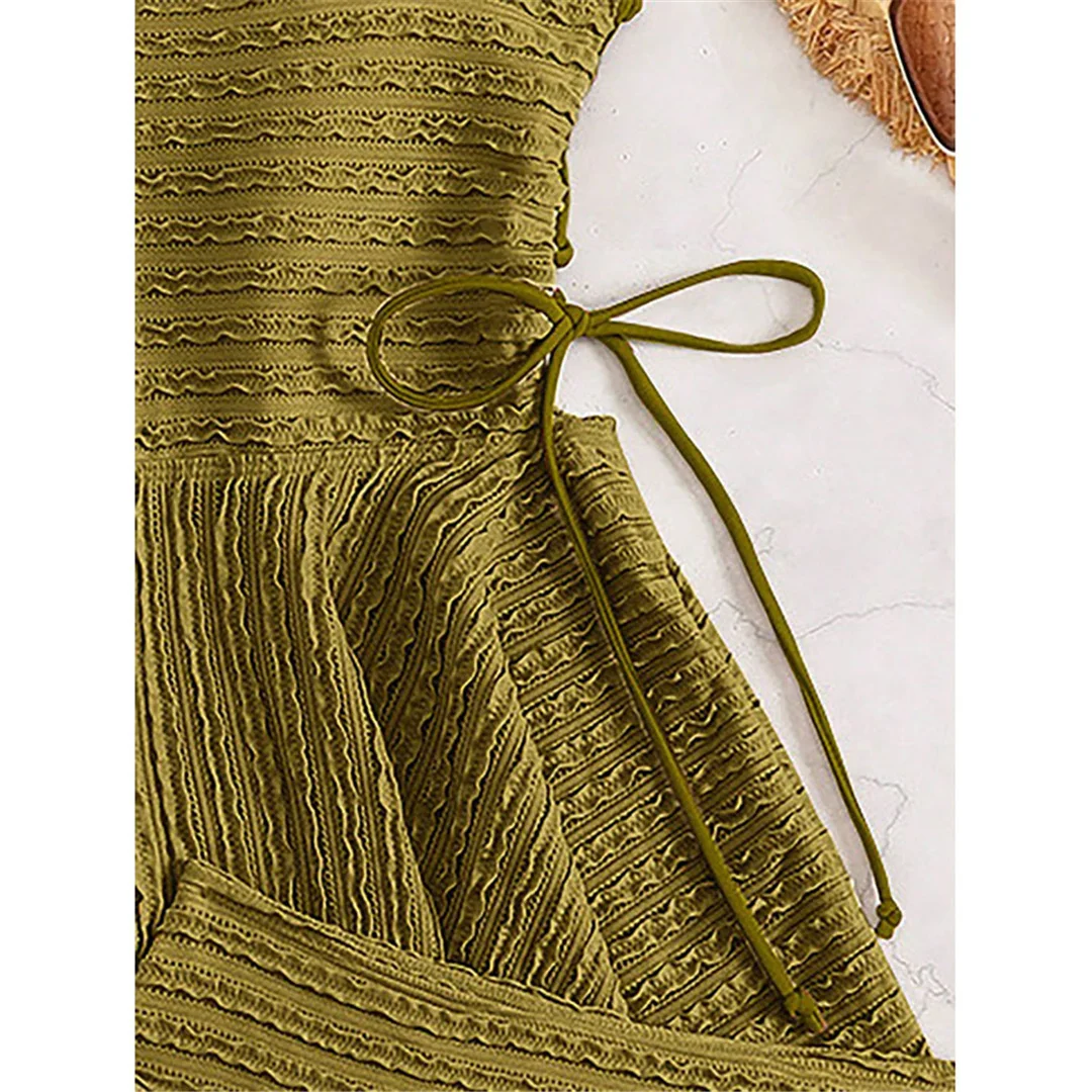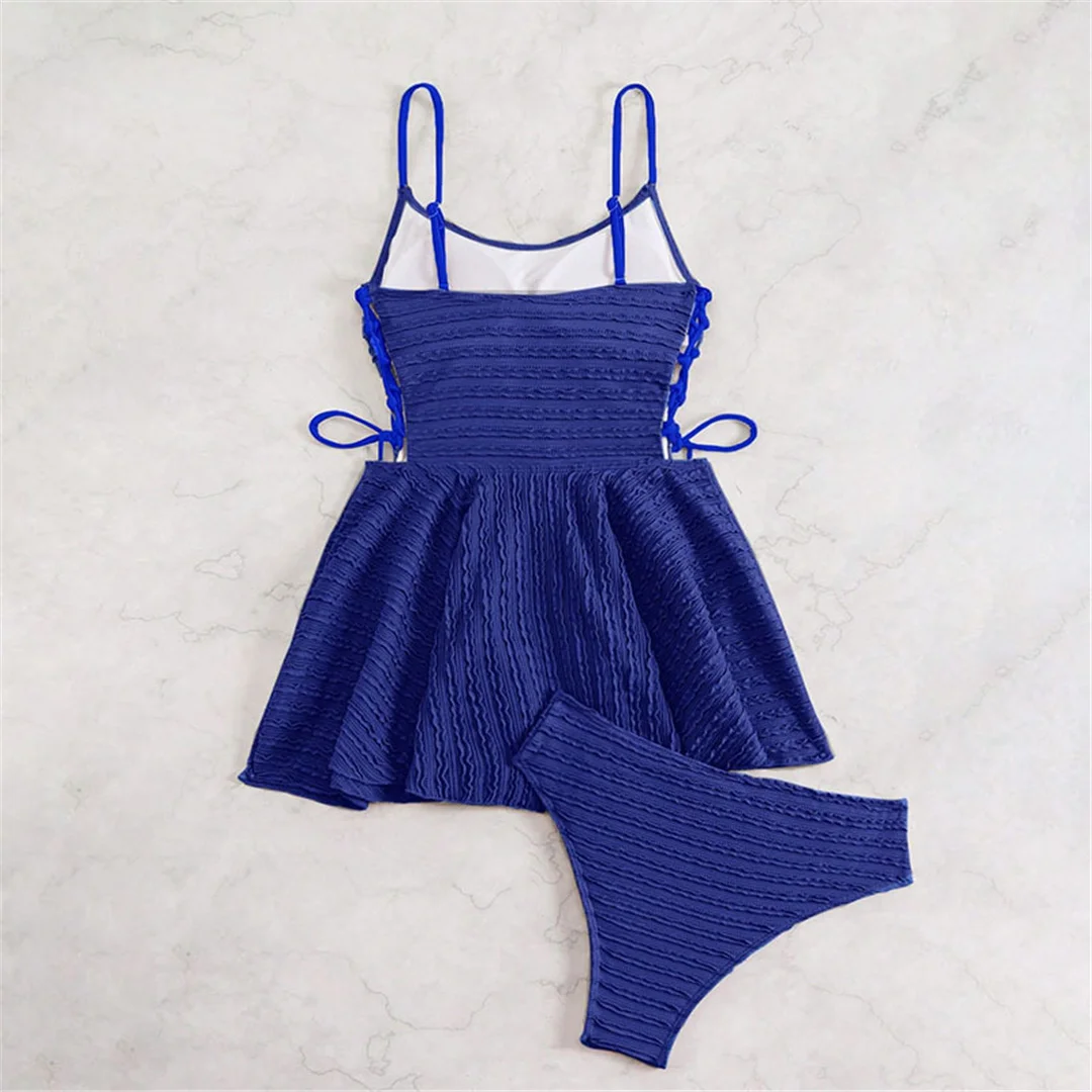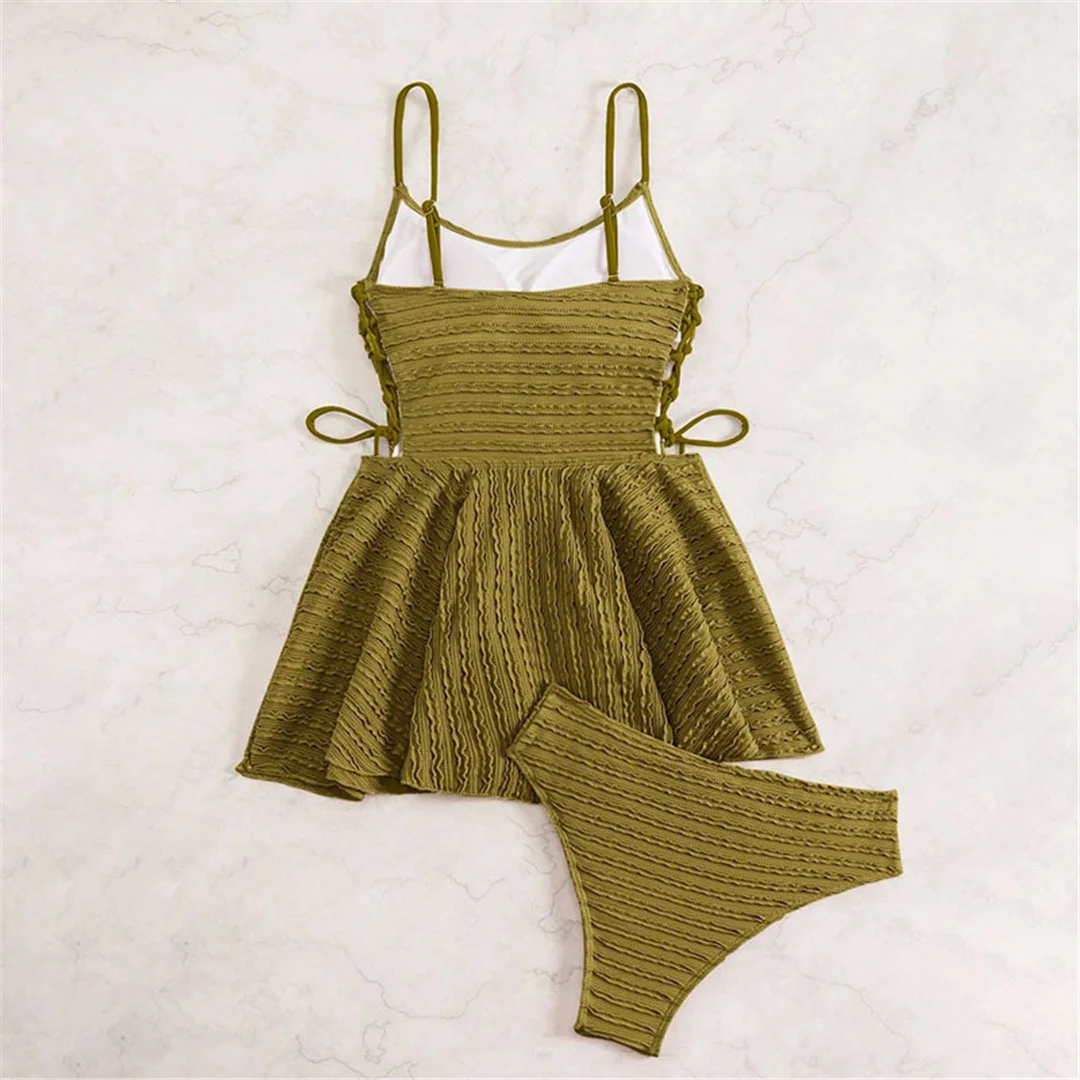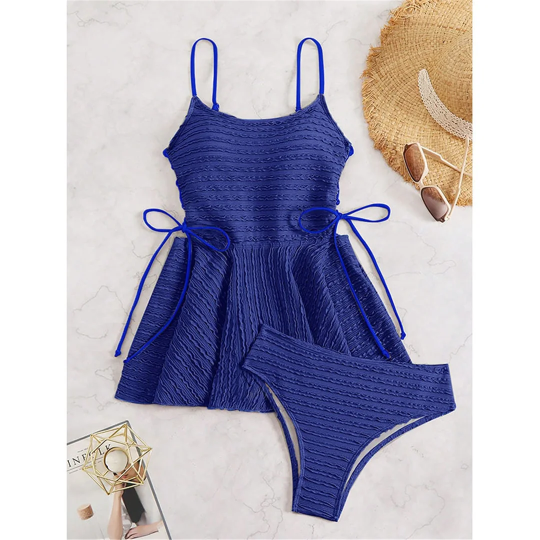 S – XL Wrinkled Tankini Beach Dress Bikini Women Swimwear Female Swimsuit Two-pieces Bikini set Bather Bathing Suit Swim V7288