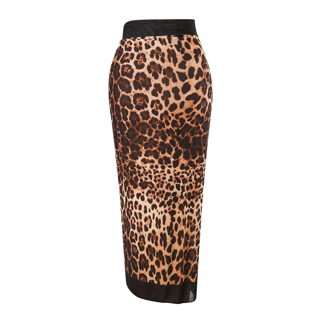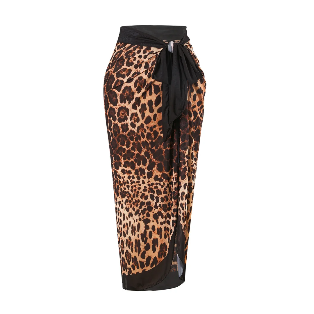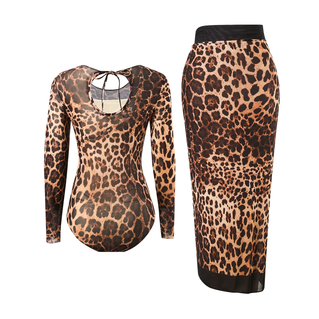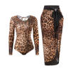 S – XXL 2025 Leopard With Skirt Long Sleeve One Piece Swimsuit Women Swimwear Female High Cut Leg Bather Bathing Suit Swim V7352