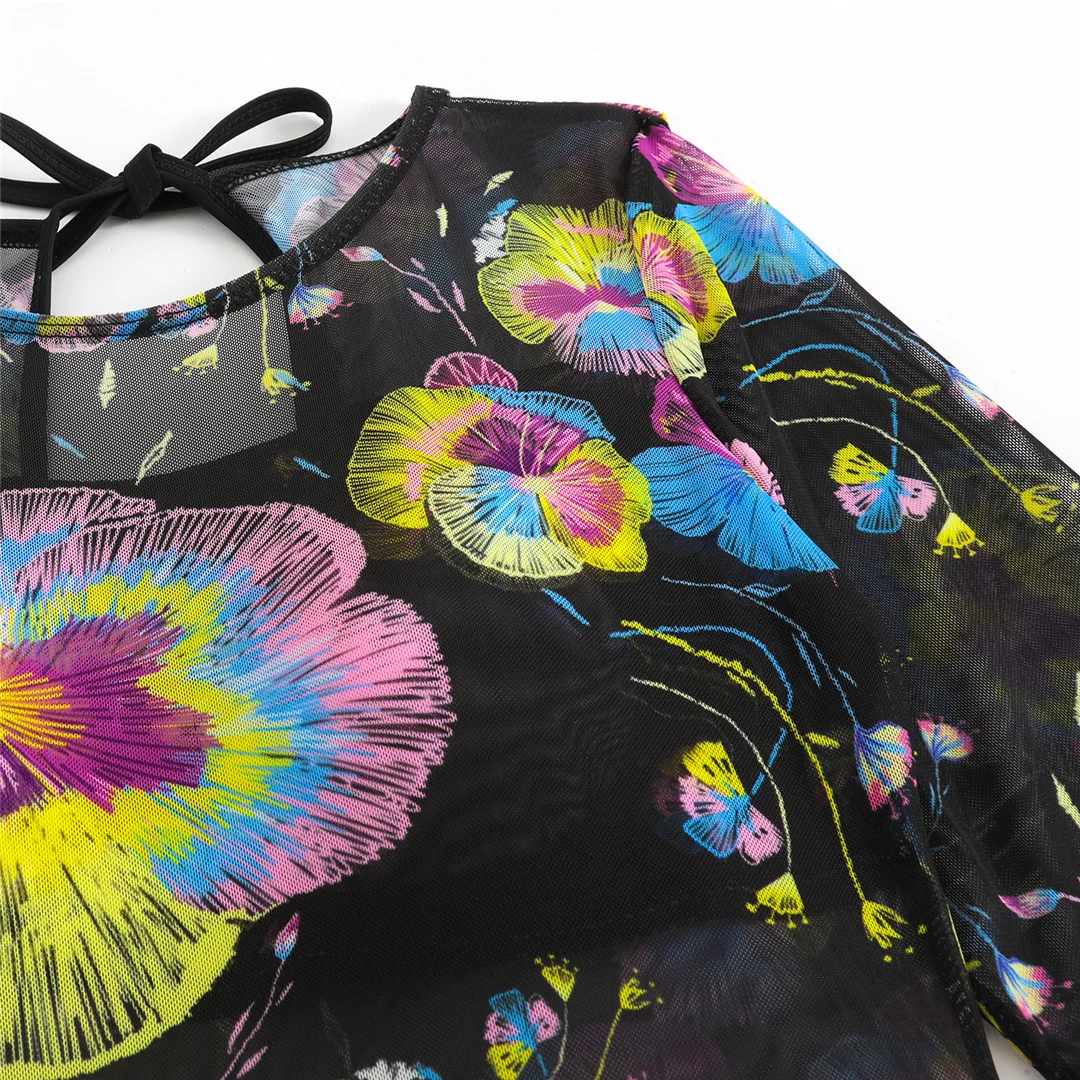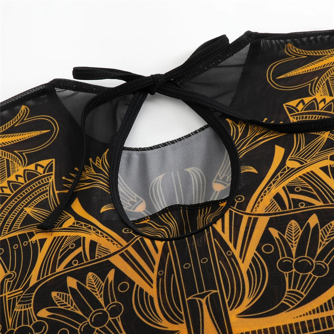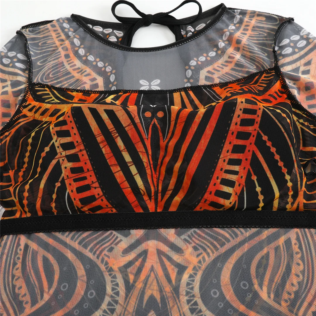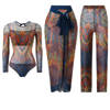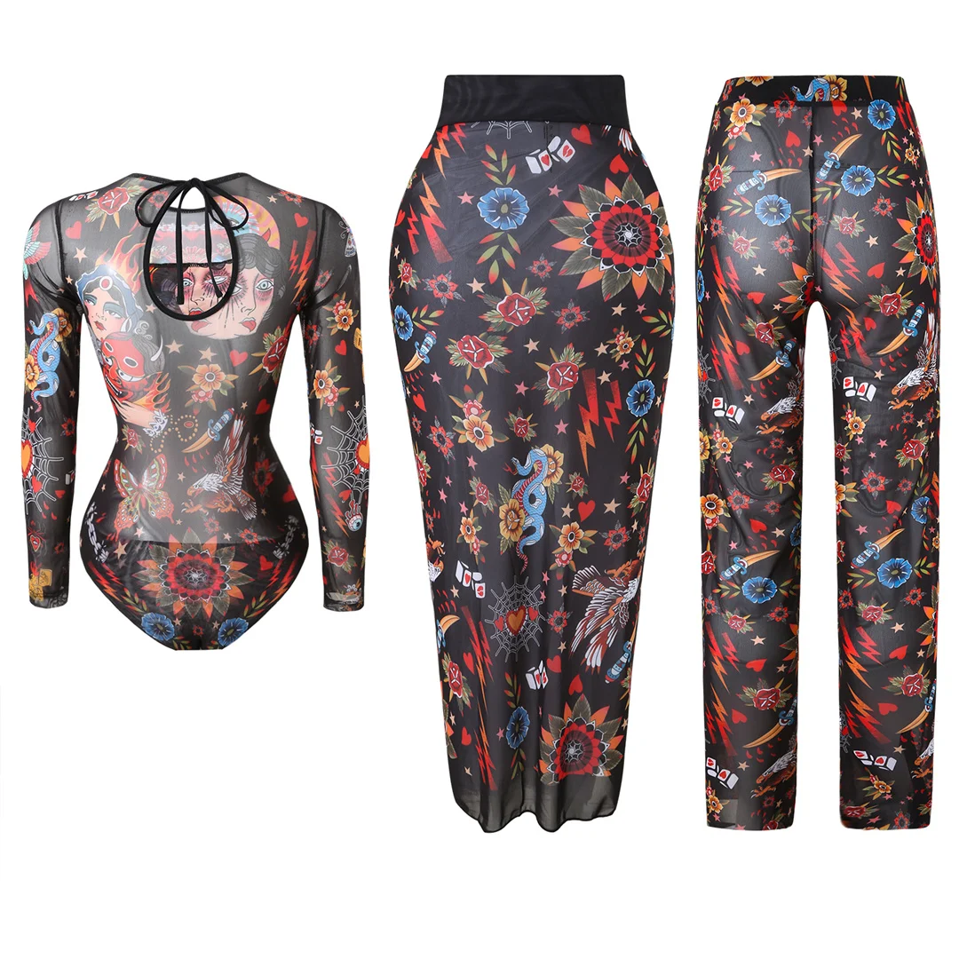 S – XXL 3PCS New Printed Long Sleeve With Pants Sarong Women Swimwear One Piece Swimsuit Female Bather Bathing Suit Swim V7180