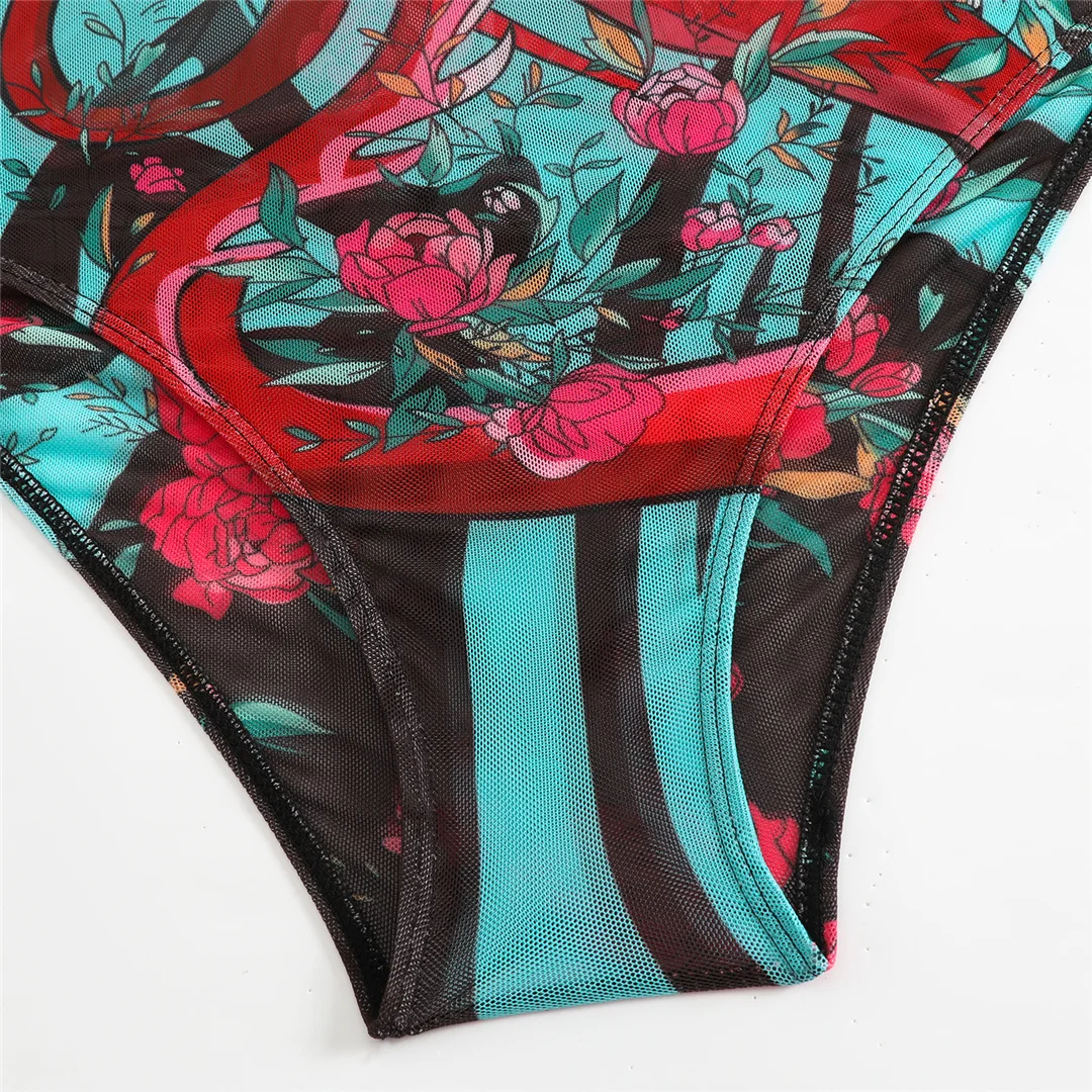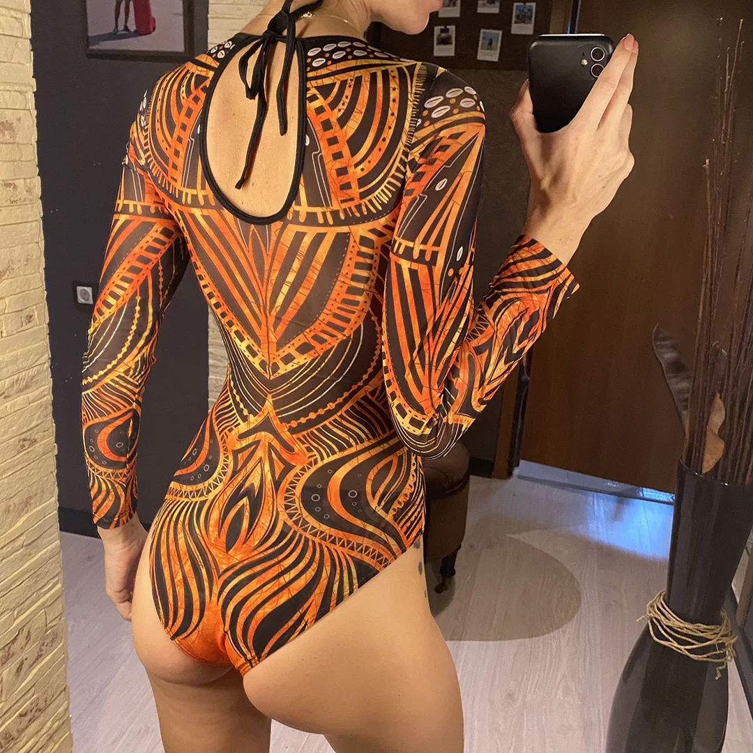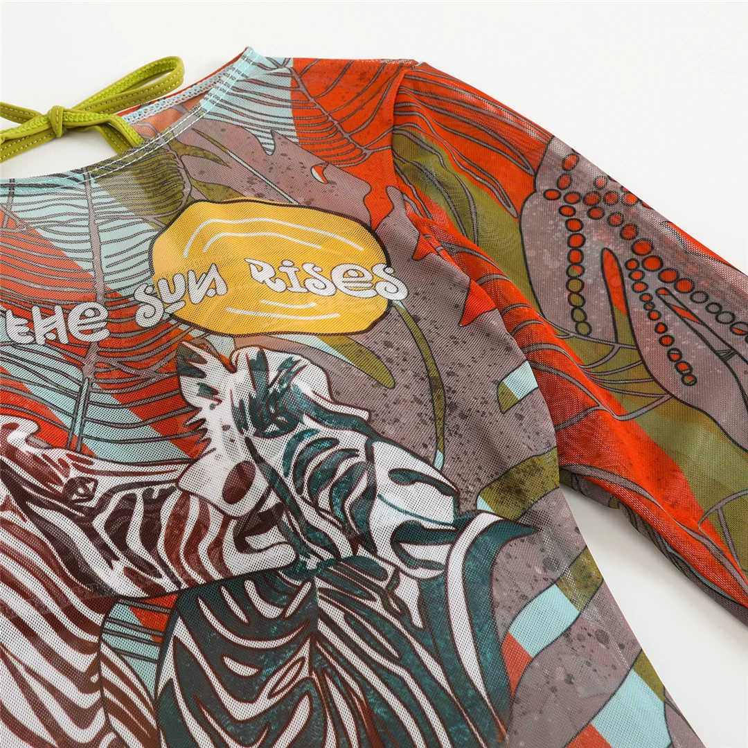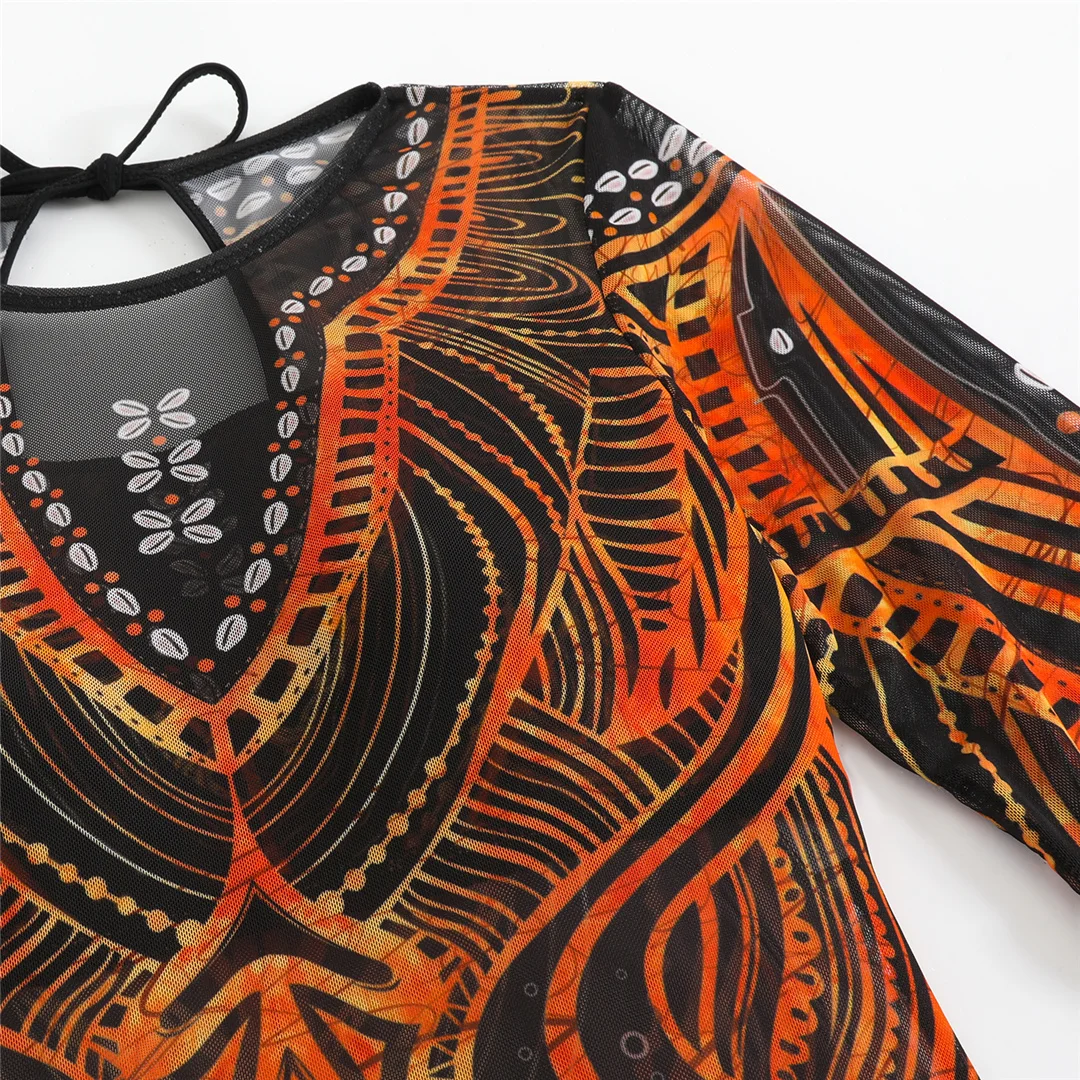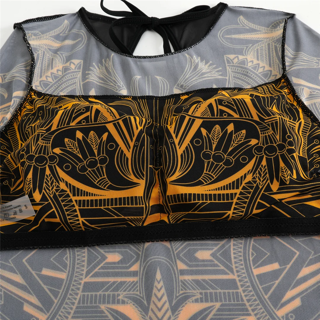 S – XXL 3PCS New Printed Long Sleeve With Pants Sarong Women Swimwear One Piece Swimsuit Female Bather Bathing Suit Swim V7180