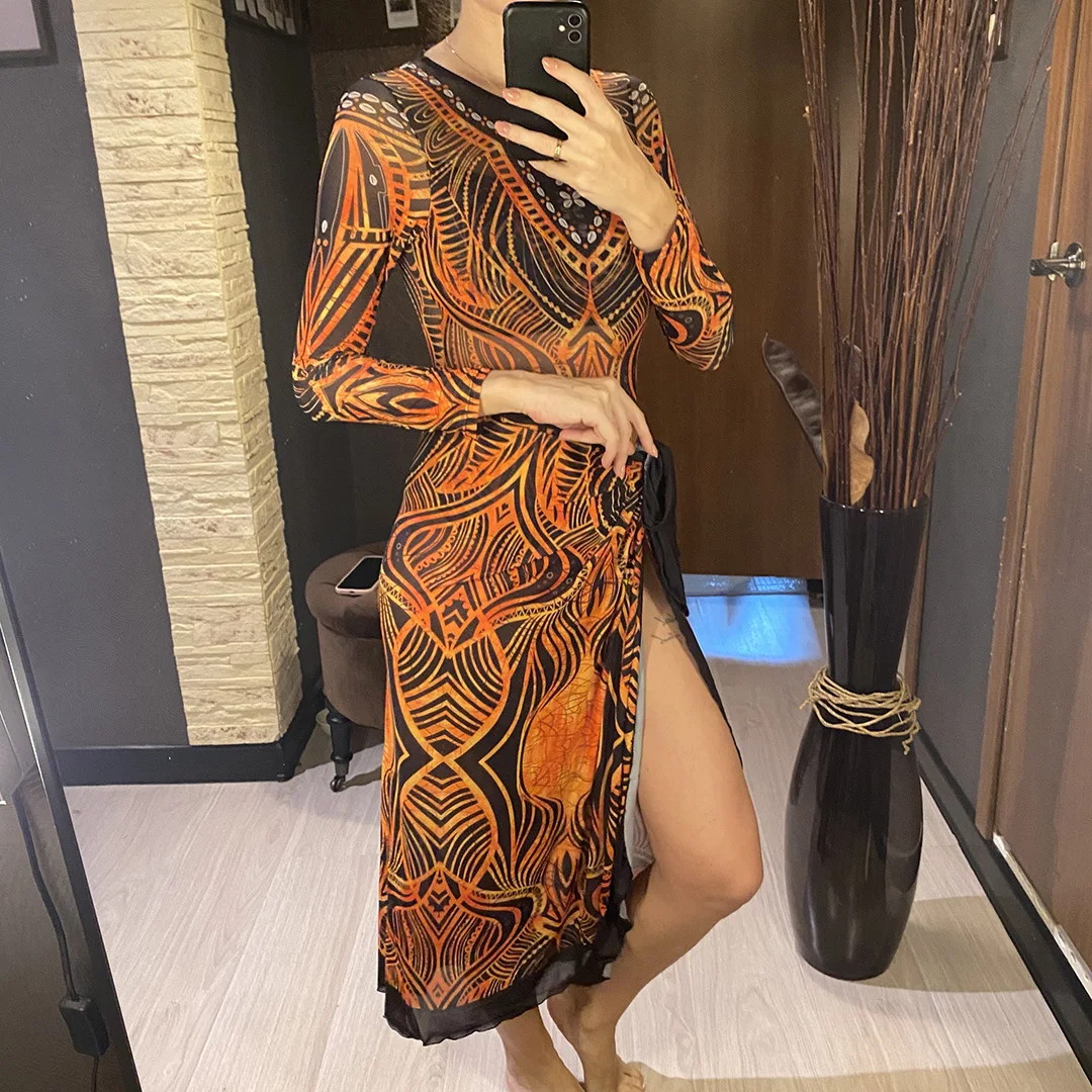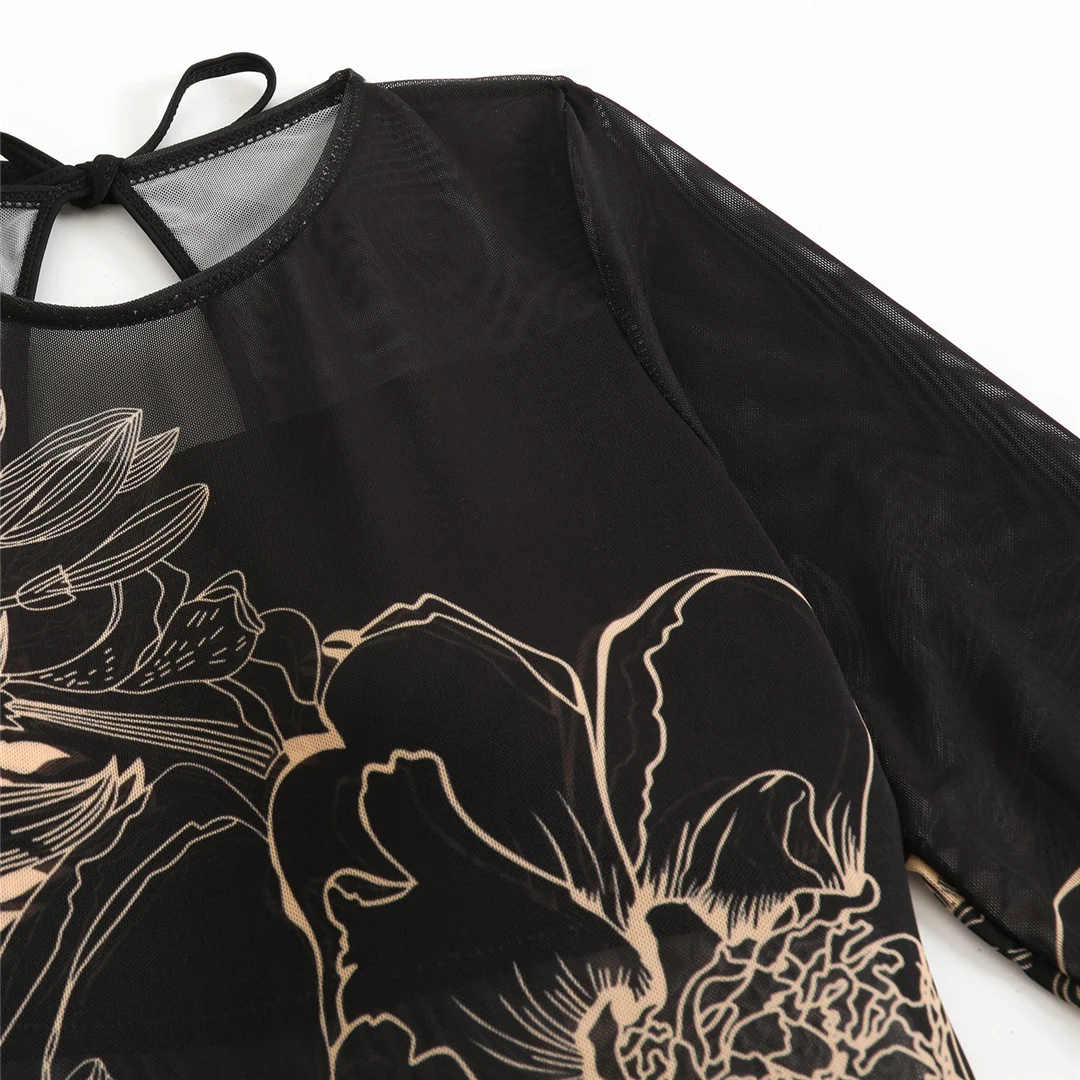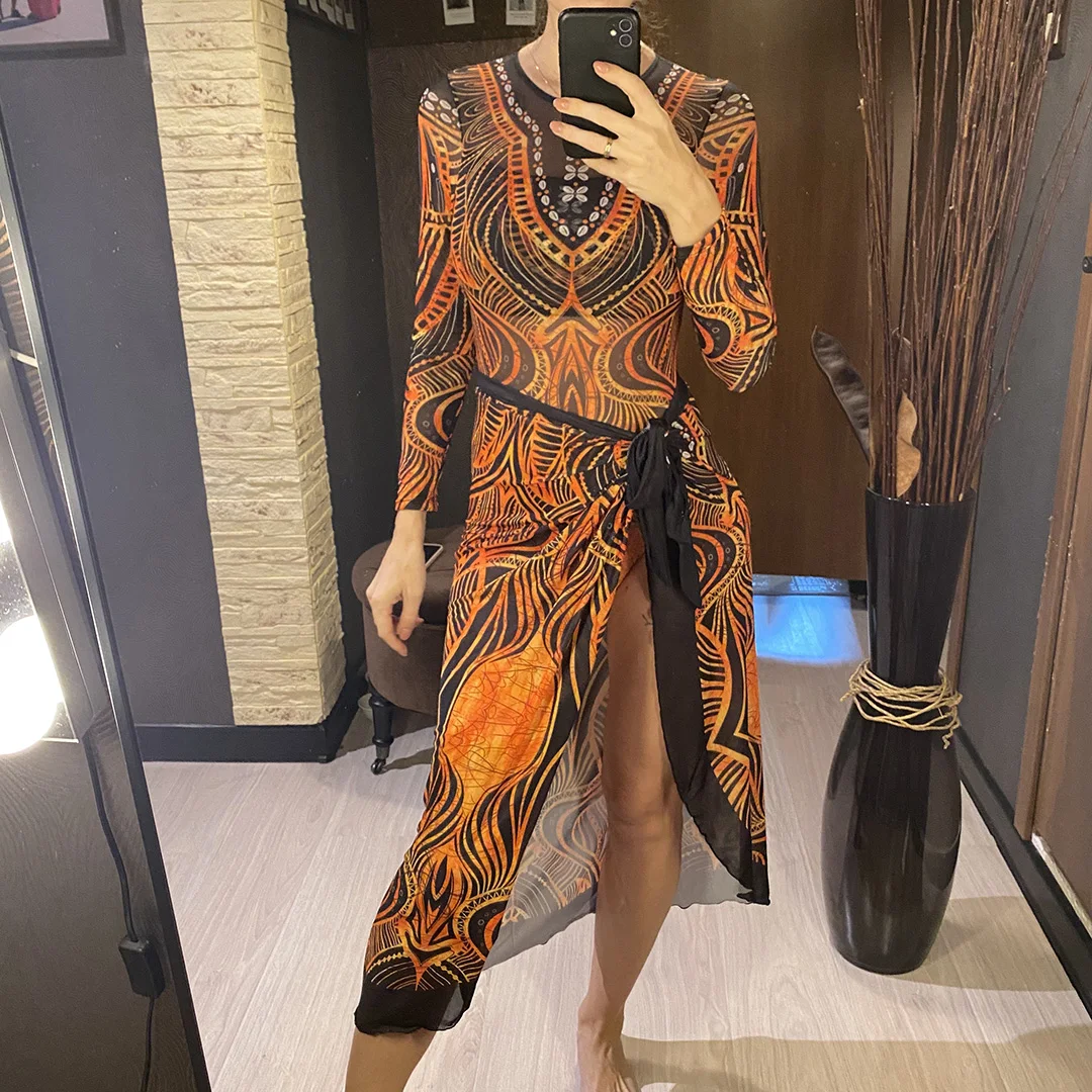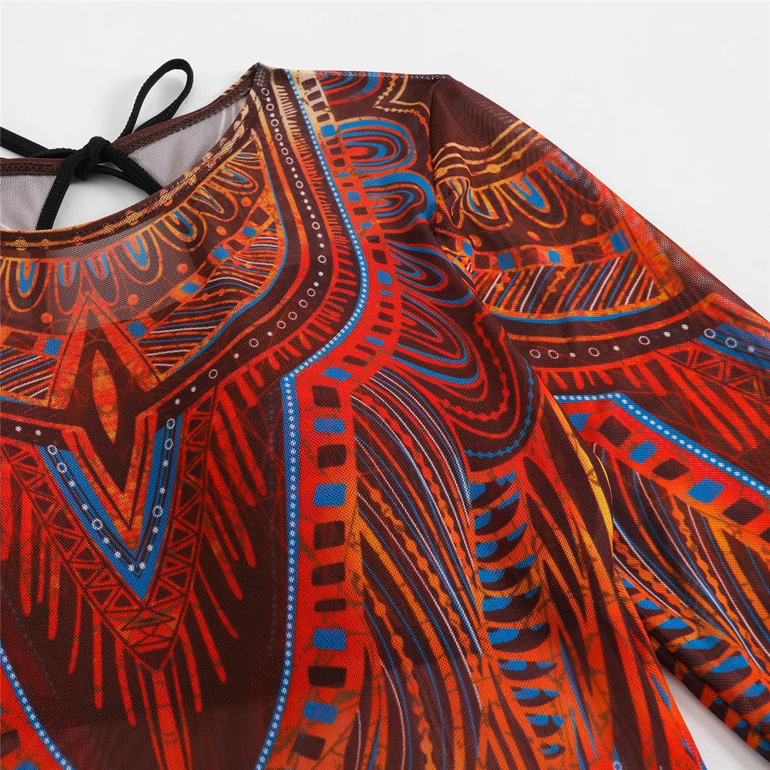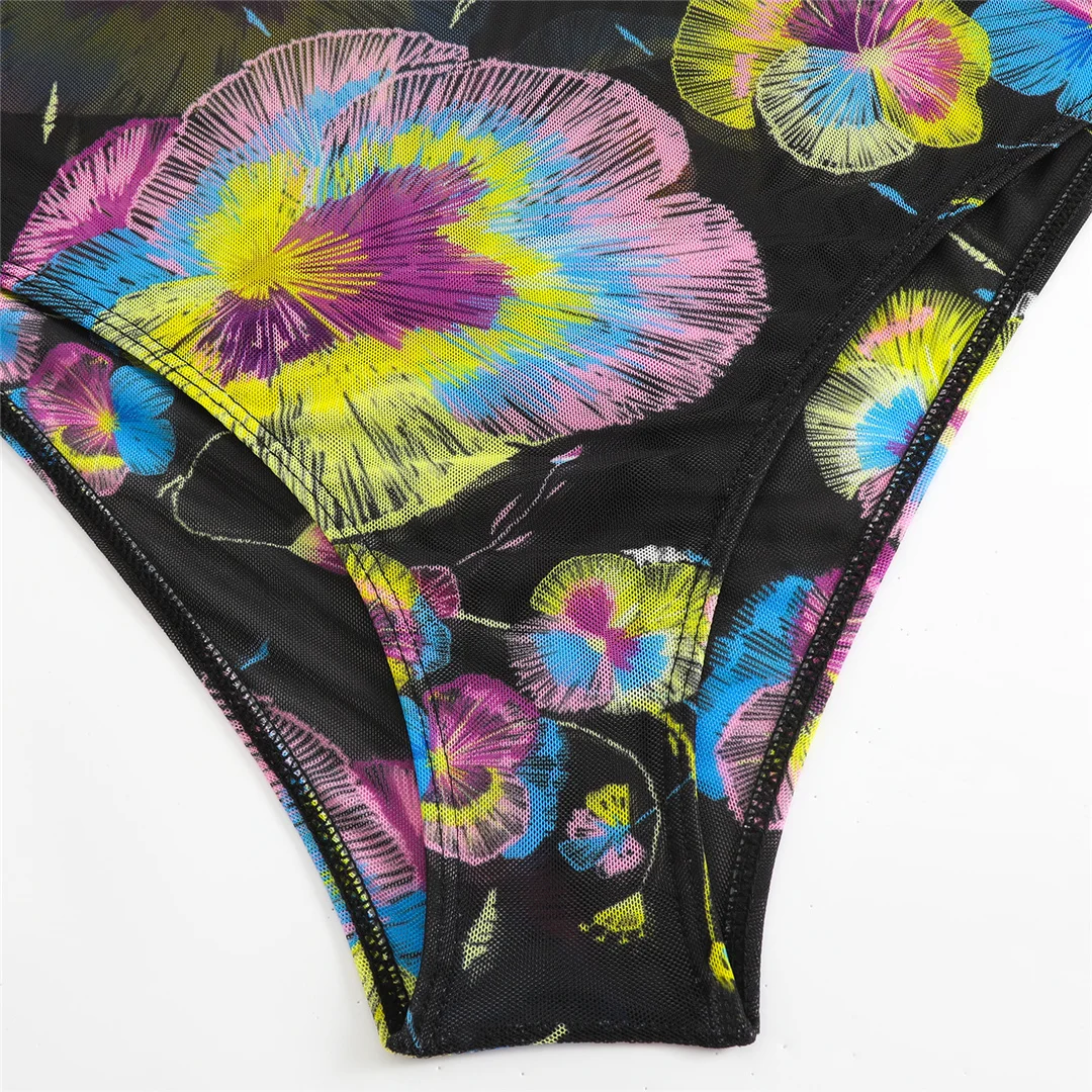 S – XXL 3PCS New Printed Long Sleeve With Pants Sarong Women Swimwear One Piece Swimsuit Female Bather Bathing Suit Swim V7180