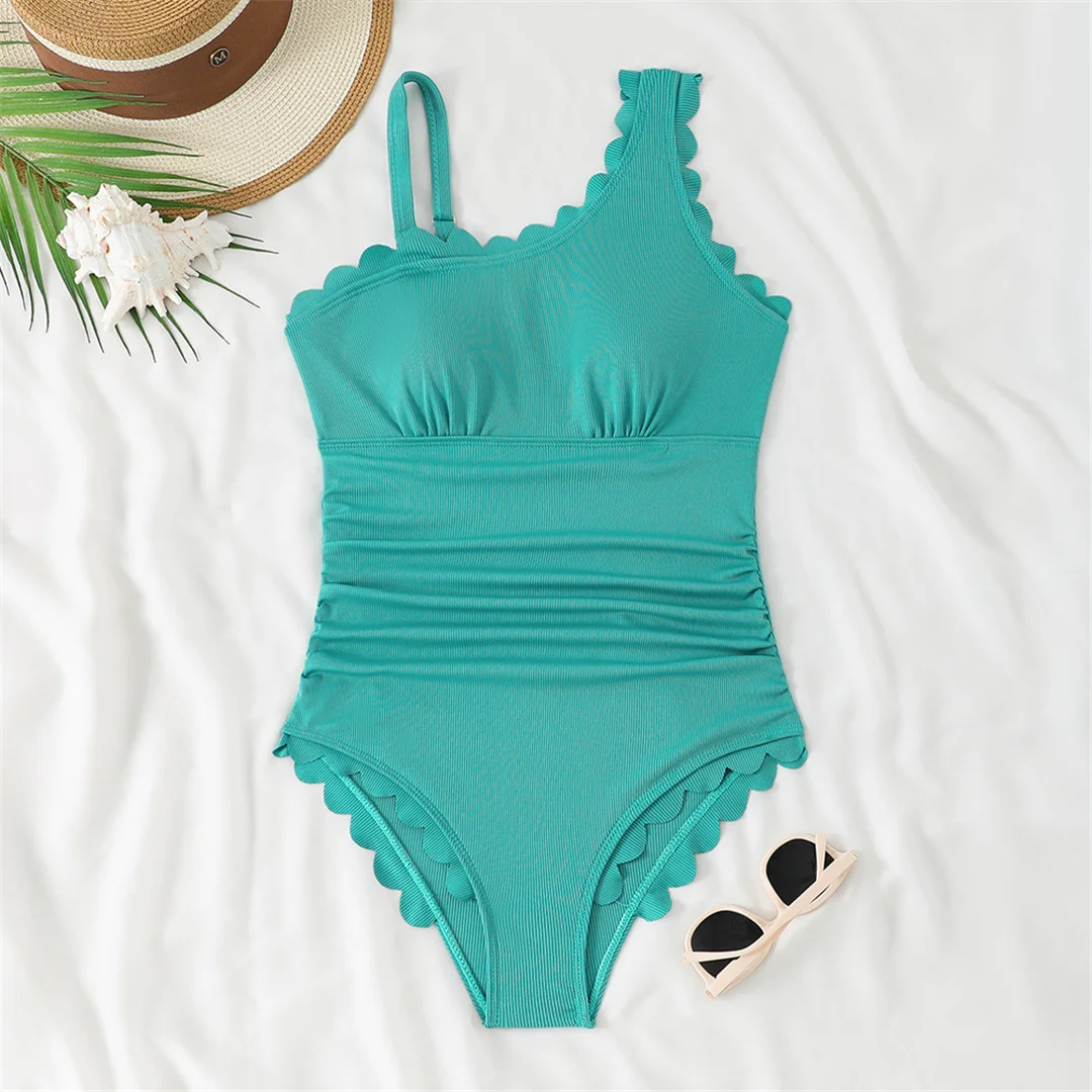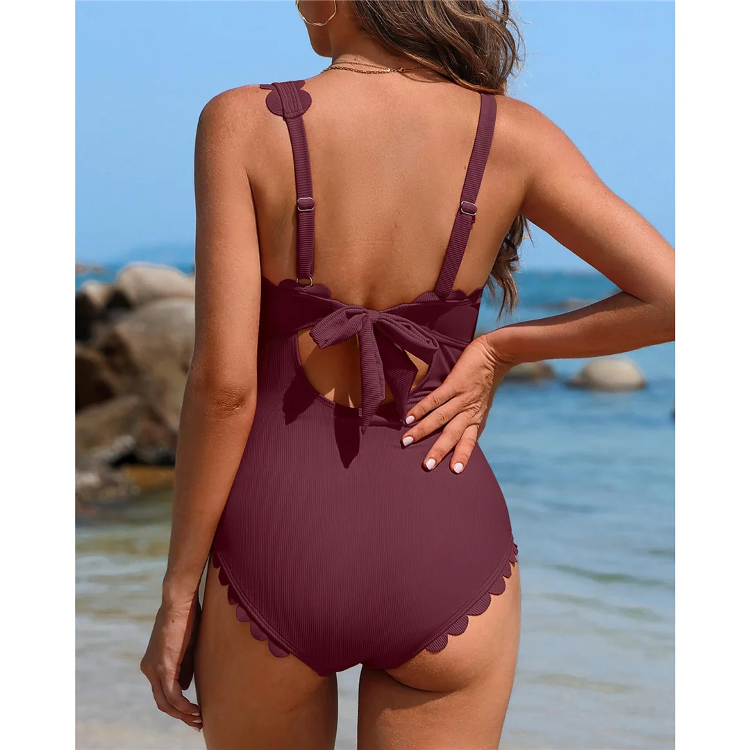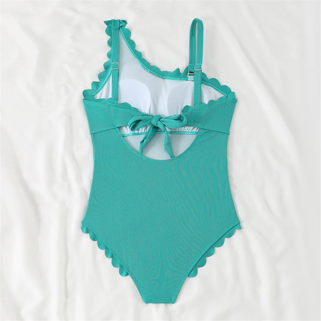 S – XXL Frilled Backless High Cut Leg Women Swimwear One Piece Swimsuit Female Monokini Padded Bather Bathing Suit Swim V7102