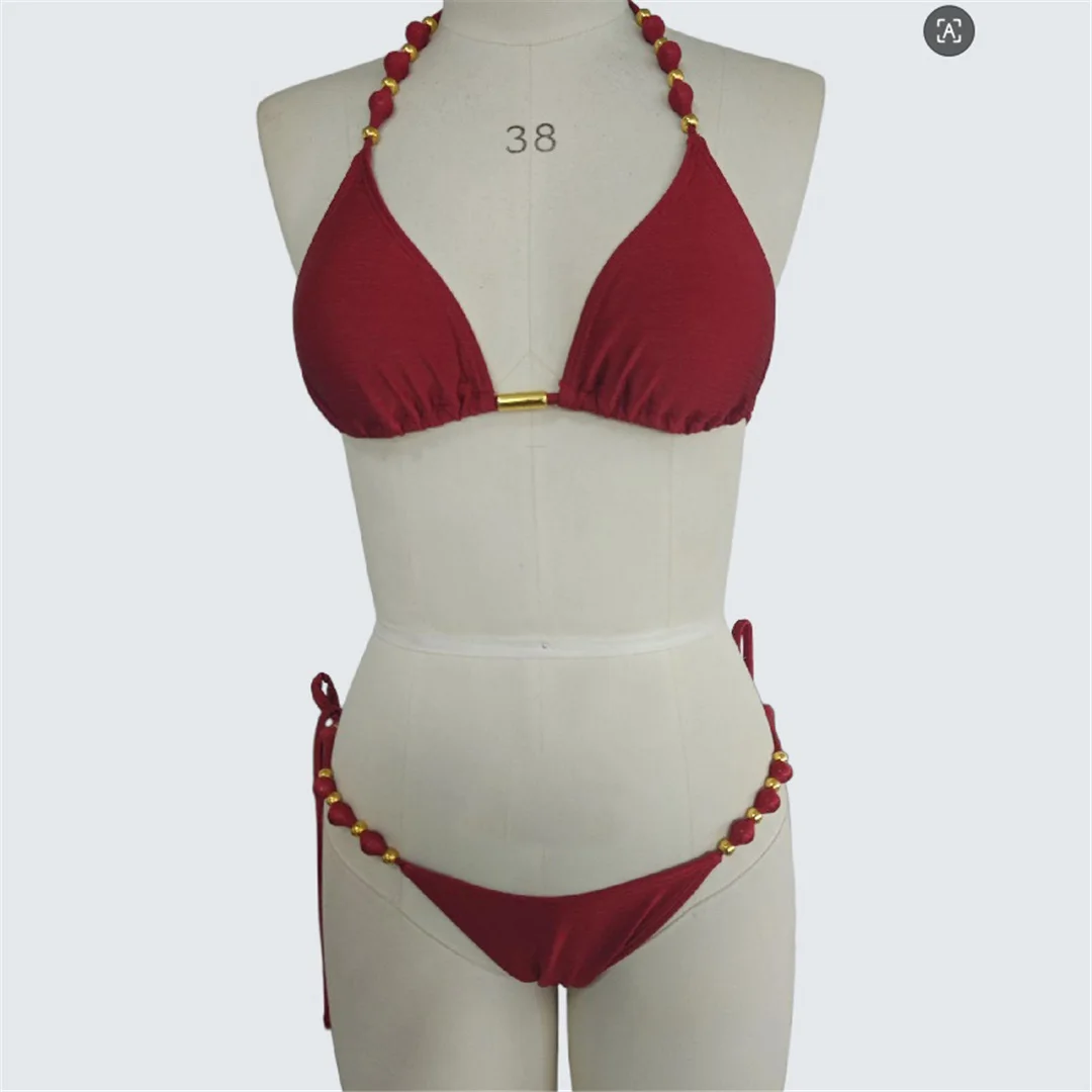 S – XXL Halter High Cut Leg Bikini Female Swimsuit Women Swimwear Two-pieces Bikini set Strappy Bather Bathing Suit Swim V7464