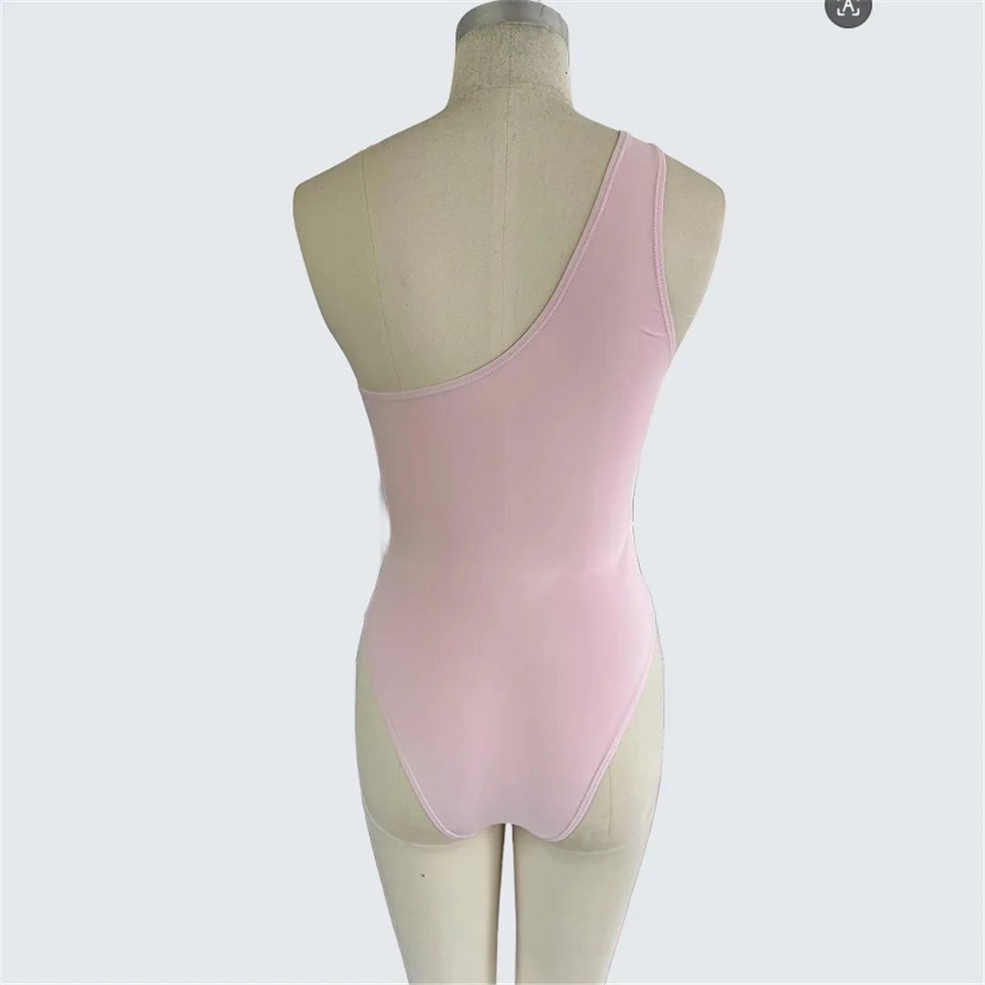 S – XXL New Splicing One Shoulder See Through Mesh Sheer One Piece Swimsuit Women Swimwear Female Bather Bathing Suit Swim V7475