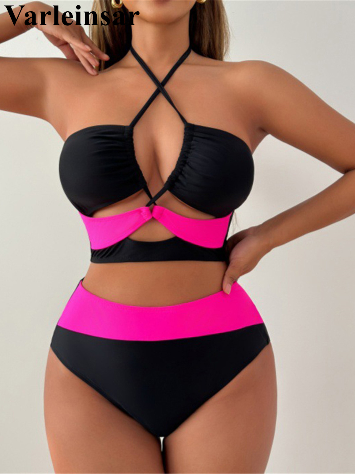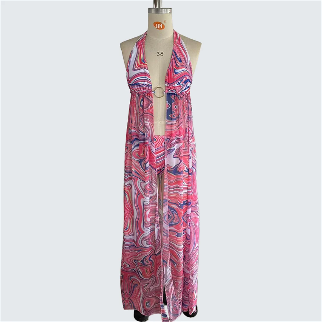 S – XXL New With Dress Printed Halter Bikini Women Swimwear Female Swimsuit Two-pieces Bikini set Bather Bathing Suit Swim V7493