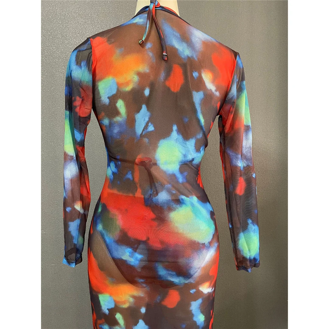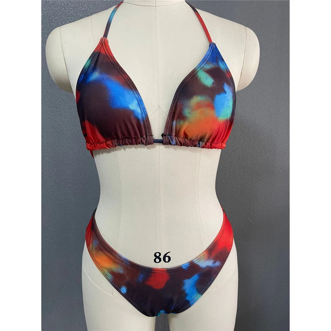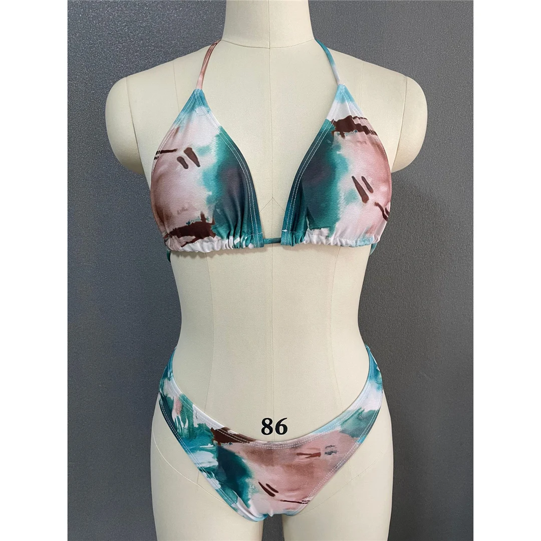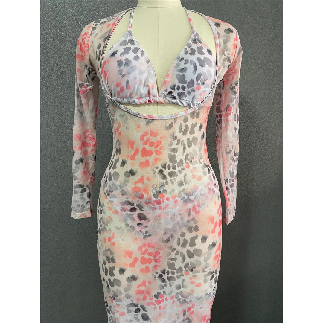 S- XXL Printed Long Sleeve Cover Up Bikini Female Swimsuit Women Swimwear Three-pieces Bikini set Bather Bathing Suit Swim V6337