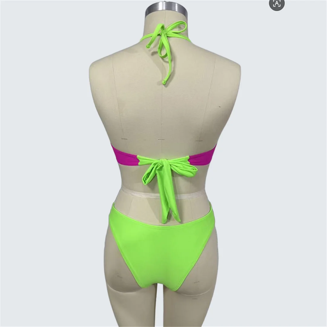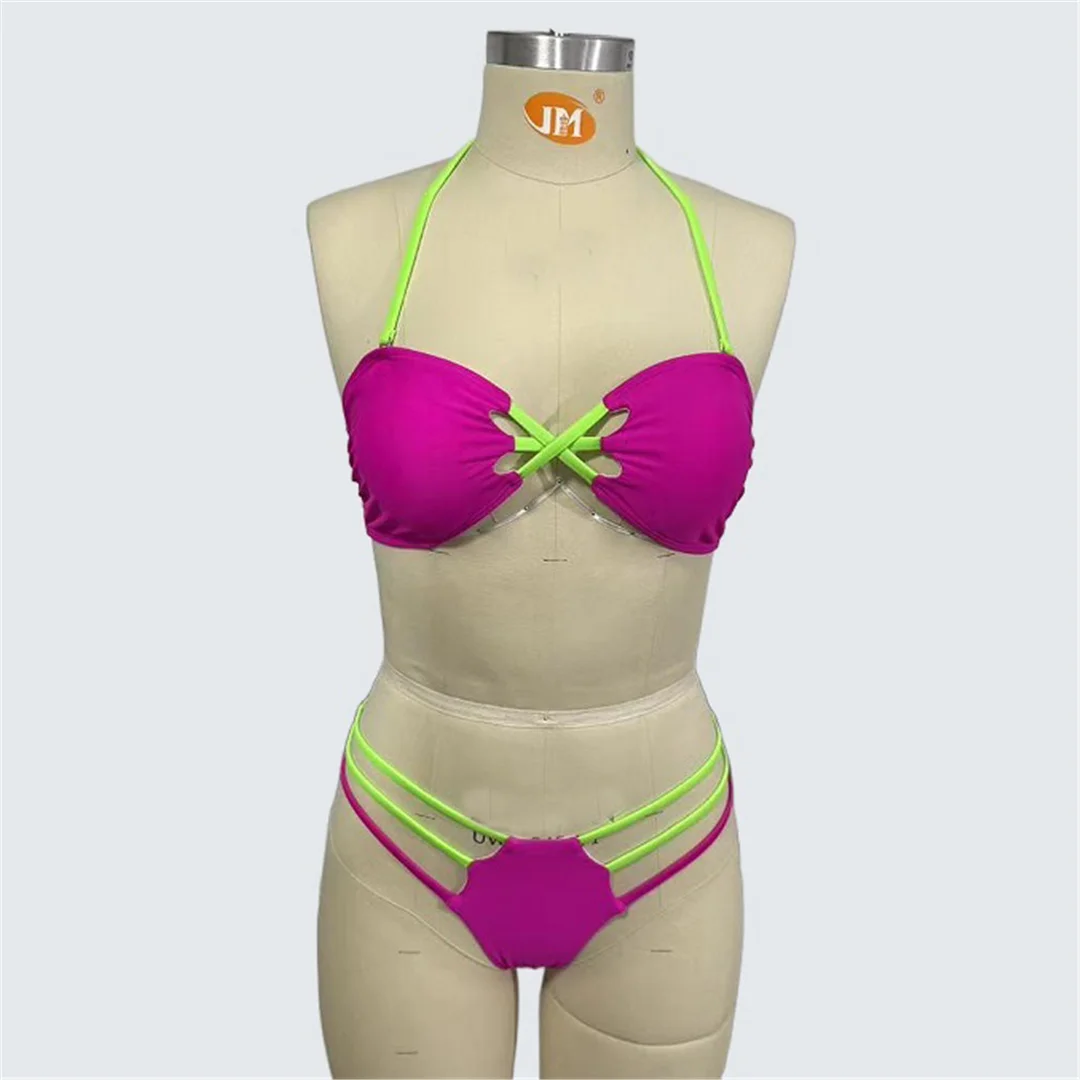S – XXL Splicing Bandeau Bikini Women Swimwear Female Swimsuit Two-pieces Bikini set High Leg Cut Bather Bathing Suit Swim V7528