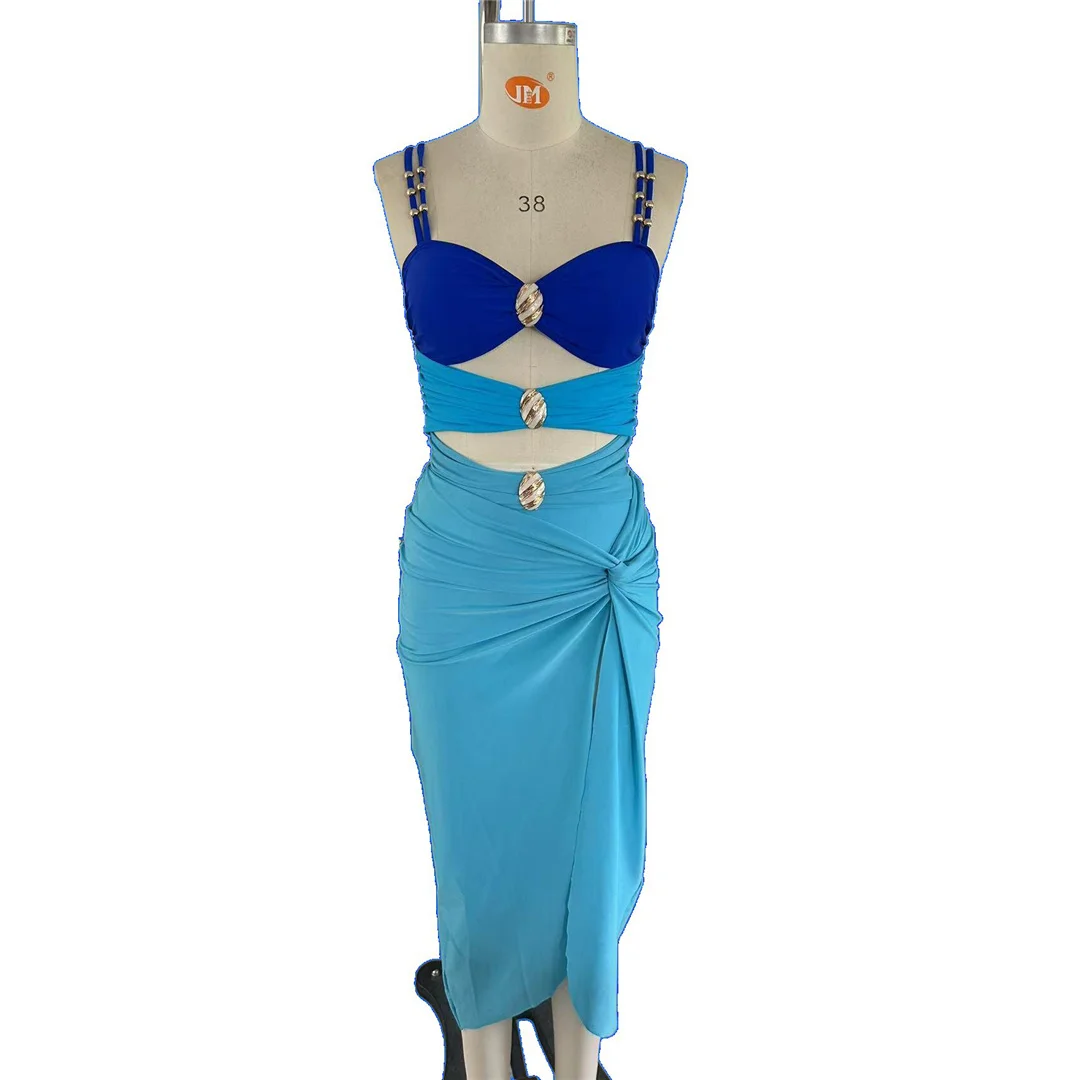 S – XXL Splicing With Skirt Cut Out One Piece Swimsuit Women Swimwear Female Metal Ring Wrinkled Bather Bathing Suit Swim V7431