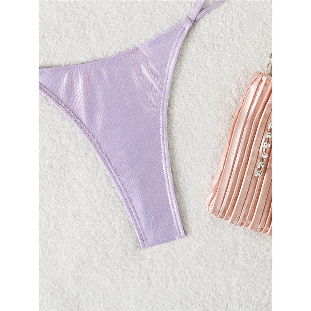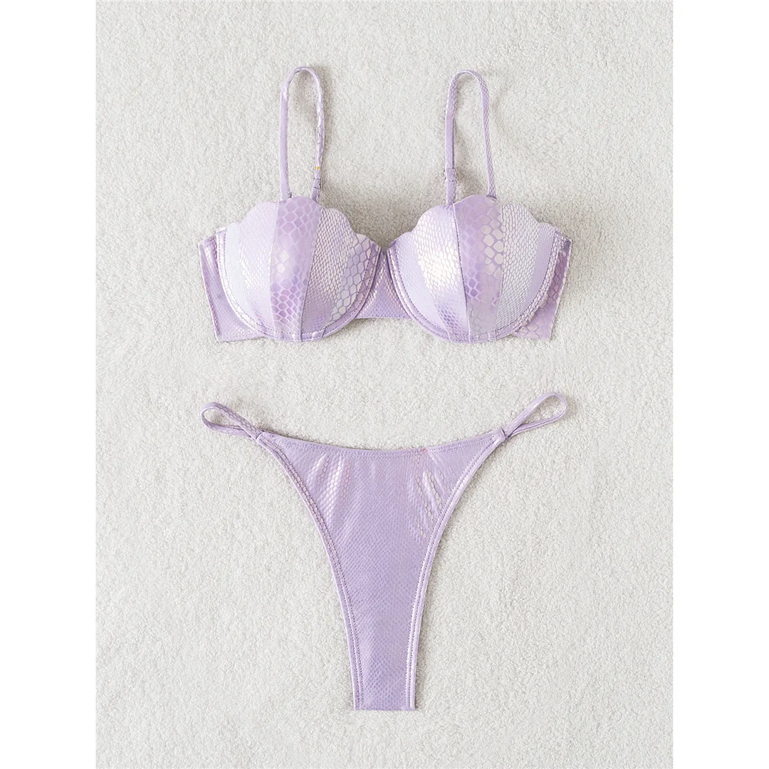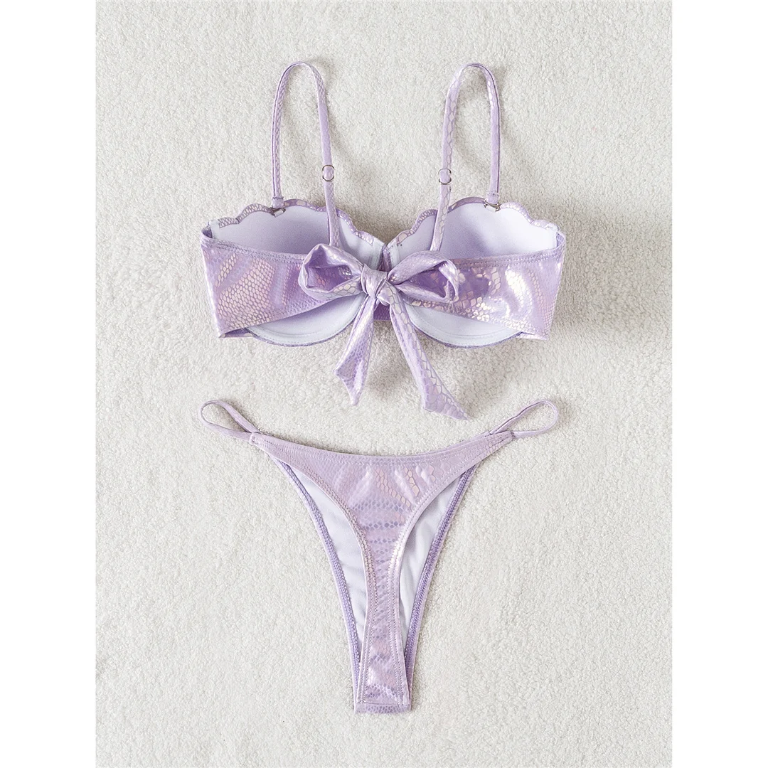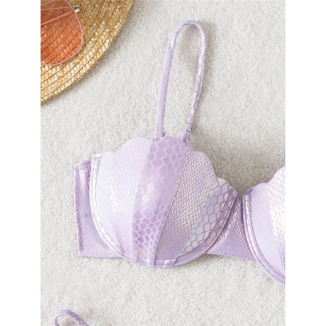 Scalloped Snake Skin Thong Bikini Female Swimsuit Women Swimwear Two-pieces Bikini set Bra Cup Bather Bathing Suit Swim V4650