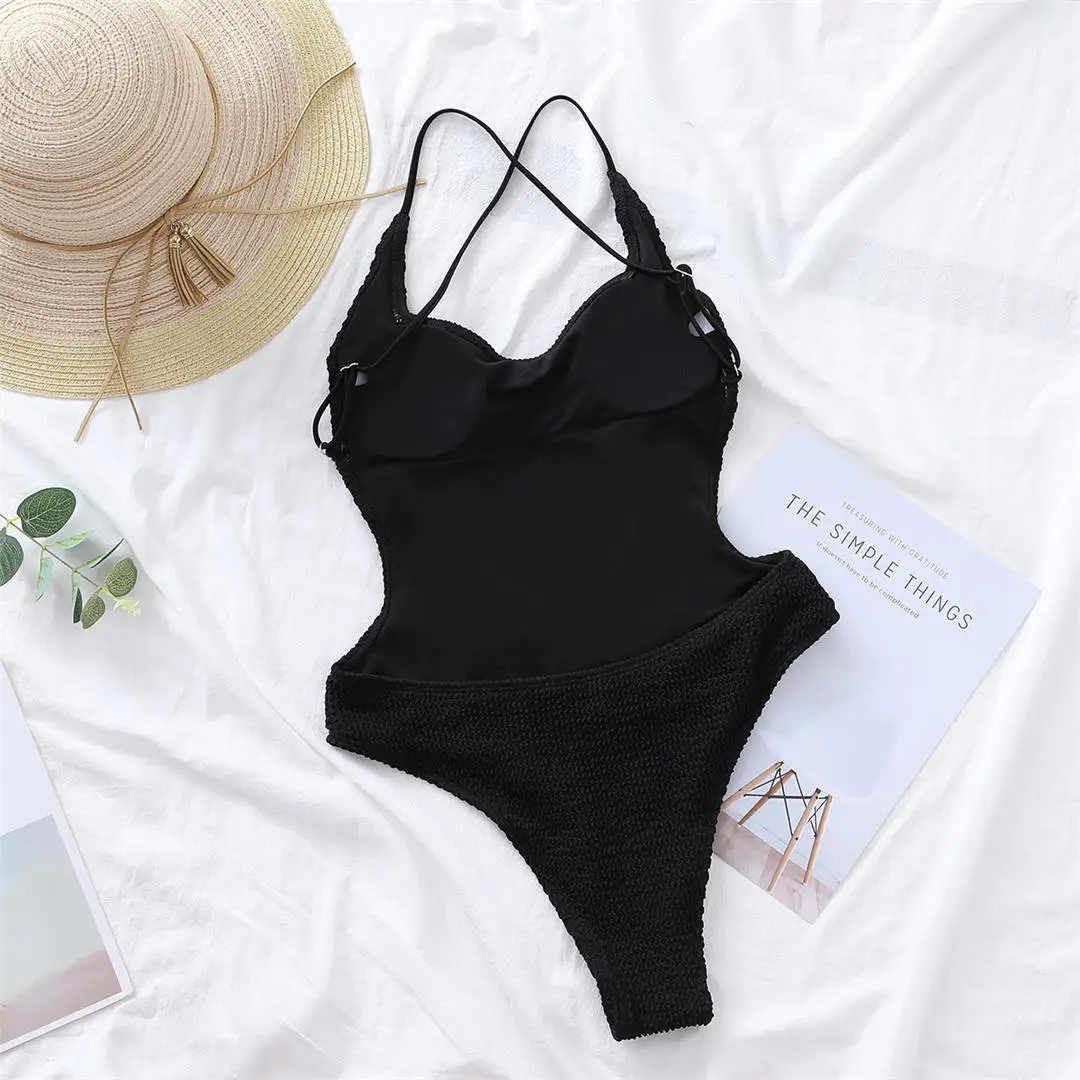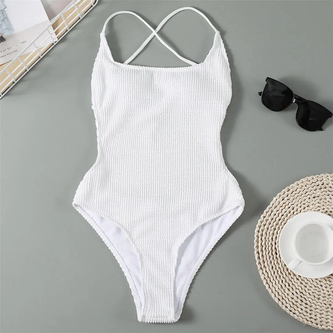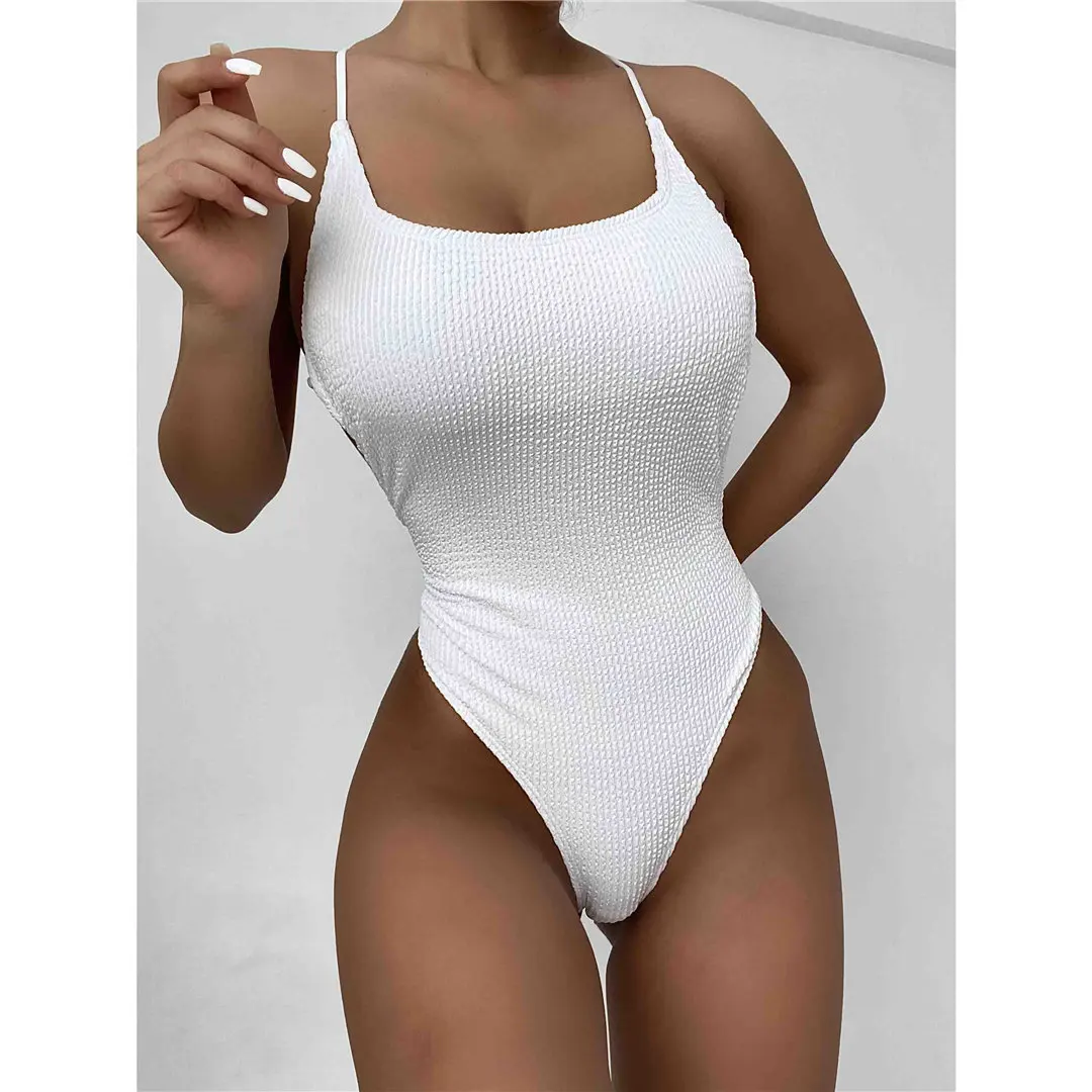 Sexy 3 Colors Backless High Leg Cut Women Swimwear One Piece Swimsuit Female Ribbed Padded Bather Bathing Suit Swim Lady V2944SW