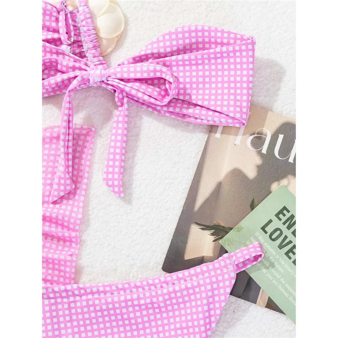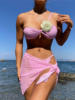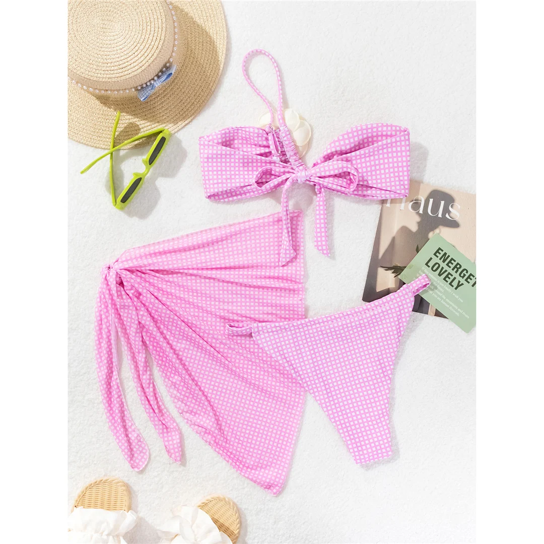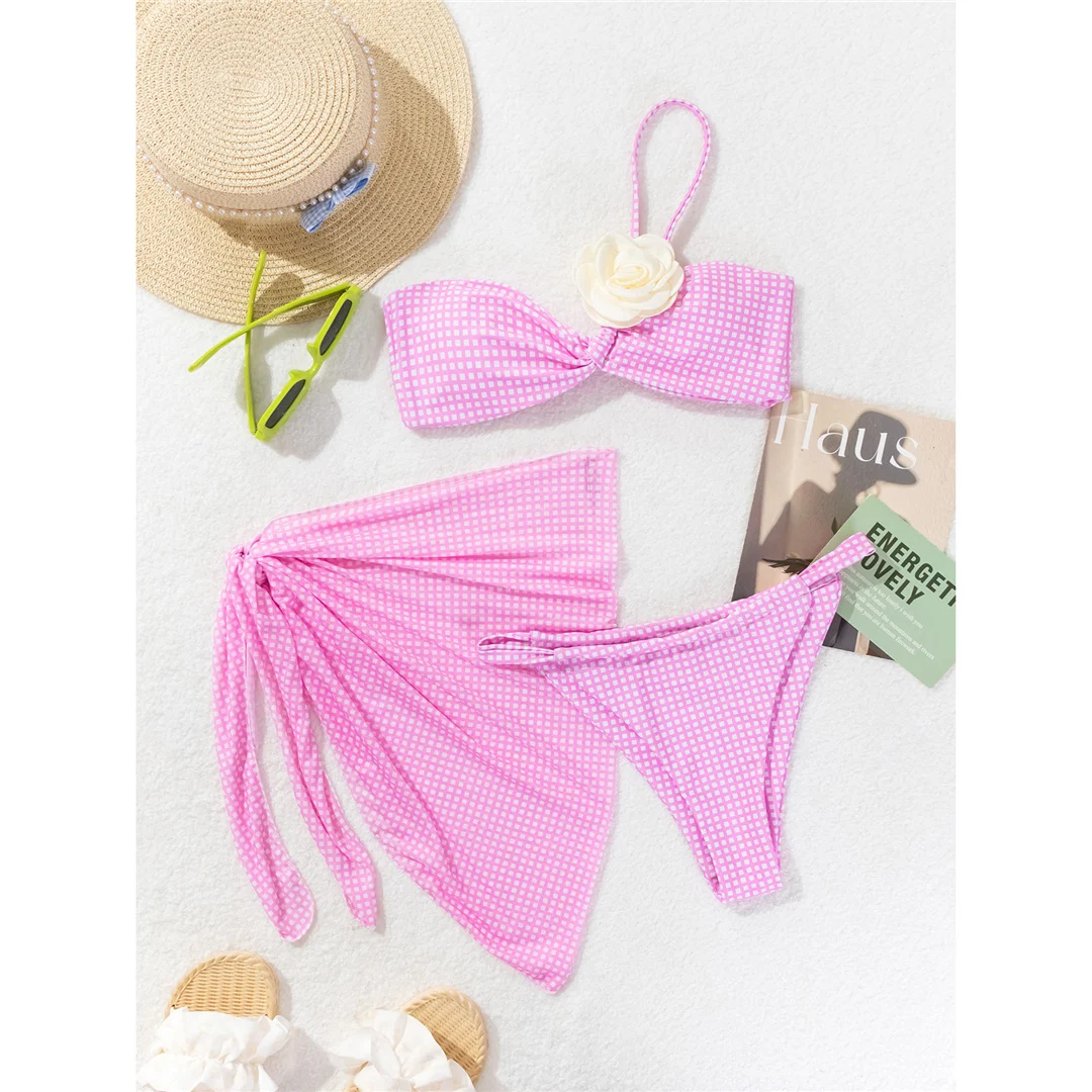 Sexy 3D Flower Plaid With Sarong Bikini Women Swimwear Female Swimsuit Three-pieces Bikini set Bather Bathing Suit Swim V6224