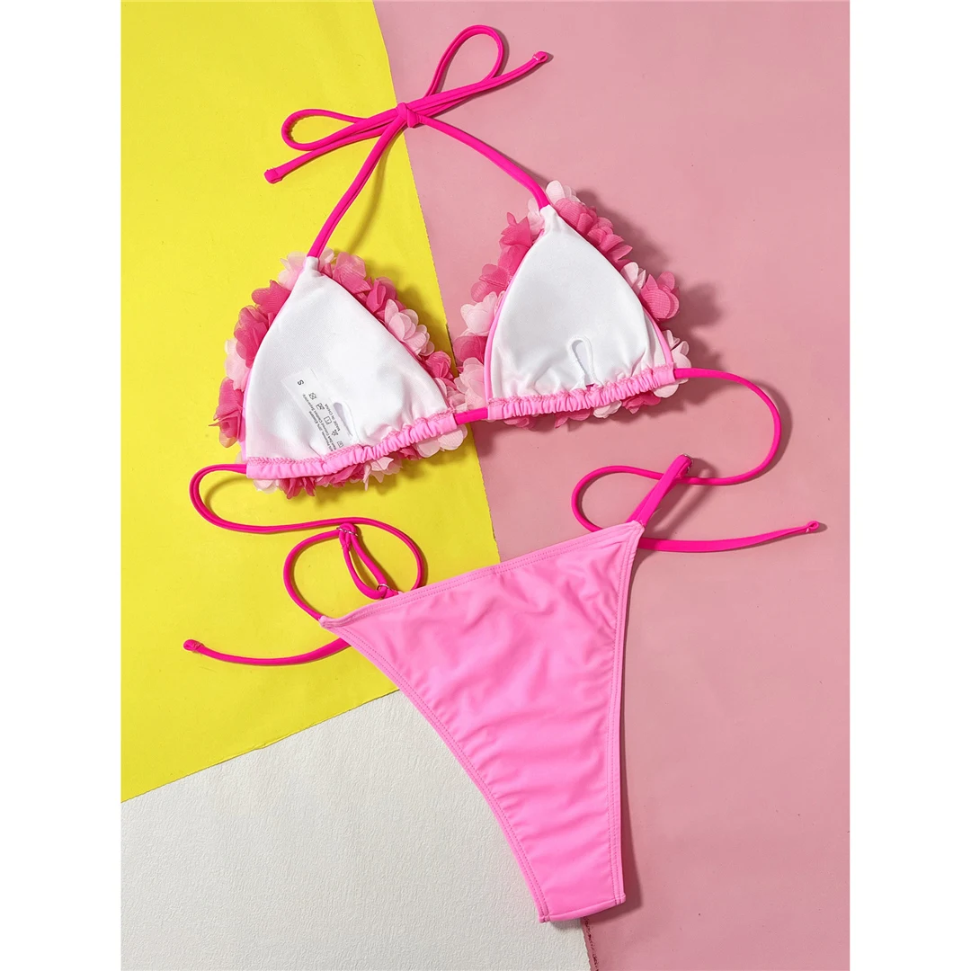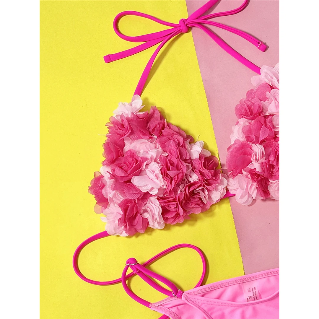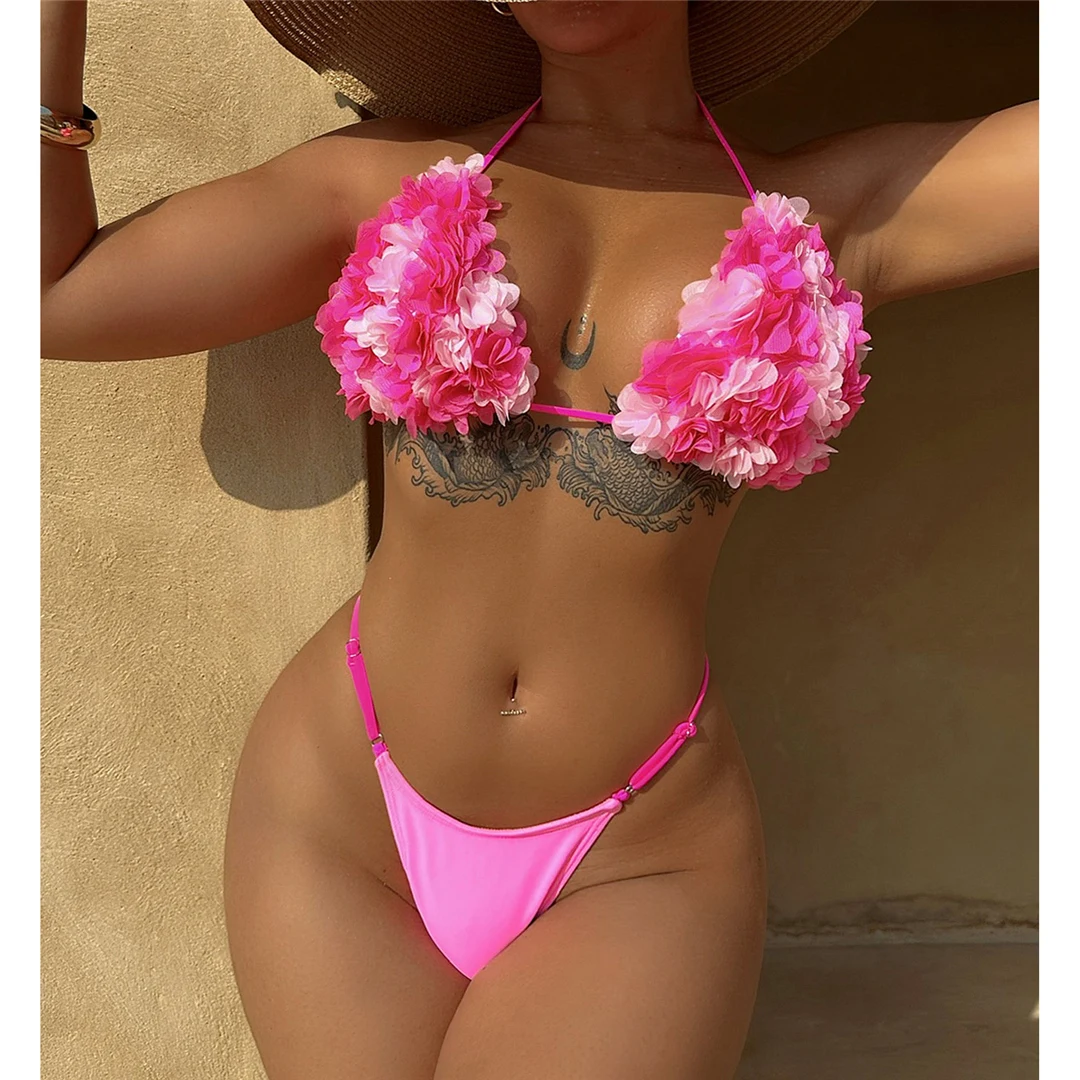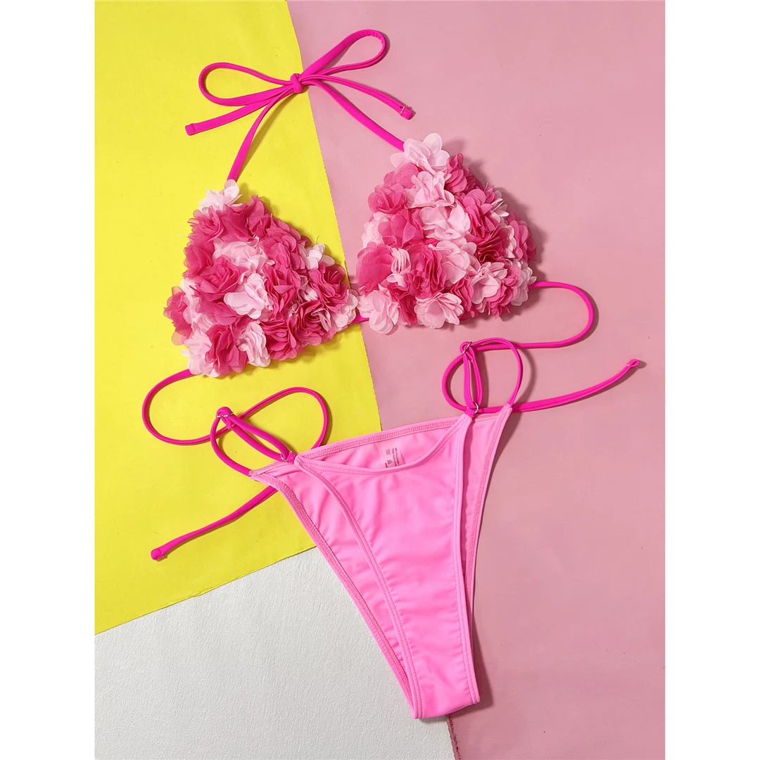 Sexy 3D Flowers Halter High Leg Cut Bikini Women Swimwear Female Swimsuit Two-pieces Bikini set Bather Bathing Suit Swim V5386