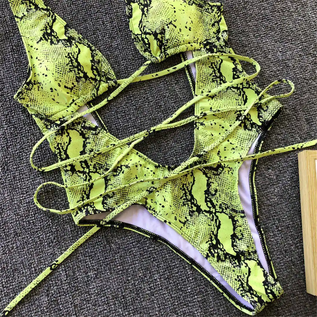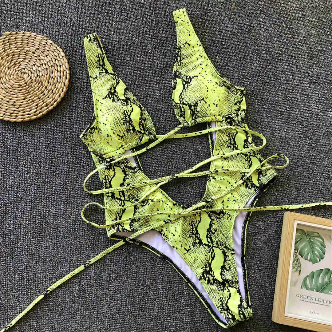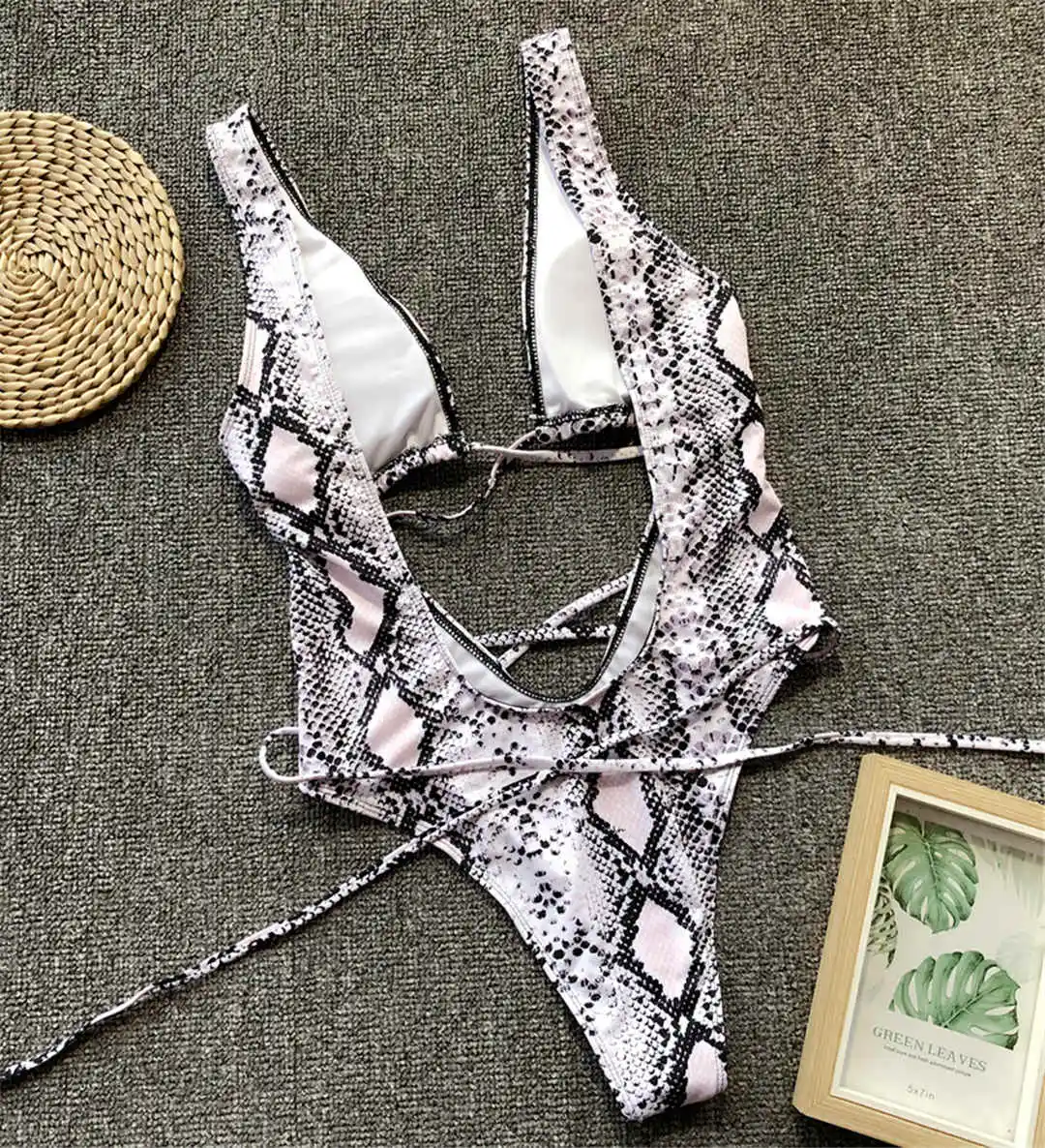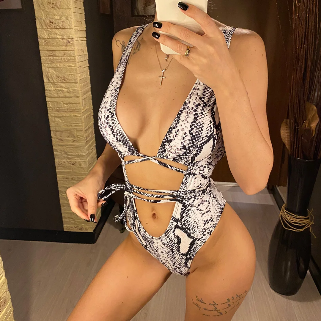 Sexy Bandage Wrap Around Tummy Cut Out Deep V Monokini One Piece Swimsuit Women Swimwear Female Bather Bathing Suit Swim V1037