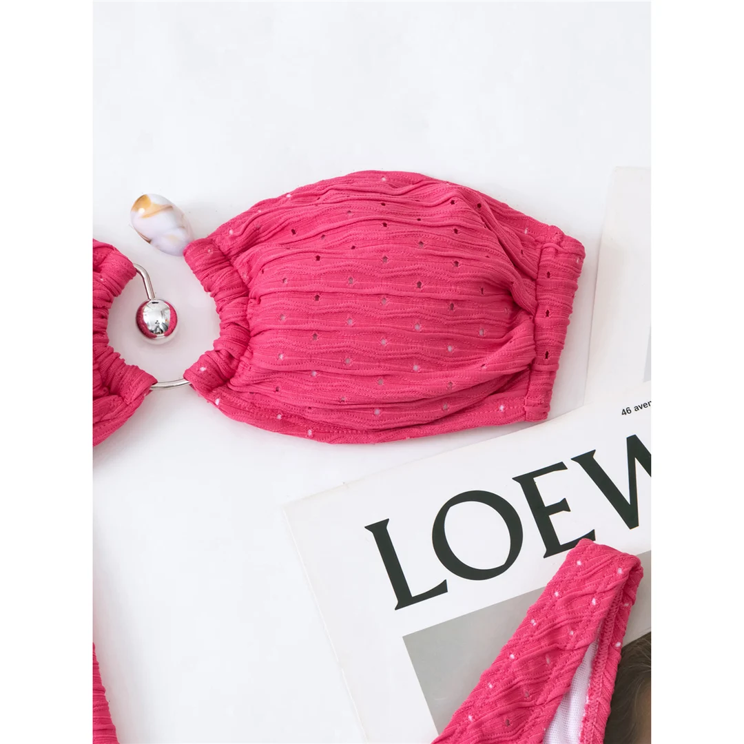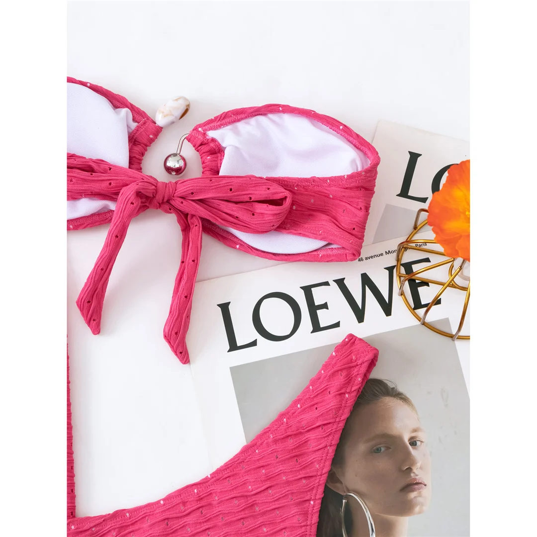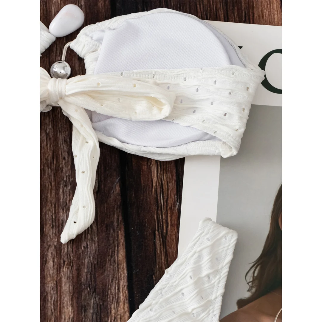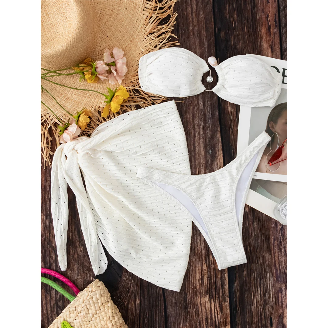Sexy Bandeau With Sarong Hollow Out Bikini Female Swimsuit Women Swimwear Three-pieces Bikini set Bather Bathing Suit Swim V5583