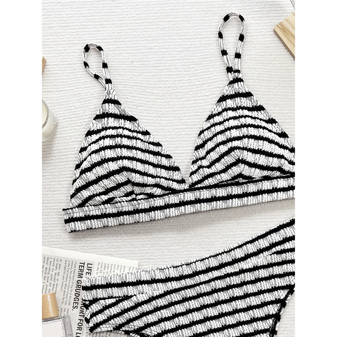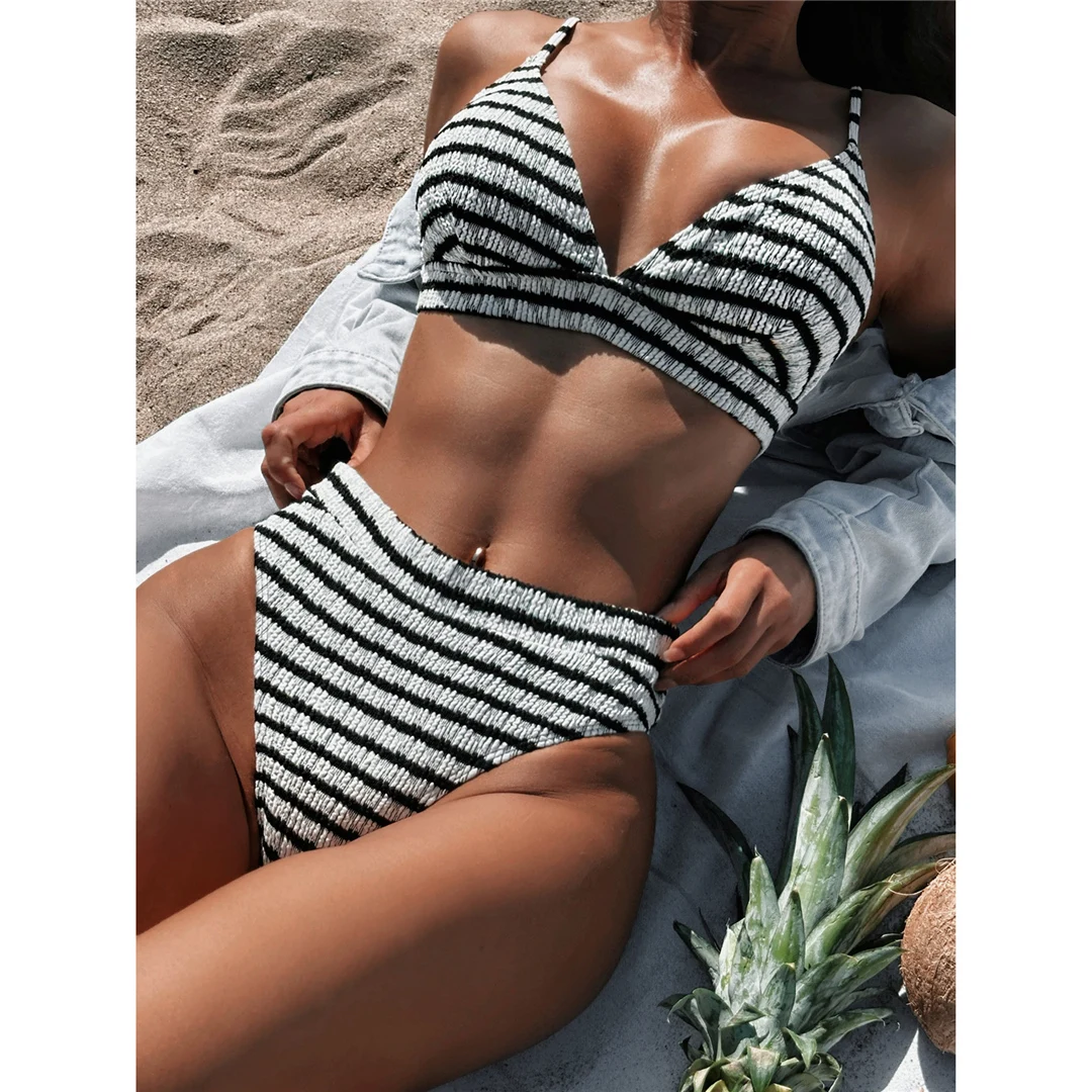 Sexy Black White Striped High Waist Bikini Female Swimsuit Women Swimwear Two-pieces Bikini set Bather Bathing Suit Swim V5830