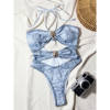 Sexy Denim Printed Halter Cut Out One Piece Swimsuit Women Swimwear Female High Cut Leg Padded Bather Bathing Suit Swim V6478