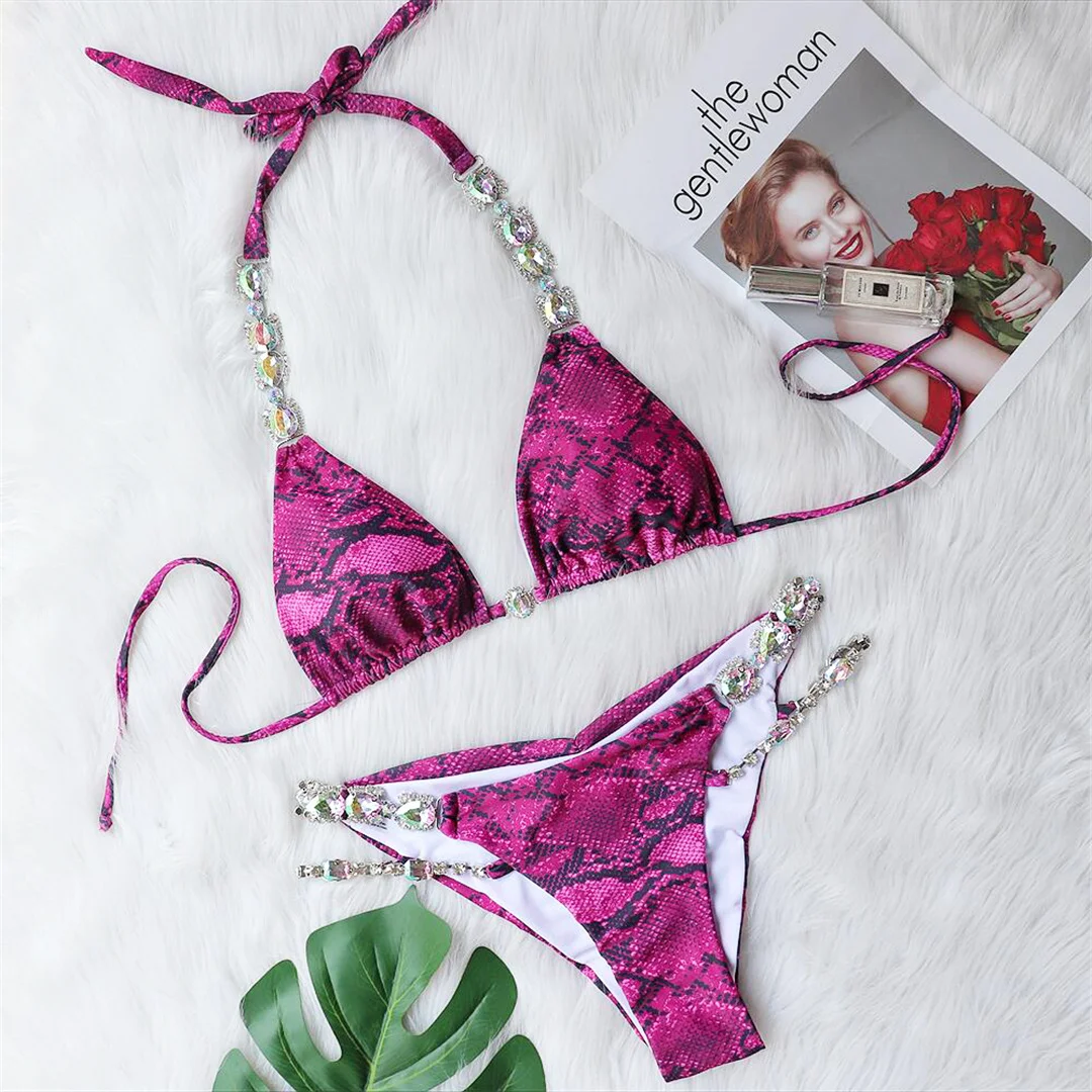 Sexy Diamond Rhinestone Scrunch Butt Bikini Women Swimwear Female Swimsuit Two-pieces Bikini set Bather Bathing Suit Swim V3854