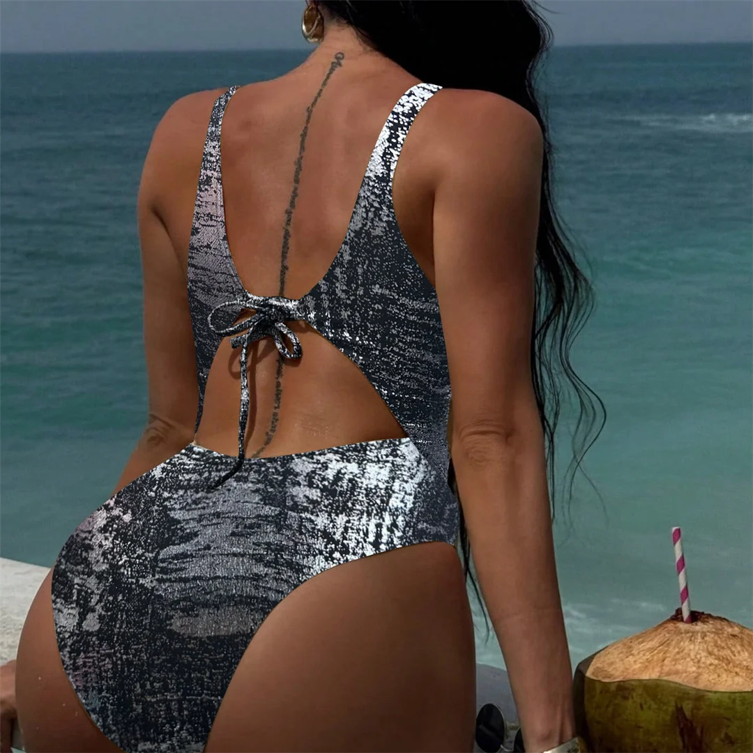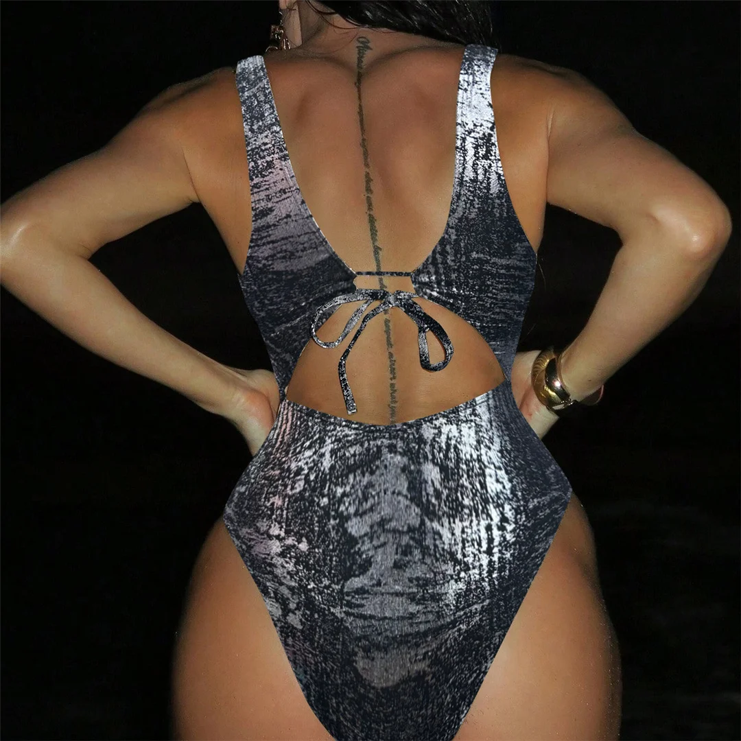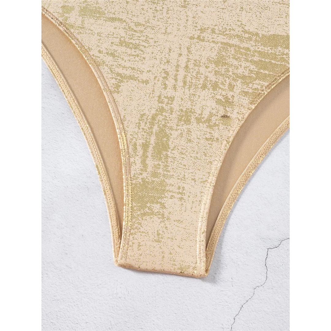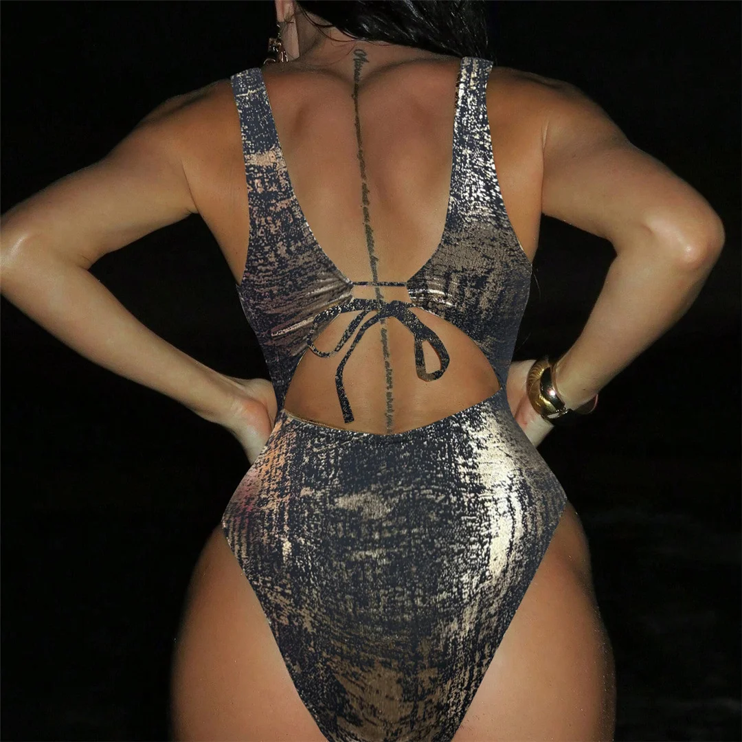 Sexy Golden Deep V Neck High Cut Leg Backless One Piece Swimsuit Women Swimwear Female Monokini Bather Bathing Suit Swim V6690