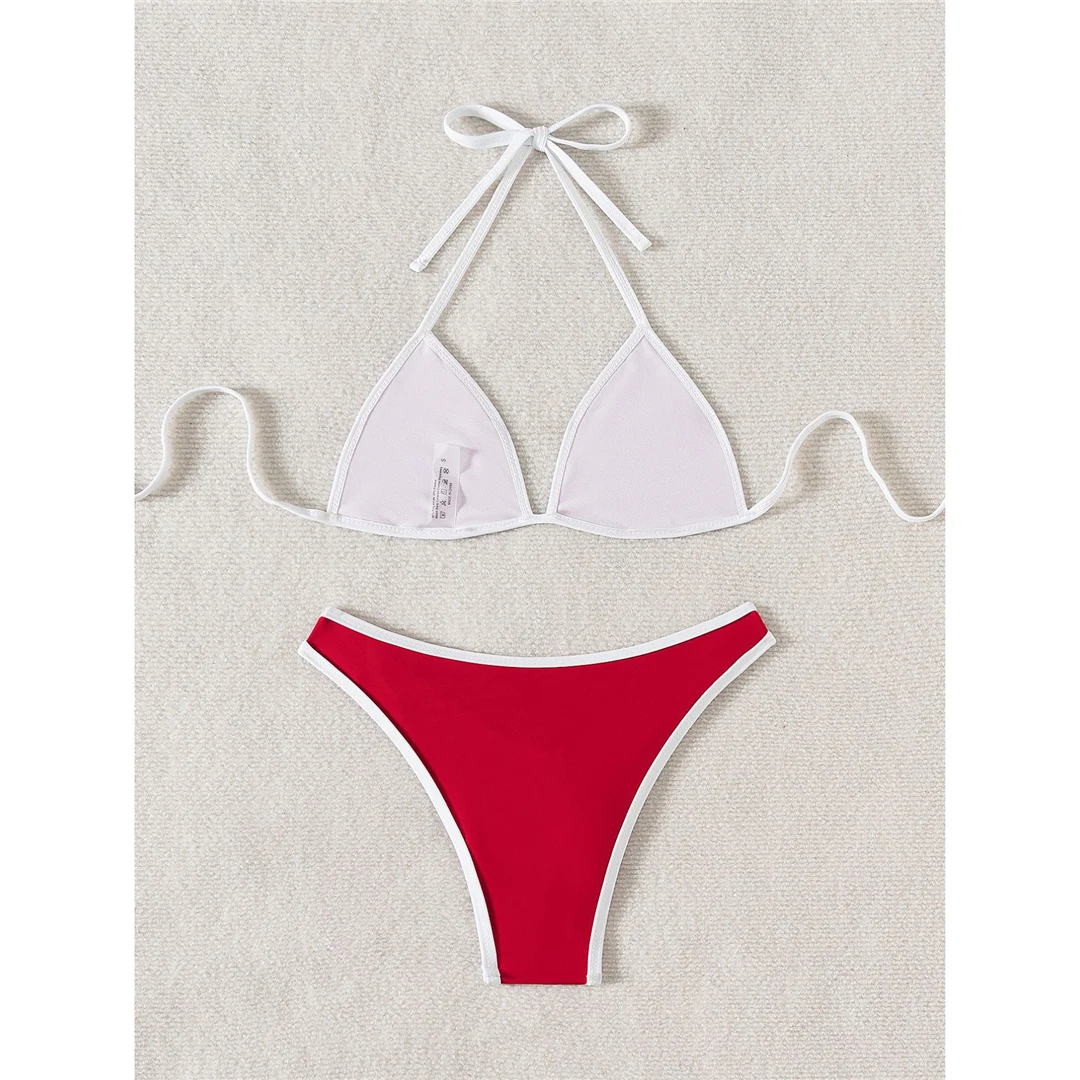 Sexy Halter Brazilian High Cut Bikini Female Swimsuit Women Swimwear Two-pieces Bikini set Padded Bather Bathing Suit Swim V6357
