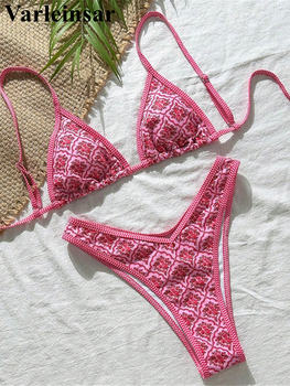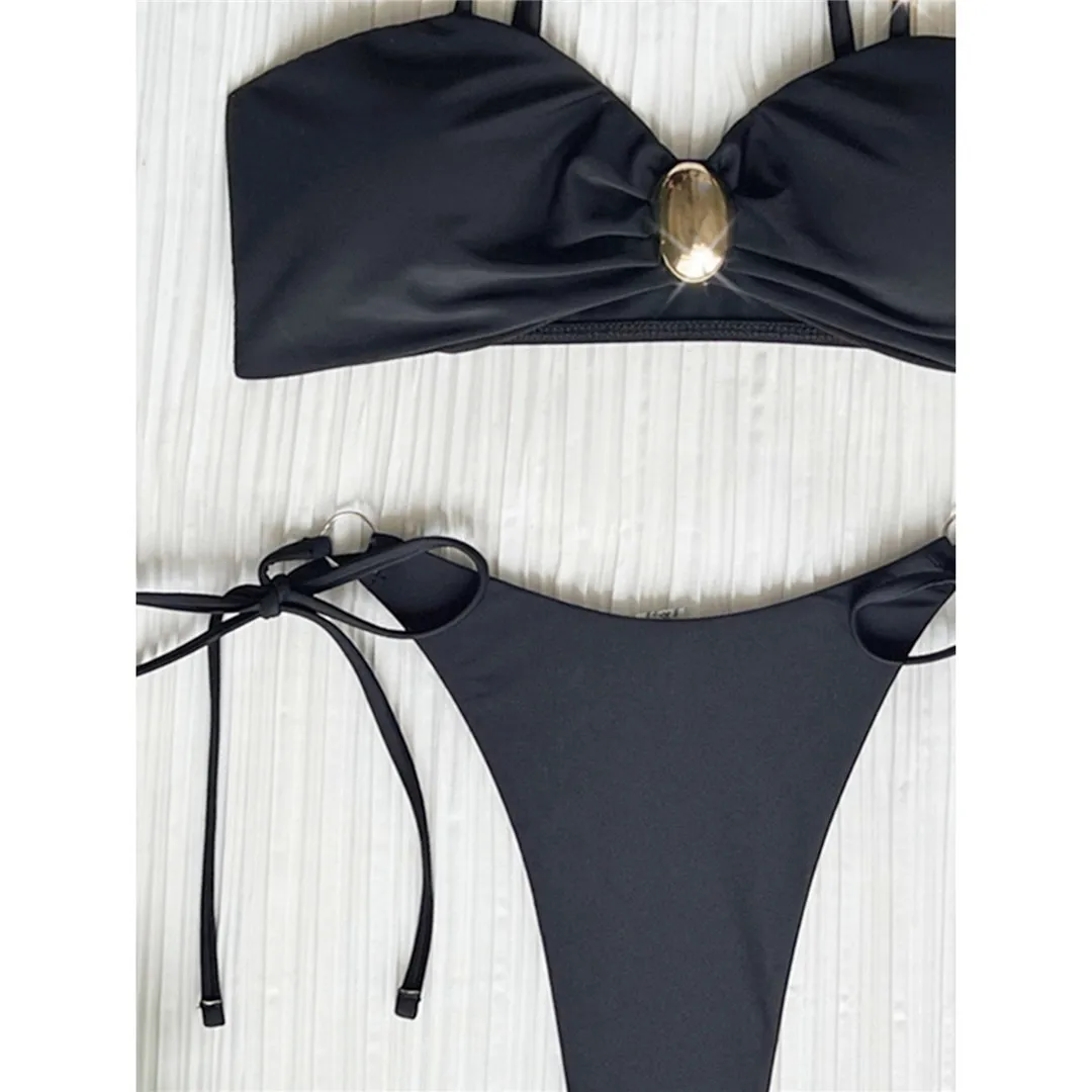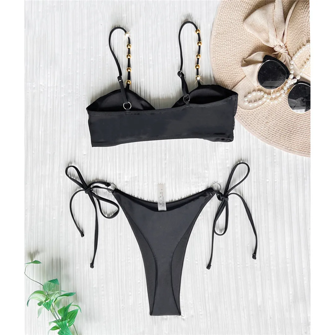 Sexy High Cut Leg Strappy Mini Thong Bikini Female Swimsuit Women Swimwear Two-pieces Bikini set Bather Bathing Suit Swim V6442