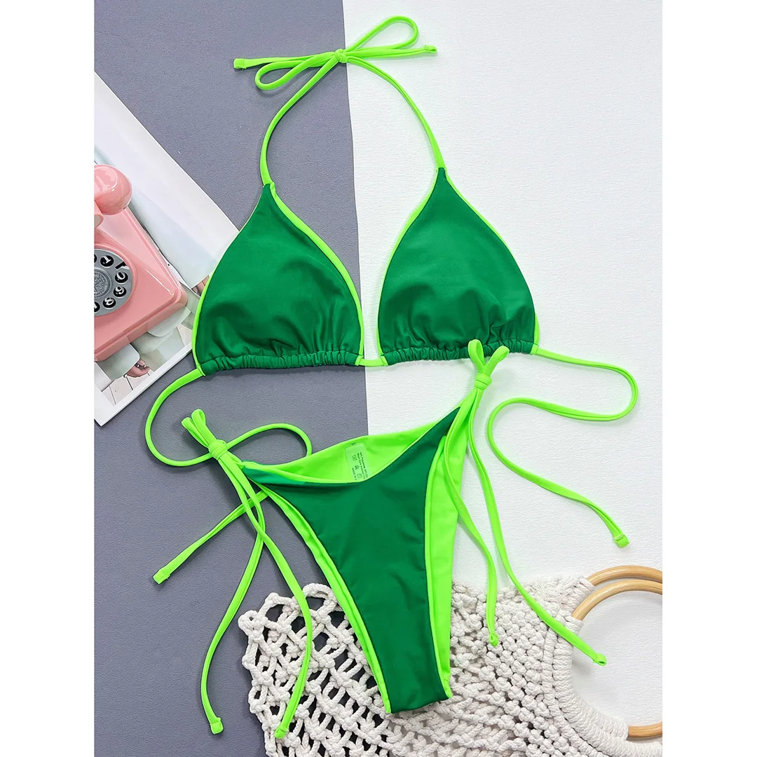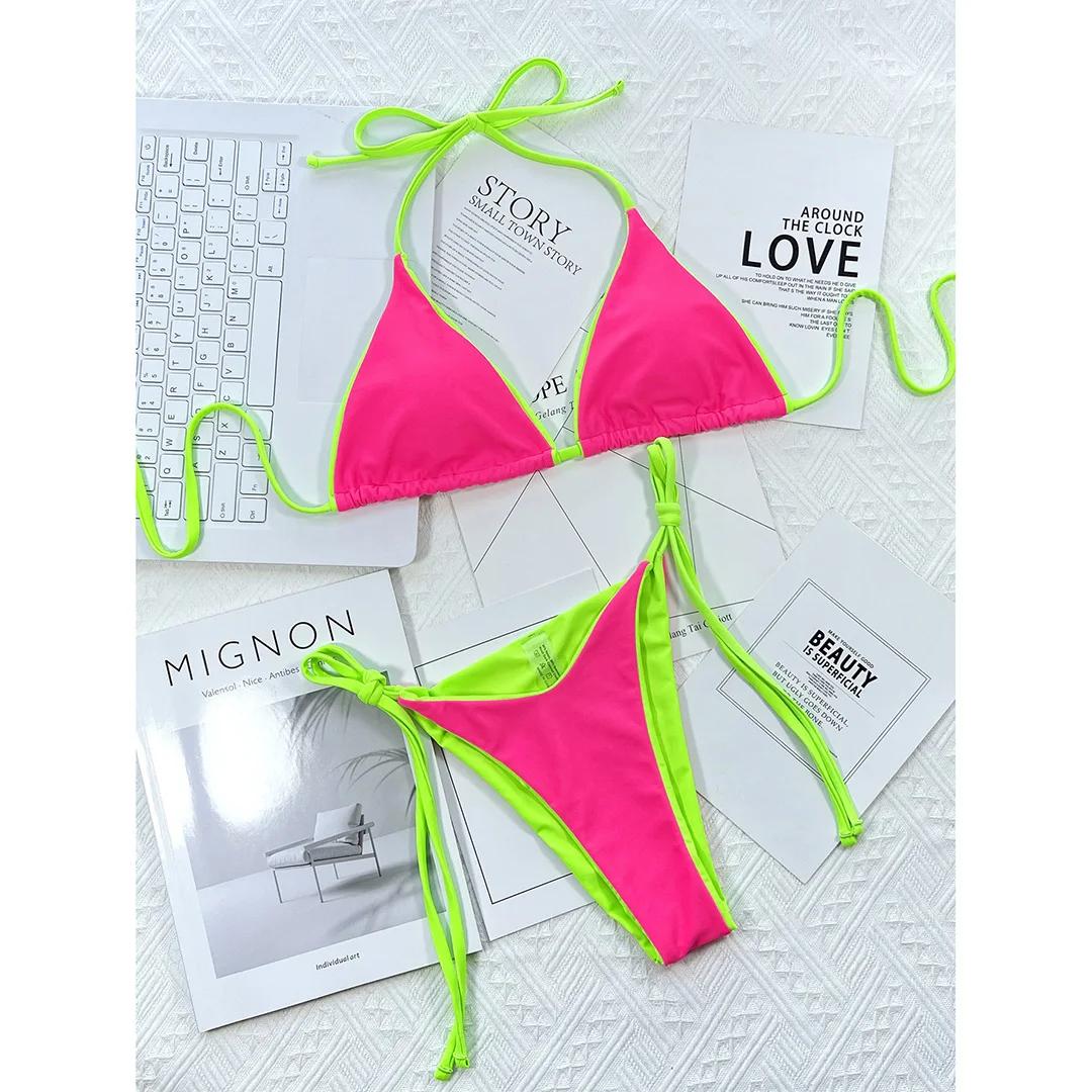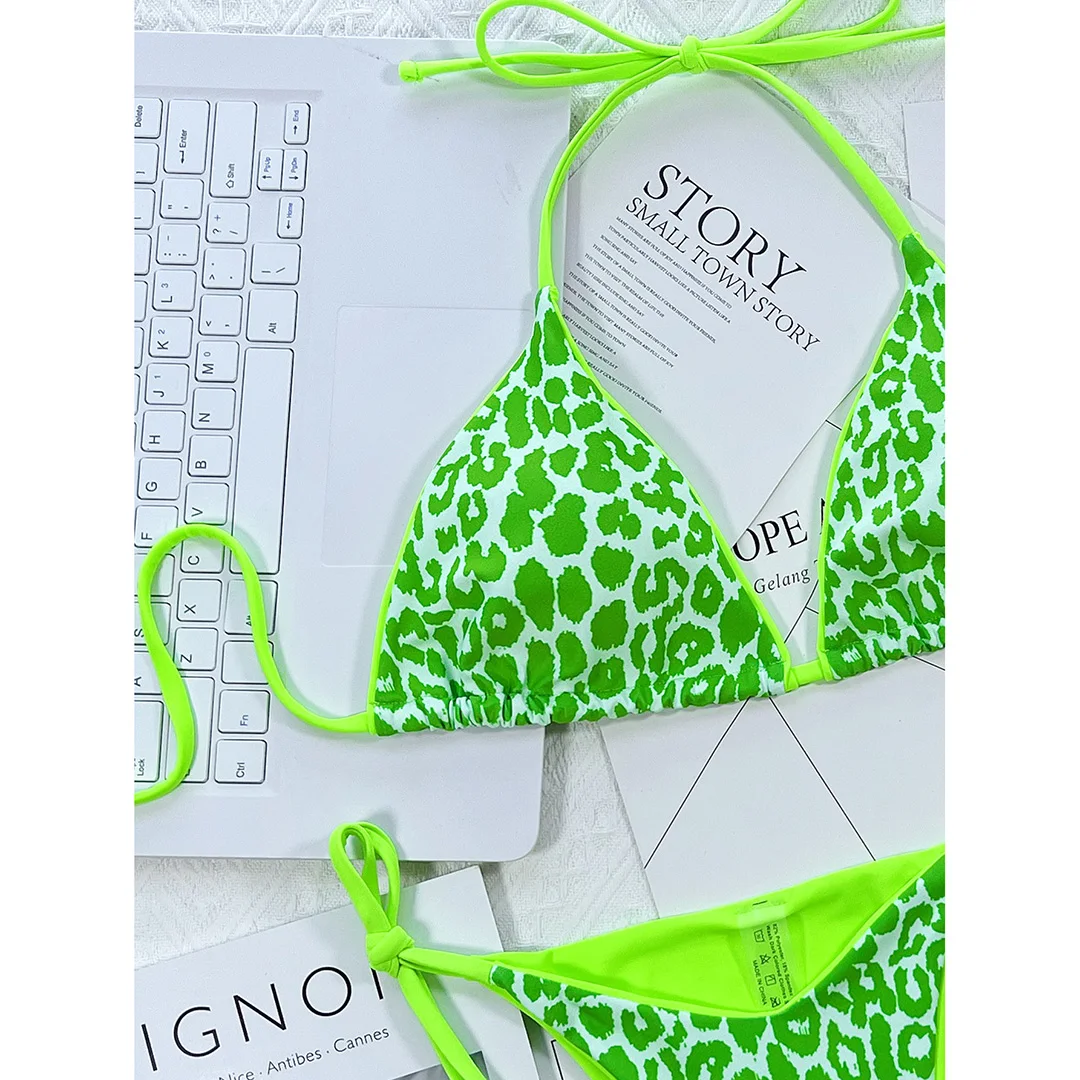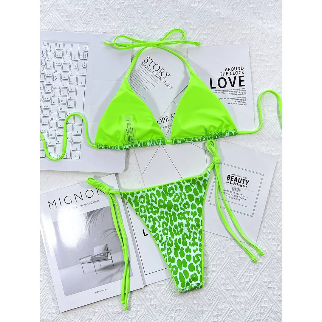 Sexy Leopard Printed Halter Brazilian Bikini Women Swimwear Female Swimsuit Two-piece Bikini set Bather Bathing Suit Swim V3681