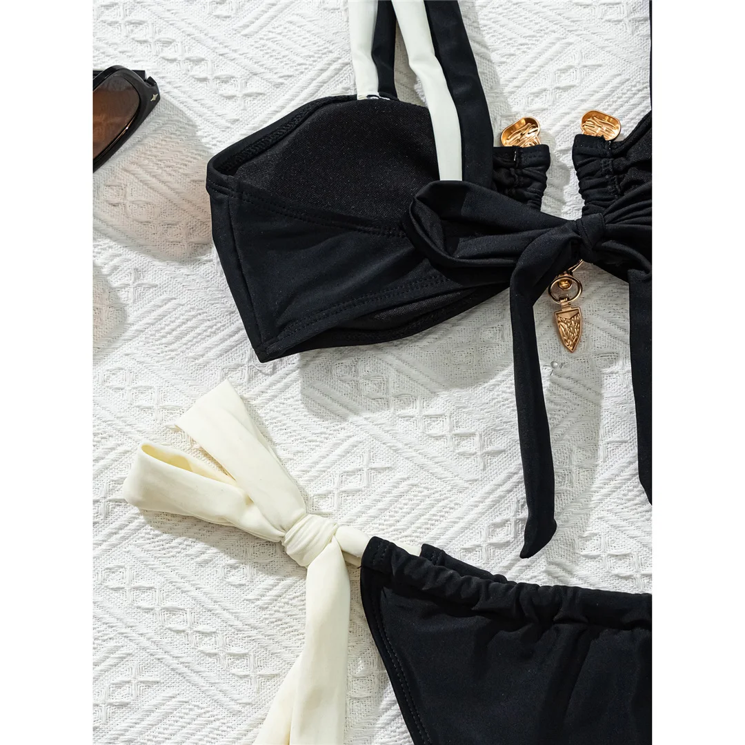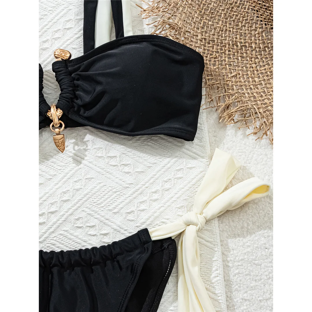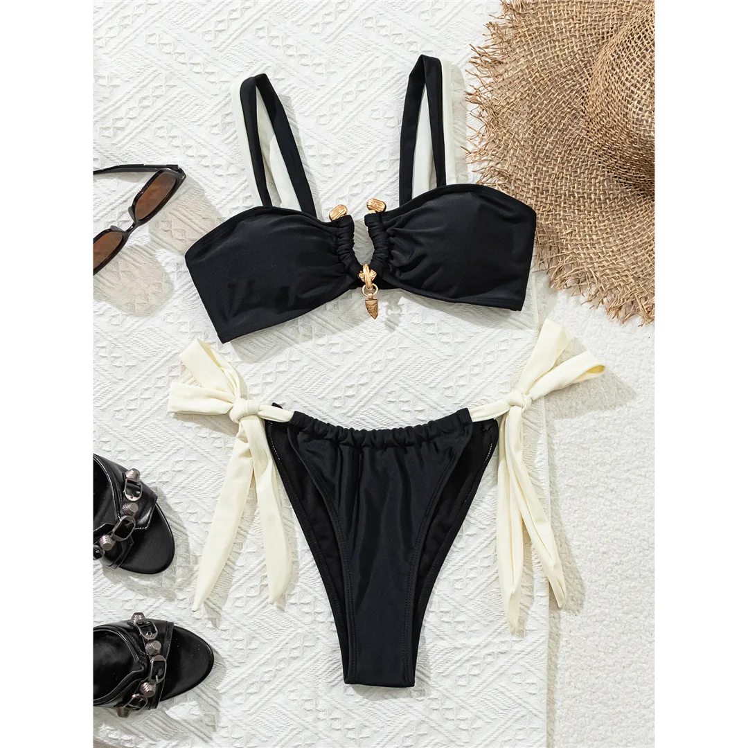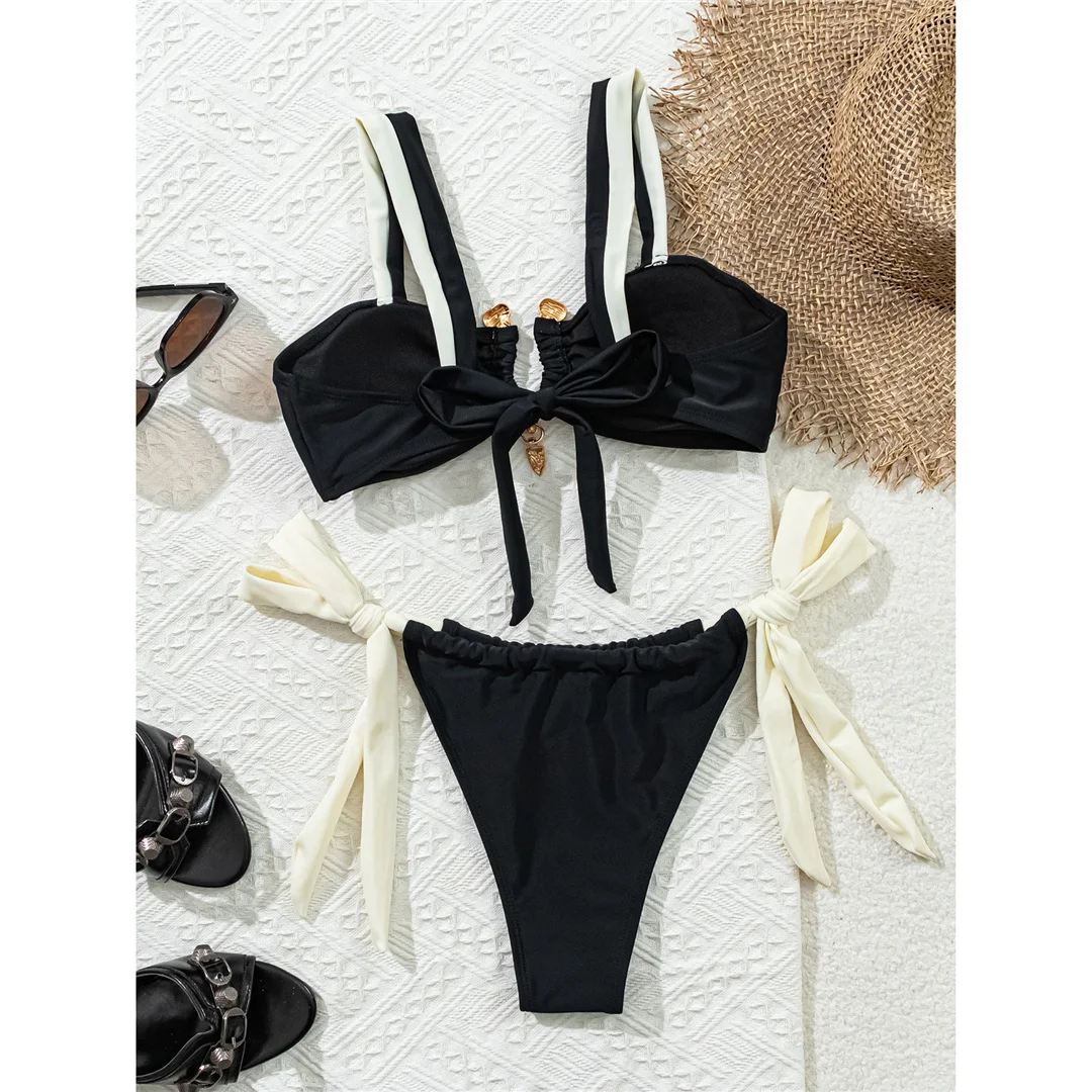 Sexy Metal Ring High Cut Leg Strappy Bikini Women Swimwear Female Swimsuit Two-pieces Bikini set Bather Bathing Suit Swim V6730
