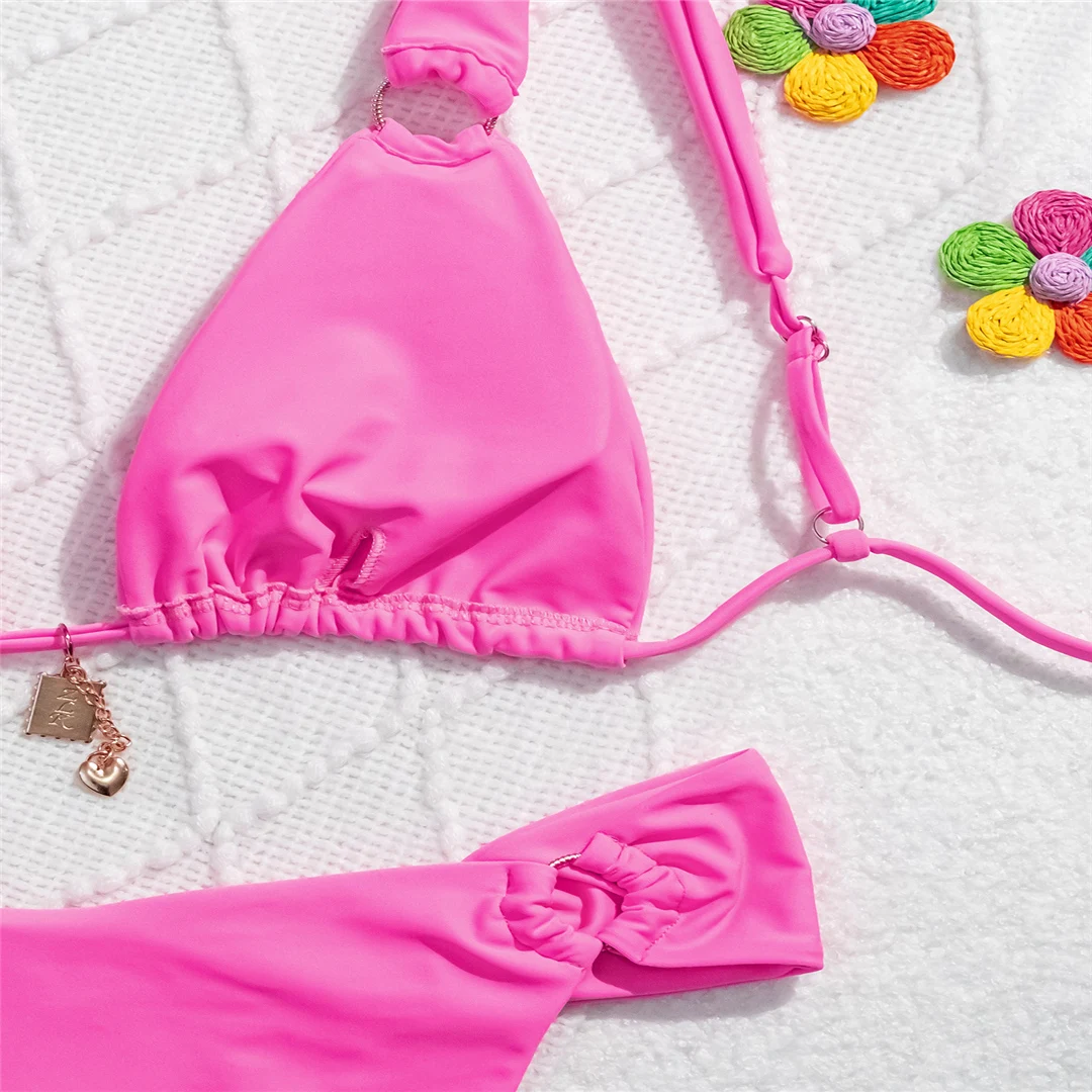 Sexy Metal Ring High Leg Cut Bikini Female Swimsuit Women Swimwear Two-pieces Bikini set Padded Bather Bathing Suit Swim V6529