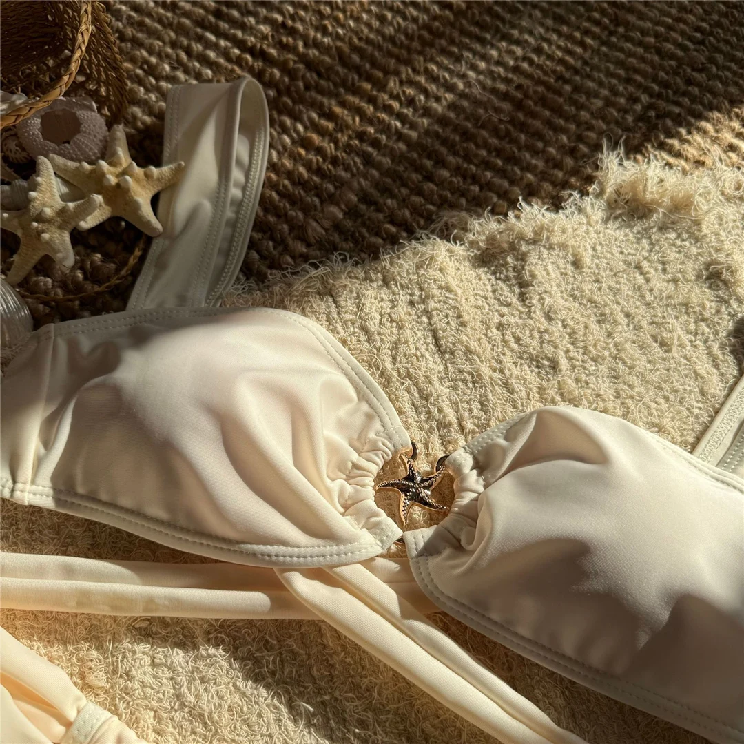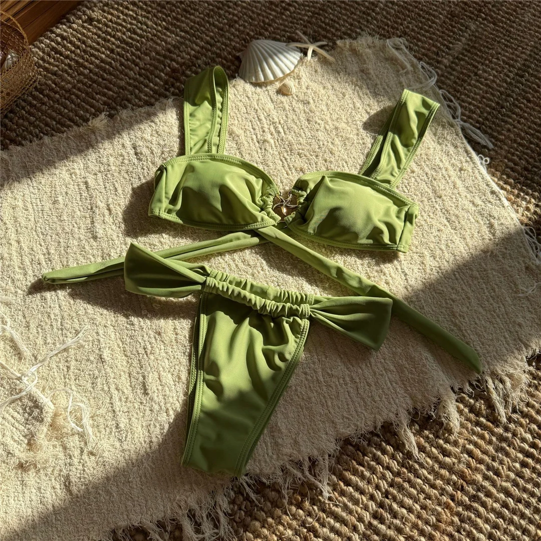 Sexy Metal Star Ring High Cut Bikini Women Swimwear Female Swimsuit Two-pieces Bikini set Padded Bather Bathing Suit Swim V6344