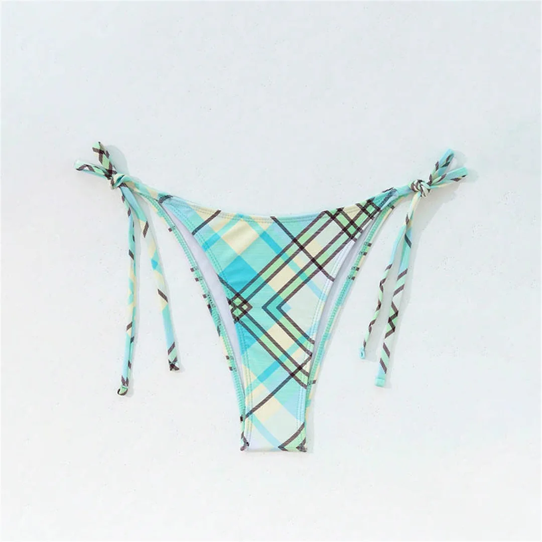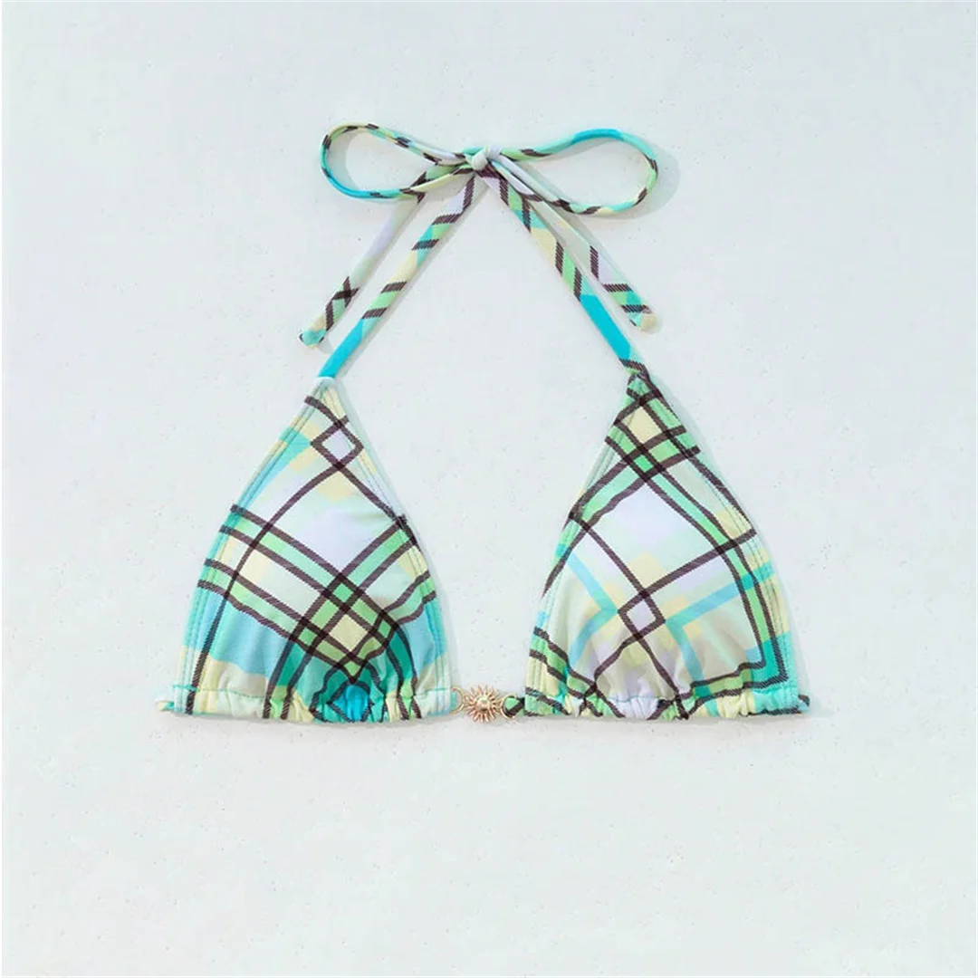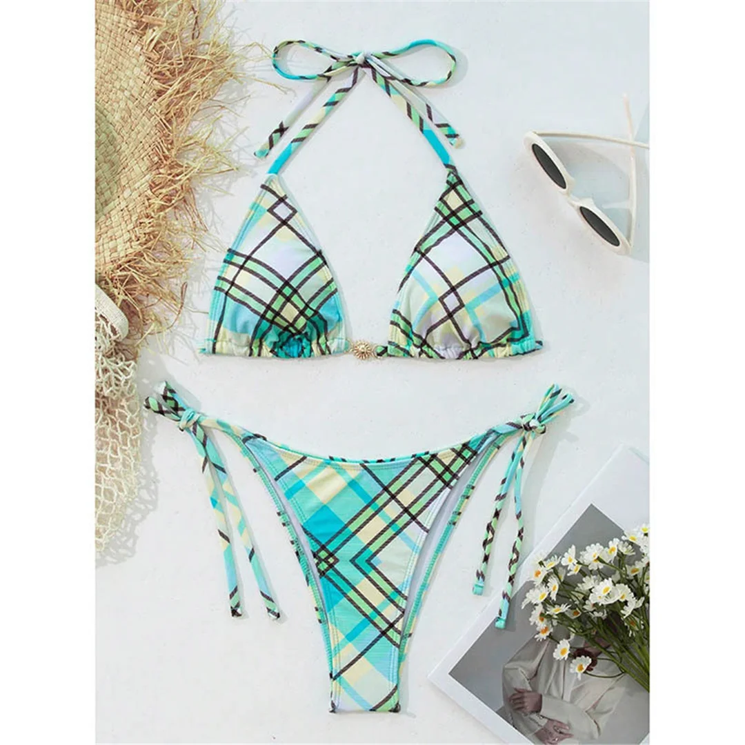 Sexy Plaid Halter Bikini Female Swimsuit Women Swimwear Two-pieces Bikini set High Cut Leg Padded Bather Bathing Suit Swim V6976