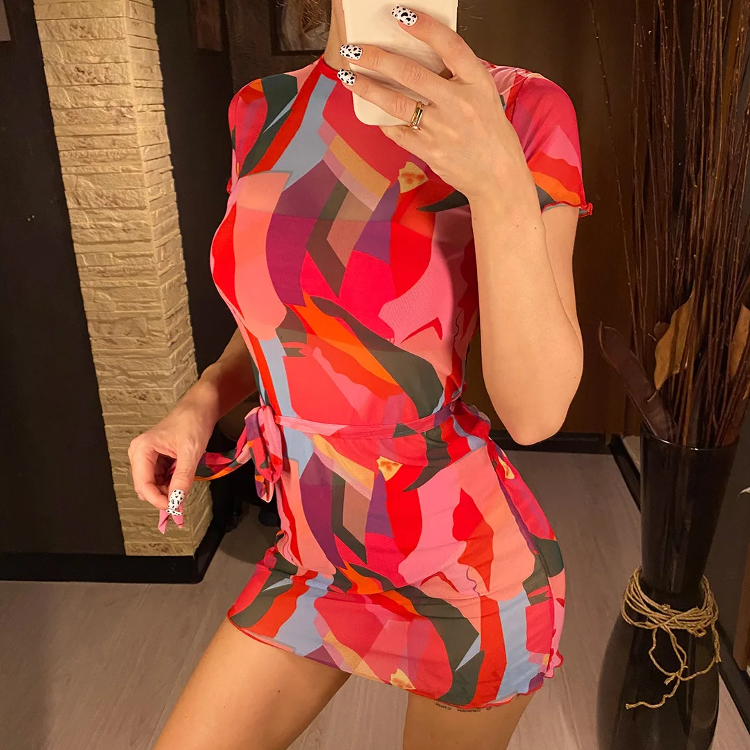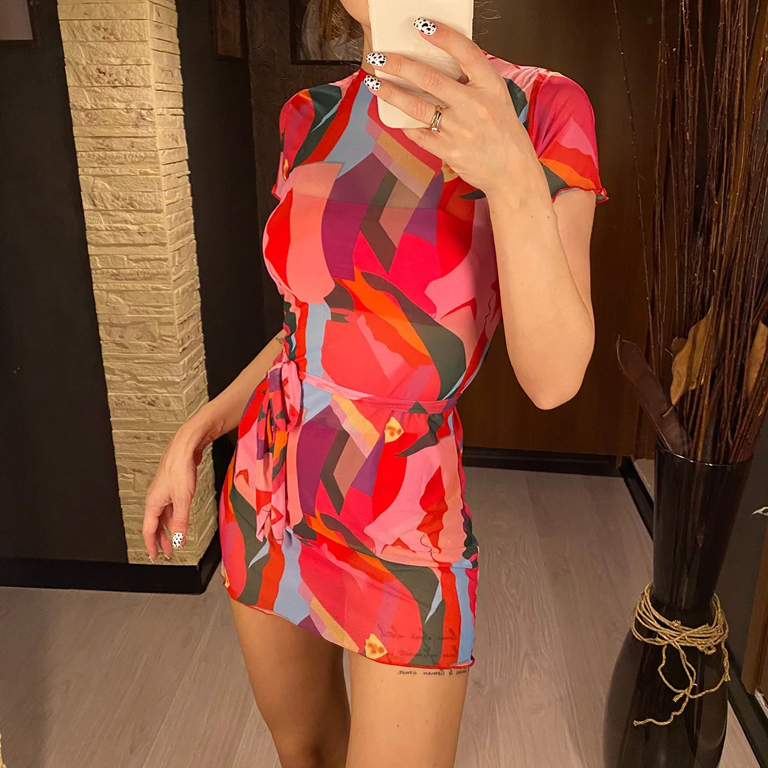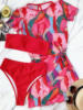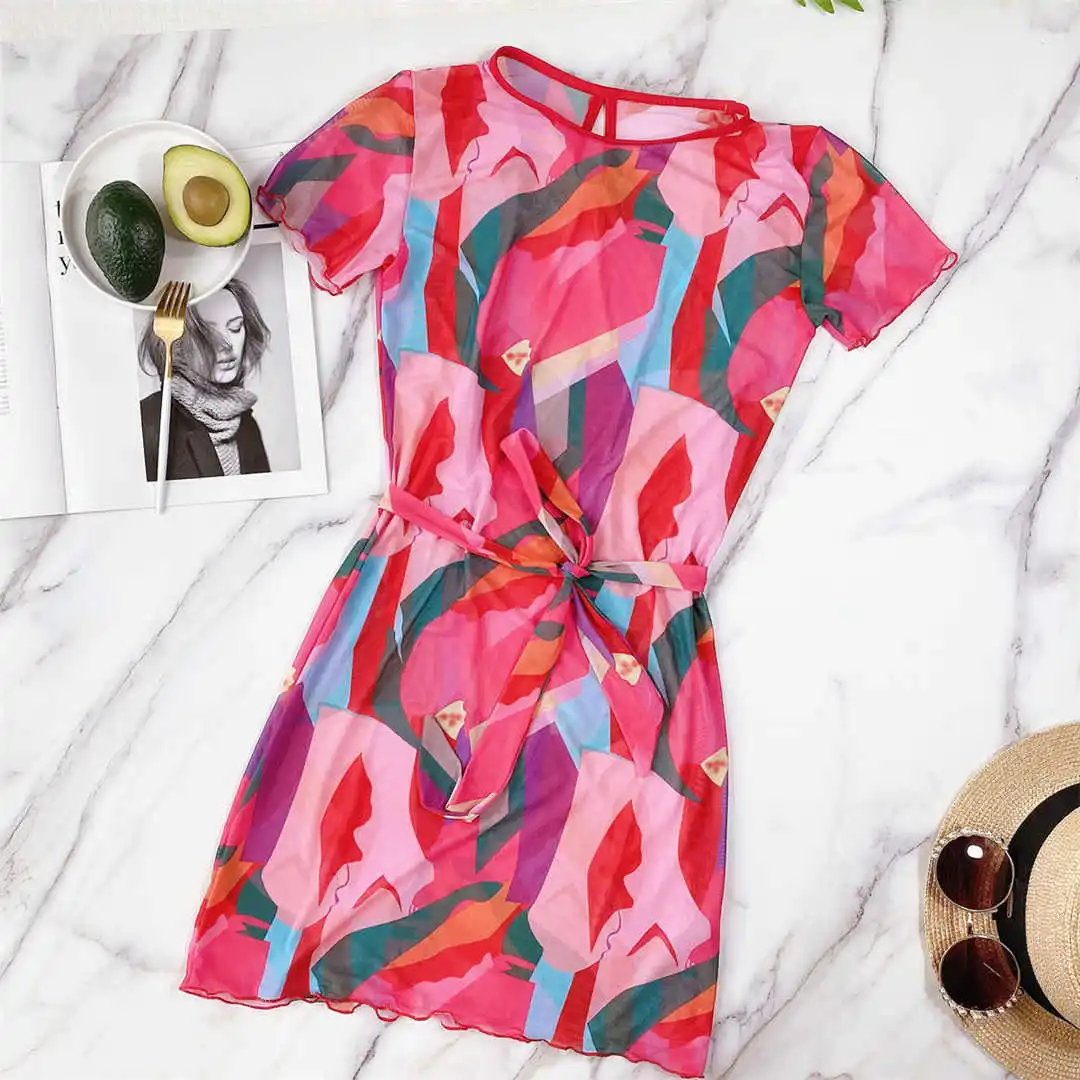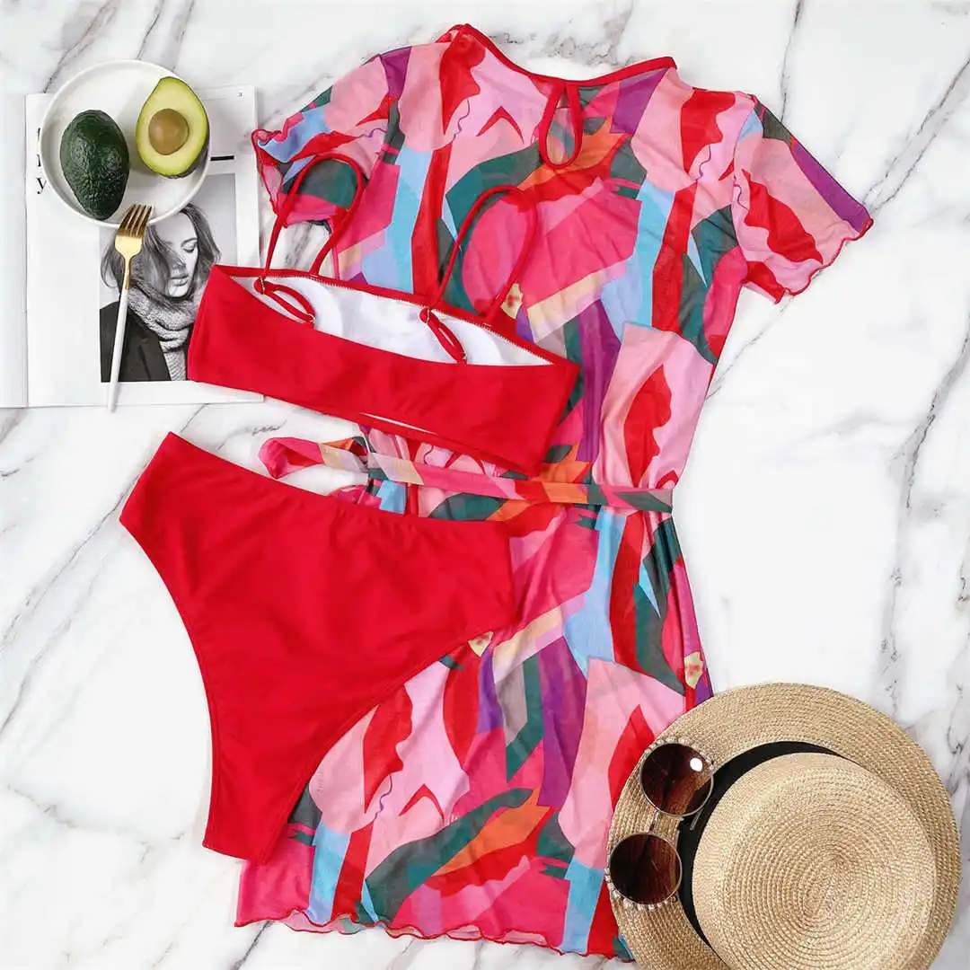 Sexy Printed High Waist Bikini Women Swimwear Female Swimsuit Three-pieces Bikini set With Dress Bather Bathing Suit Swim V2808
