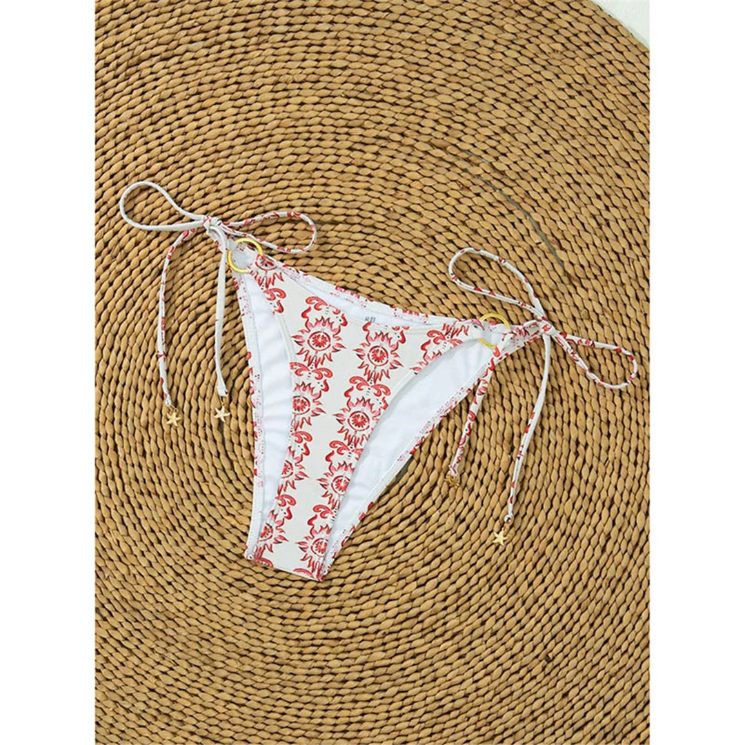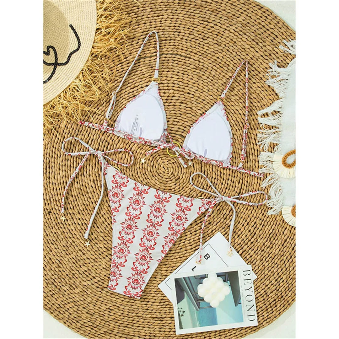 Sexy Printed Metal Rings High Leg Cut Bikini Female Swimsuit Women Swimwear Two-pieces Bikini set Bather Bathing Suit Swim V6985