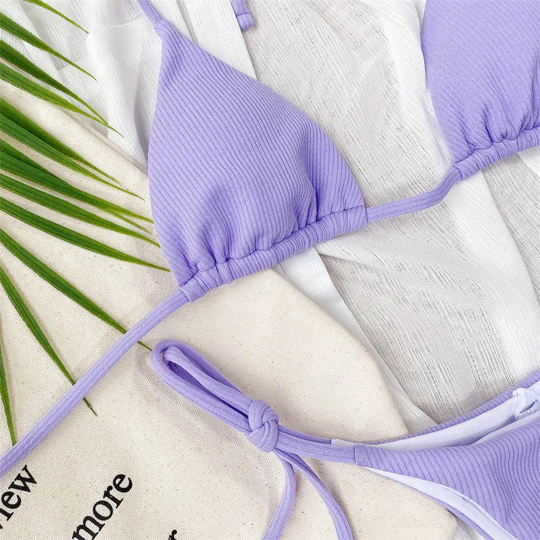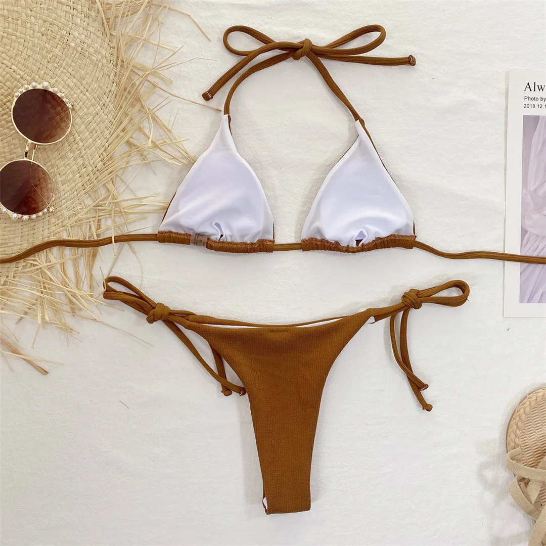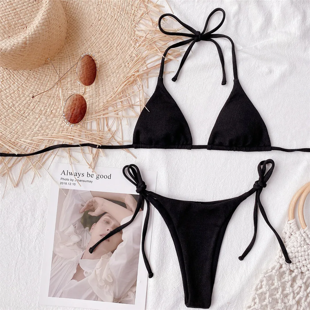 Sexy Ribbed Halter Bikini Female Swimsuit Women Swimwear Two-pieces Bikini set Brazilian Bather Bathing Suit Swim Lady V2385