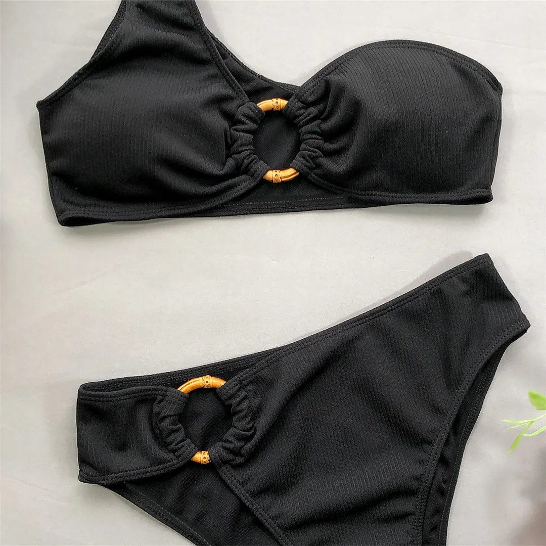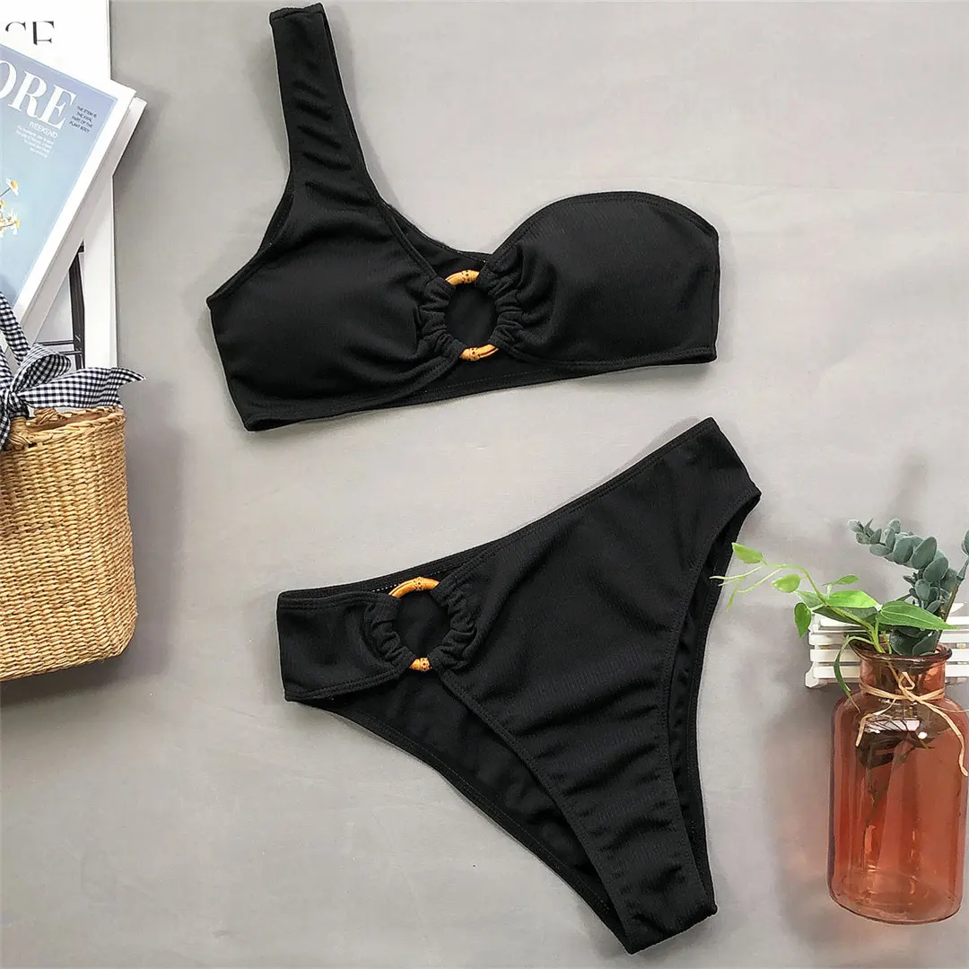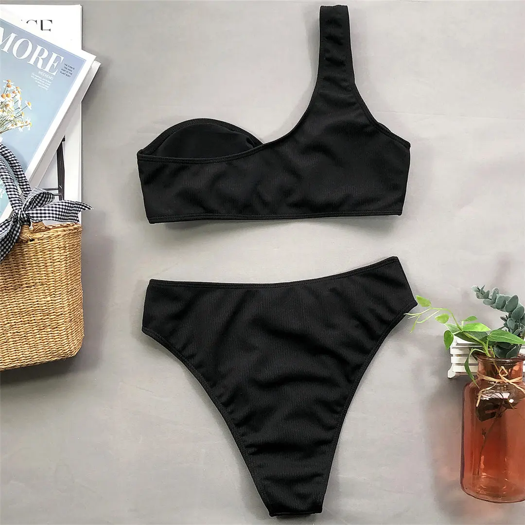 Sexy Single One Shoulder Bikini Female Swimsuit Women Swimwear Two-pieces Bikini set Asymmetrical Bather Bathing Suit Swim V2171