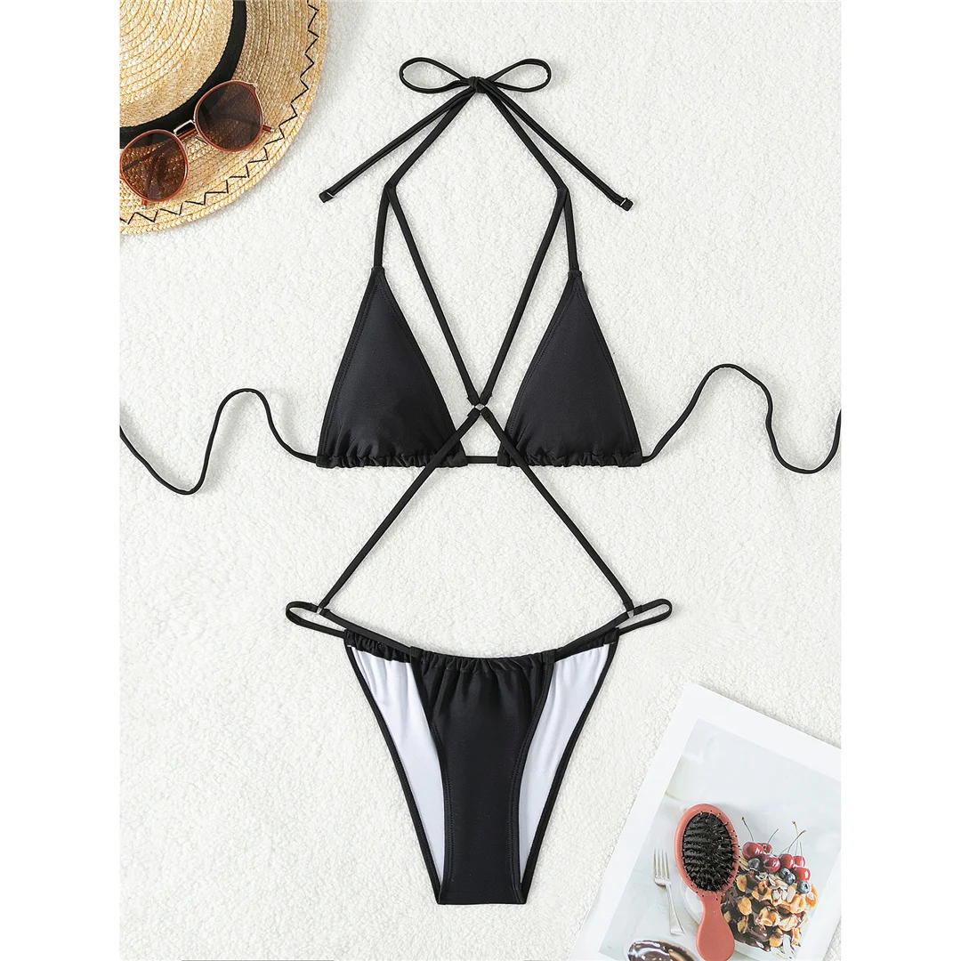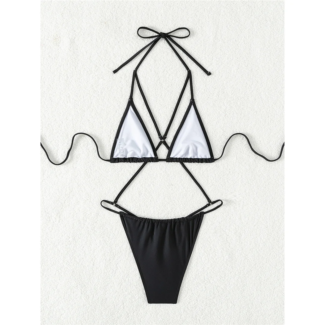 Sexy Solid Tummy Cut Out Halter One Piece Swimsuit Women Swimwear Female Monokini High Leg Cut Bather Bathing Suit Swim V6017