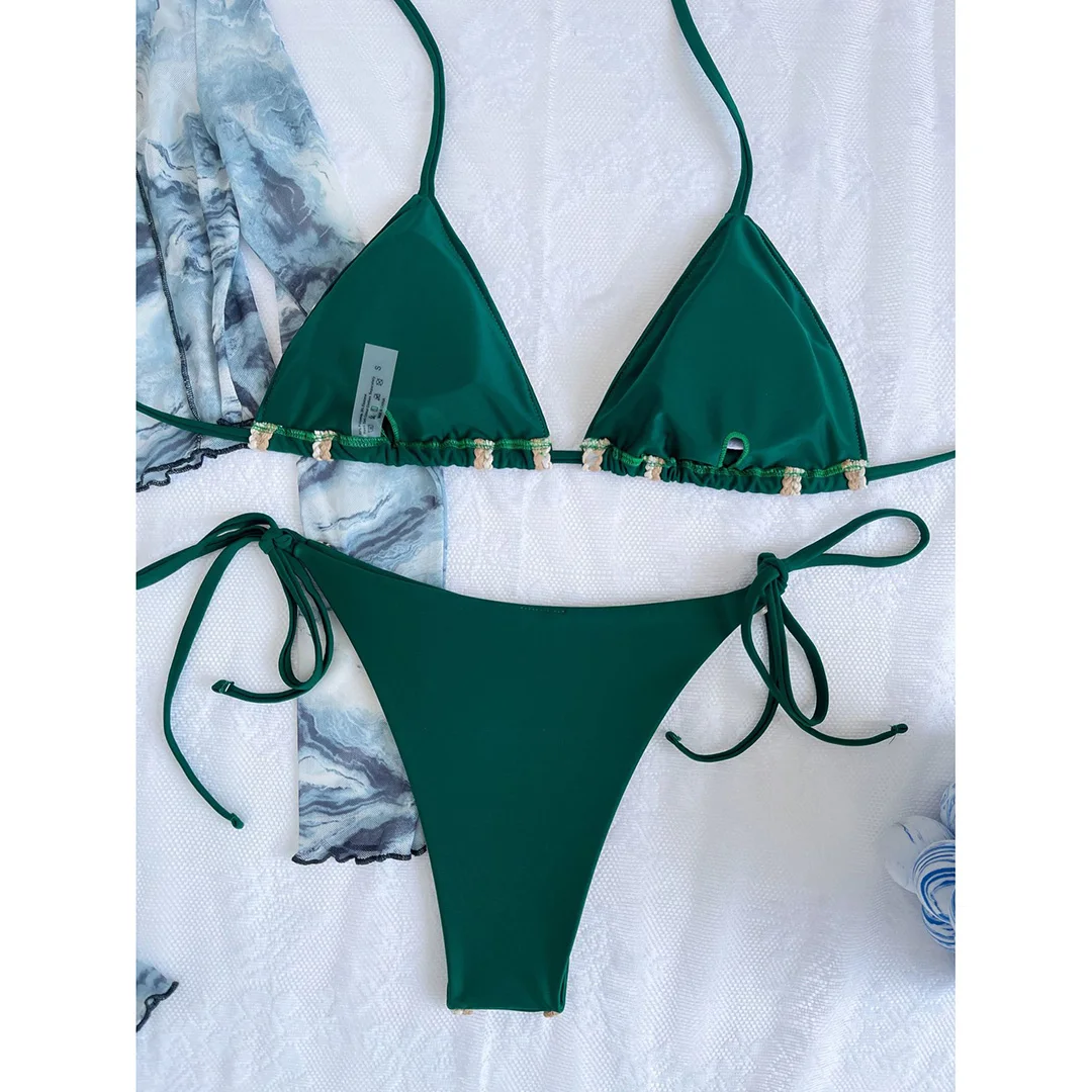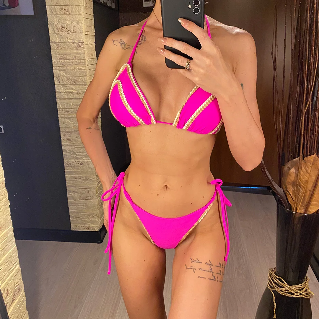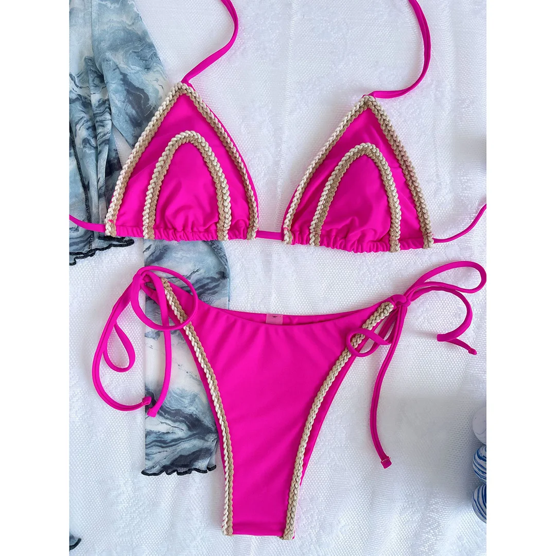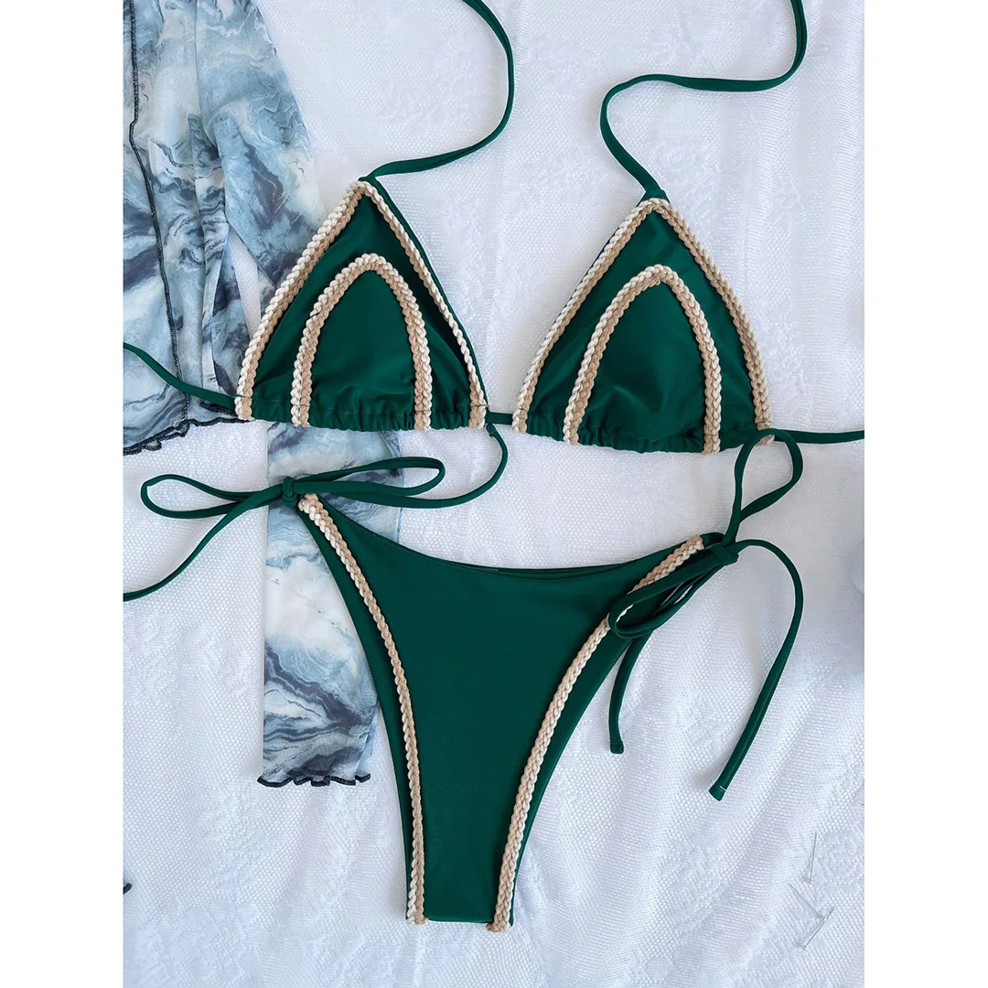 Sexy Splicing Halter Brazilian Bikini Women Swimwear Female Swimsuit Two-pieces Bikini set Bather Bathing Suit Swim Lady V4593G