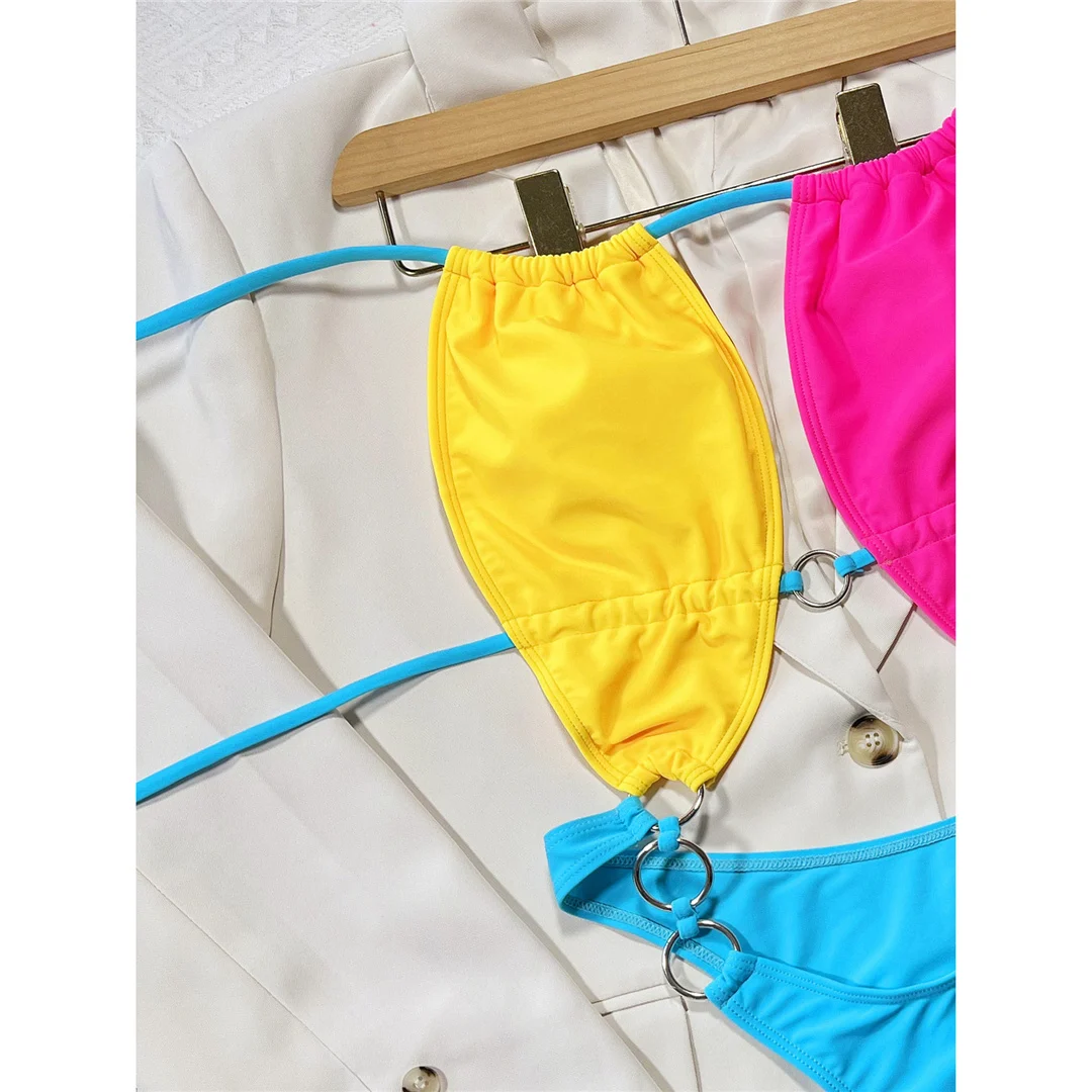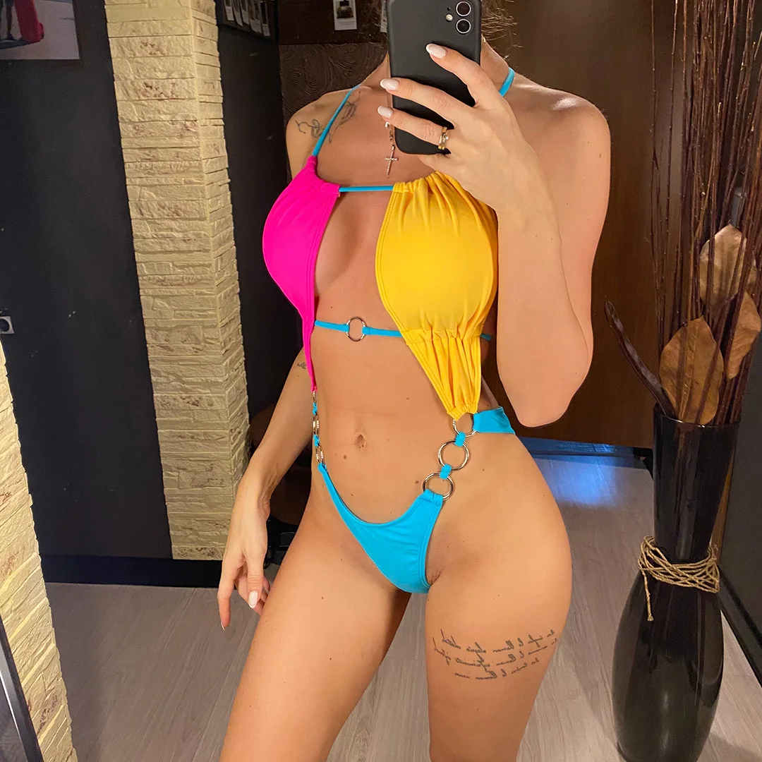 Sexy Splicing Halter Cut Out Backless Women Swimwear One Piece Swimsuit Female Monokini Padded Bather Bathing Suit Swim V4274