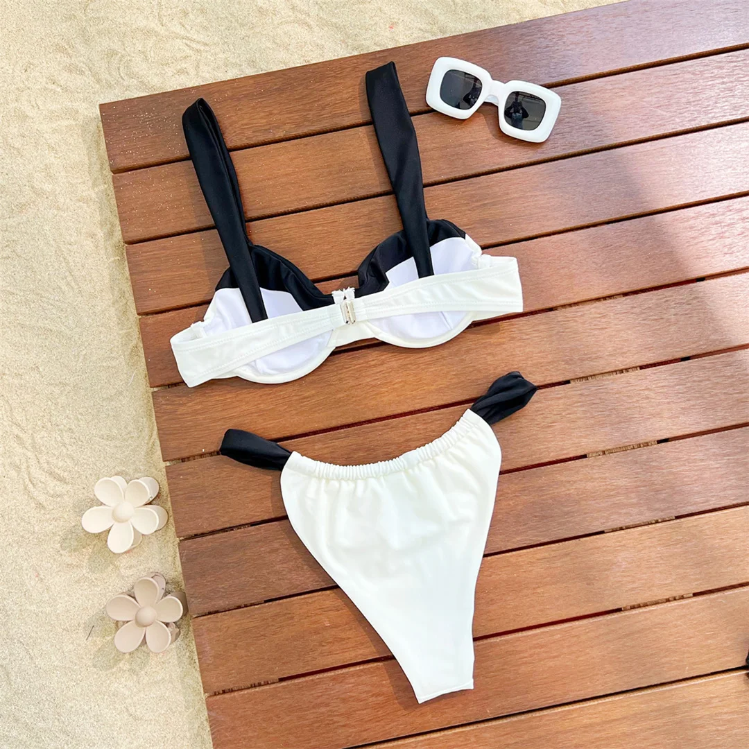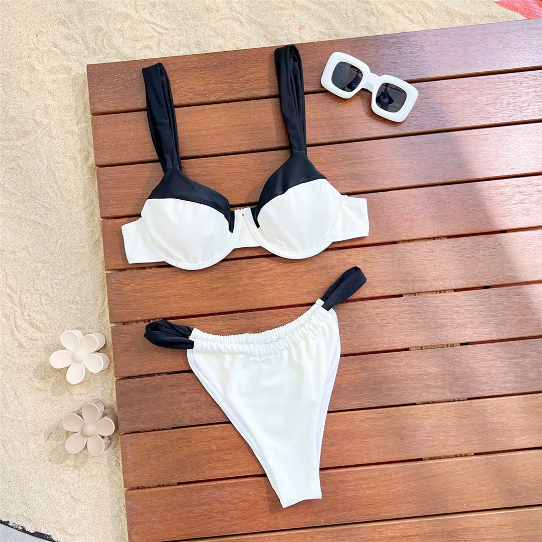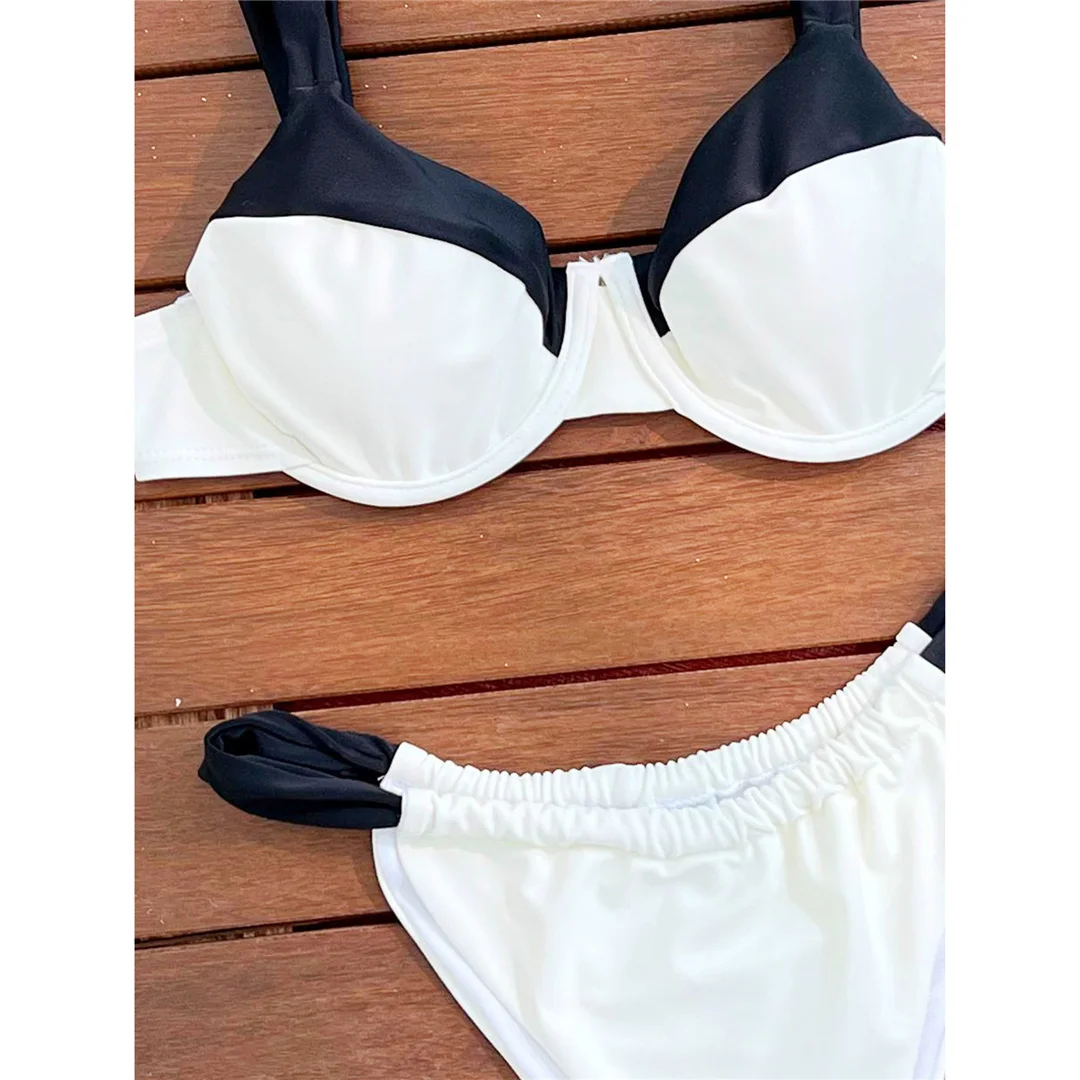Sexy Splicing Underwired High Cut Leg Bikini Women Swimwear Female Swimsuit Two-pieces Bikini set Bather Bathing Suit Swim V7040