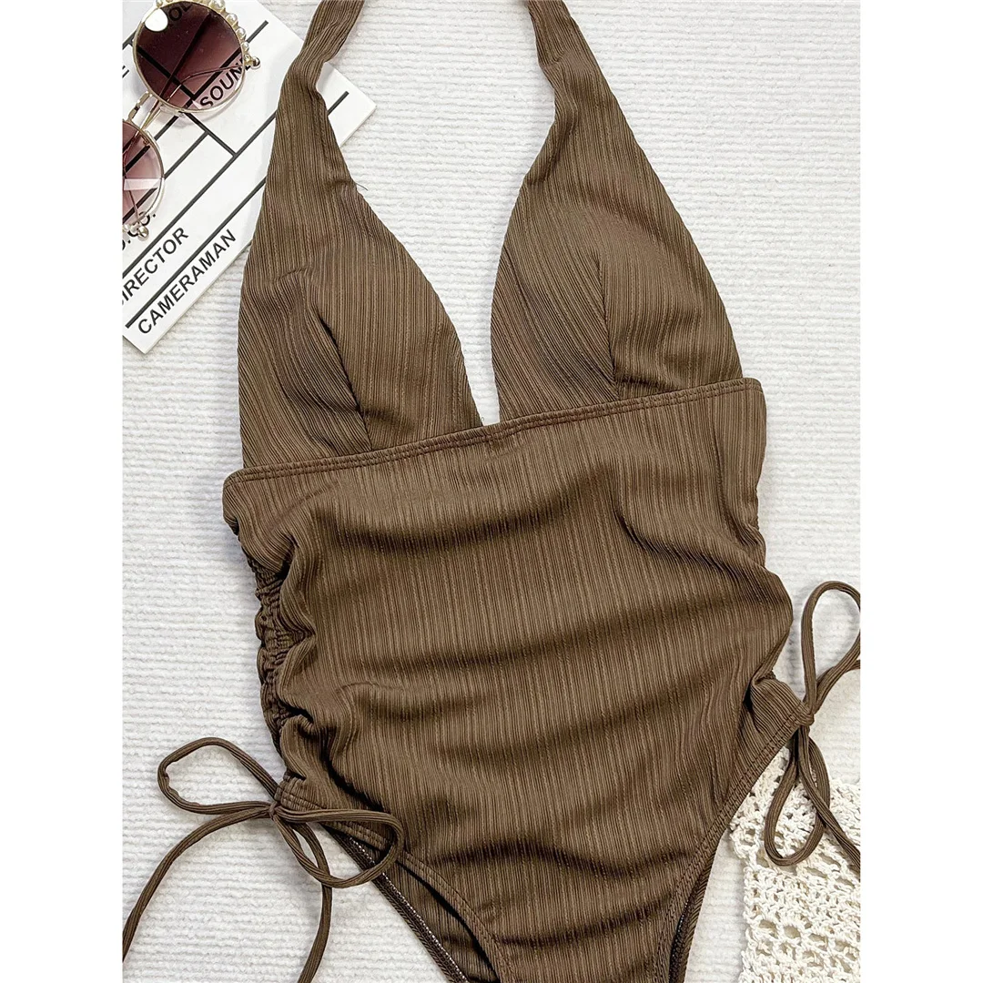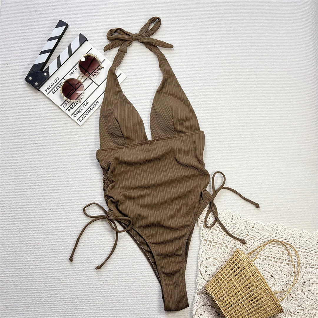 Sexy V Neck Halter Backless High Leg Cut One Piece Swimsuit Women Swimwear Female Monokini Padded Bather Bathing Suit Swim V6805